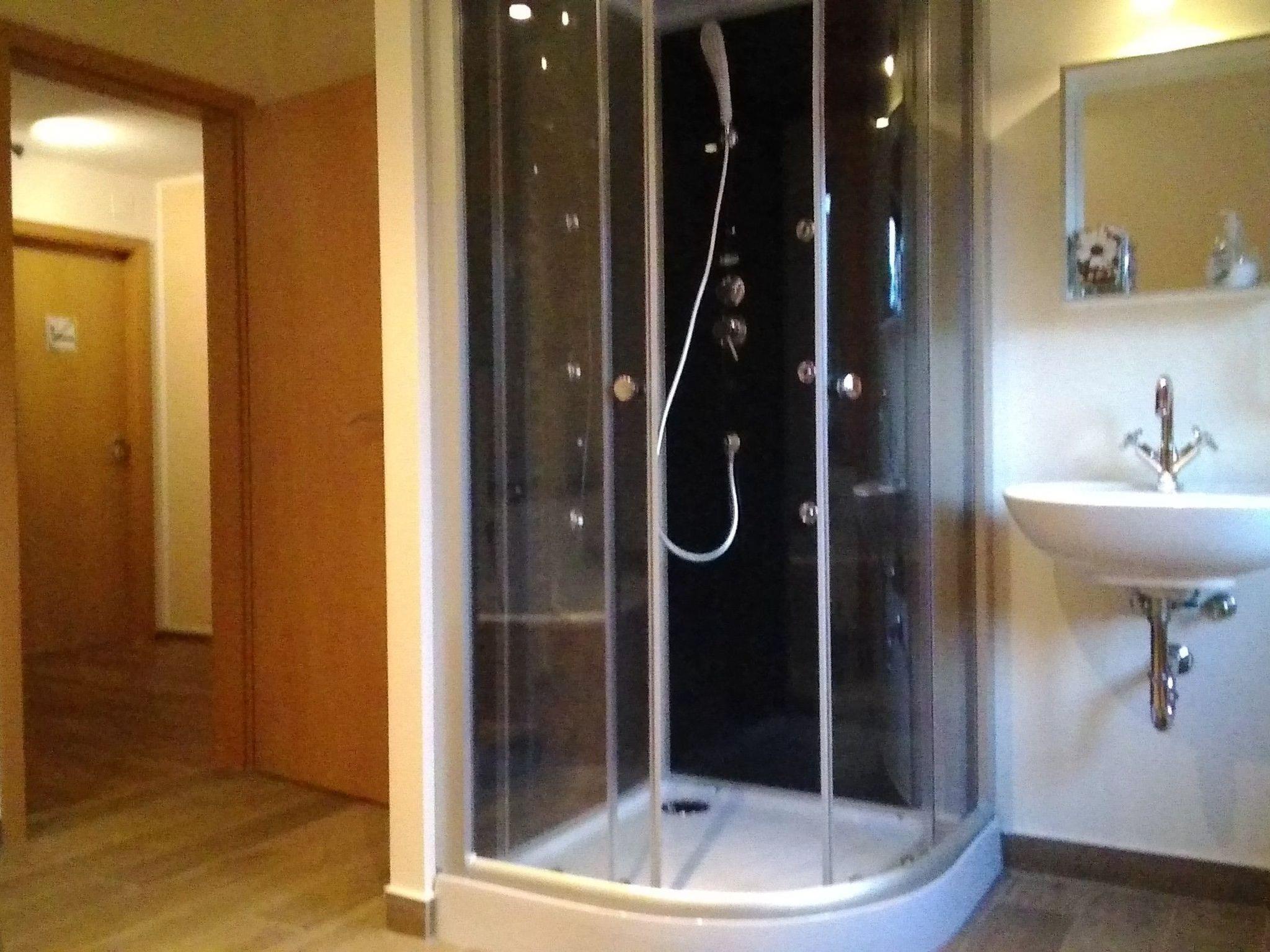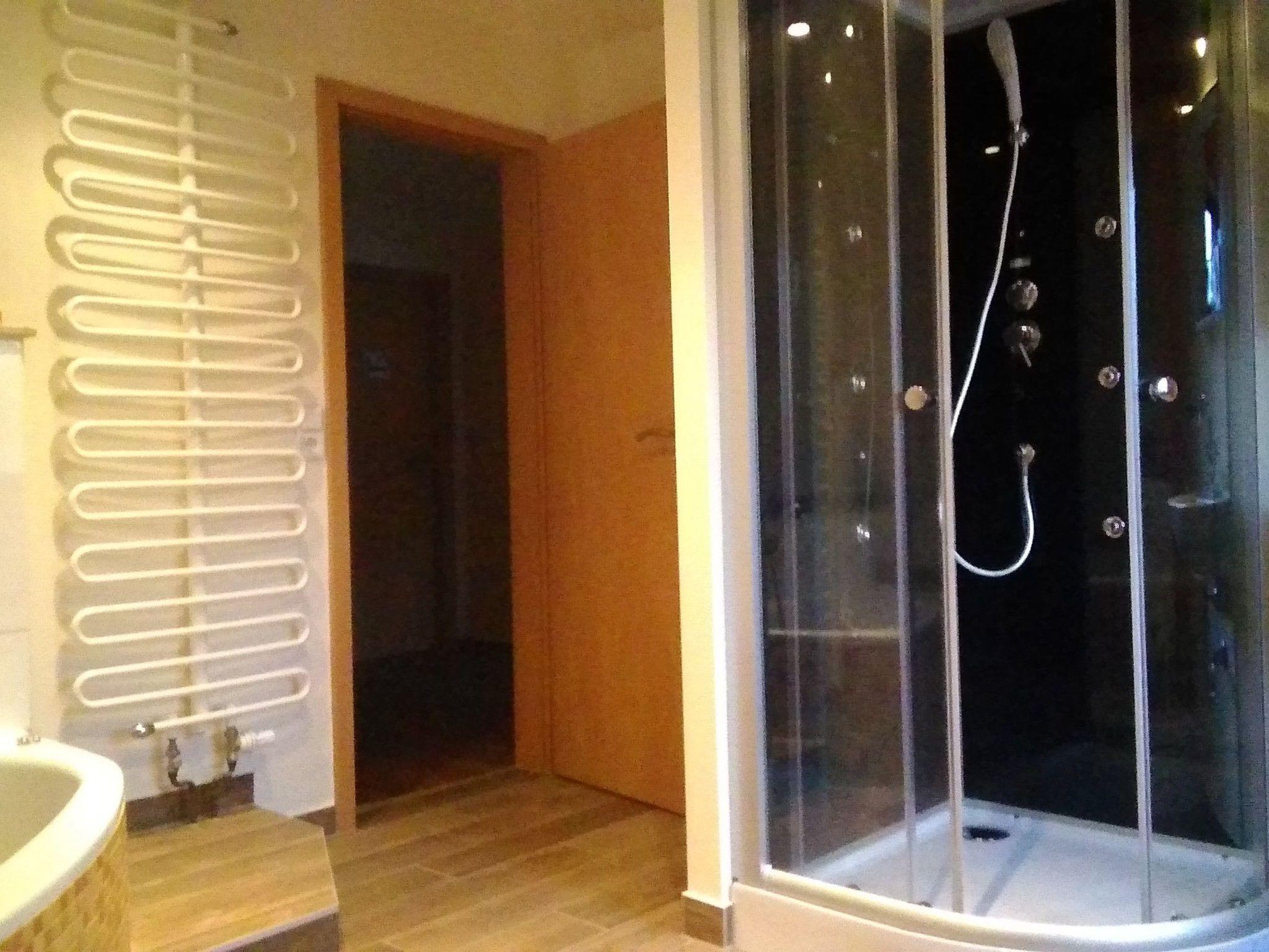 Inside the chalet, you will find a large bathroom equipped with a whirlpool bath, designer shower, washbasin, WC, hairdryer, underfloor heating and towel dryer. The heated bedroom has two comfortable single beds (90 x 200 cm), a sofa bed for 2 people, bedside table with lighting, a two-door wardrobe, sideboard, a table with beautiful upholstered chairs, a floor lamp, satellite TV and free Wi-Fi, which leaves nothing to be desired in terms of comfort.