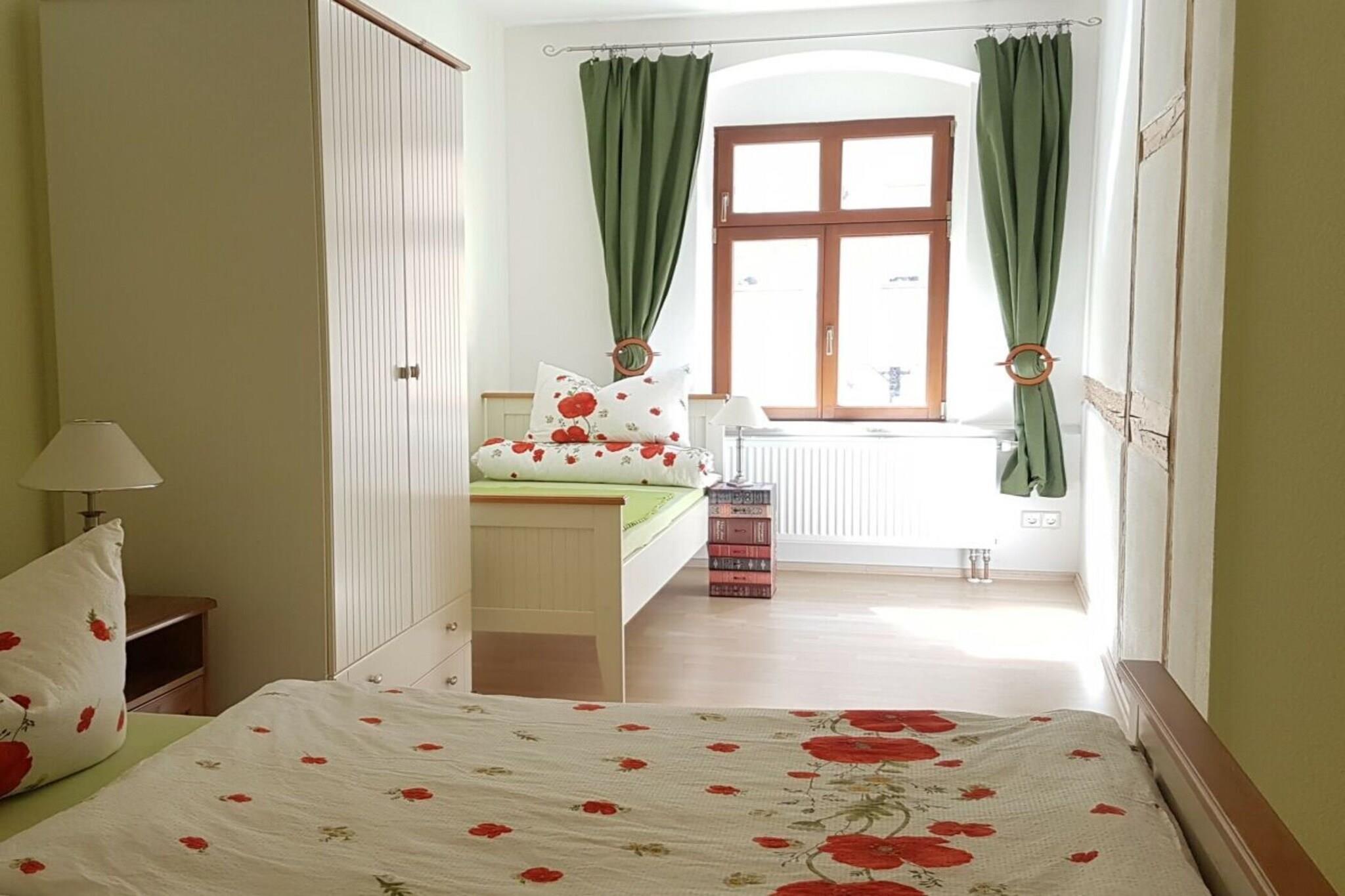Genießen Sie einen entspannten Urlaub in Ihrem Urlaubs-Zu Hause im Herzen Pirnas Altstadt und idealem Ausgangspunkt für viele Entdeckungstouren. Küche mit Essbereich und Balkon zum Innenhof mit Laubengang Wohnzimmer mit Medien Bad mit Wanne/Dusche Abstellraum/Garderobe Schlafzimmer mit Doppelbett und Einzelbett eine vierte und fünfte Personen übernachten auf dem Schlafsofa PKW-Stellplatz im Parkhaus Handels- und Bürgerhauses mit bemalten Holzbalkendecken, Fachwerkwänden, Laubengang im Innenhof und Sandstein-Gewölbekeller. Modern eingerichtet und doch spüren Sie das einzigartige Flair vergangener Zeiten. Weitere Informationen finden auch auf unserer Webseite pirna-ferien.