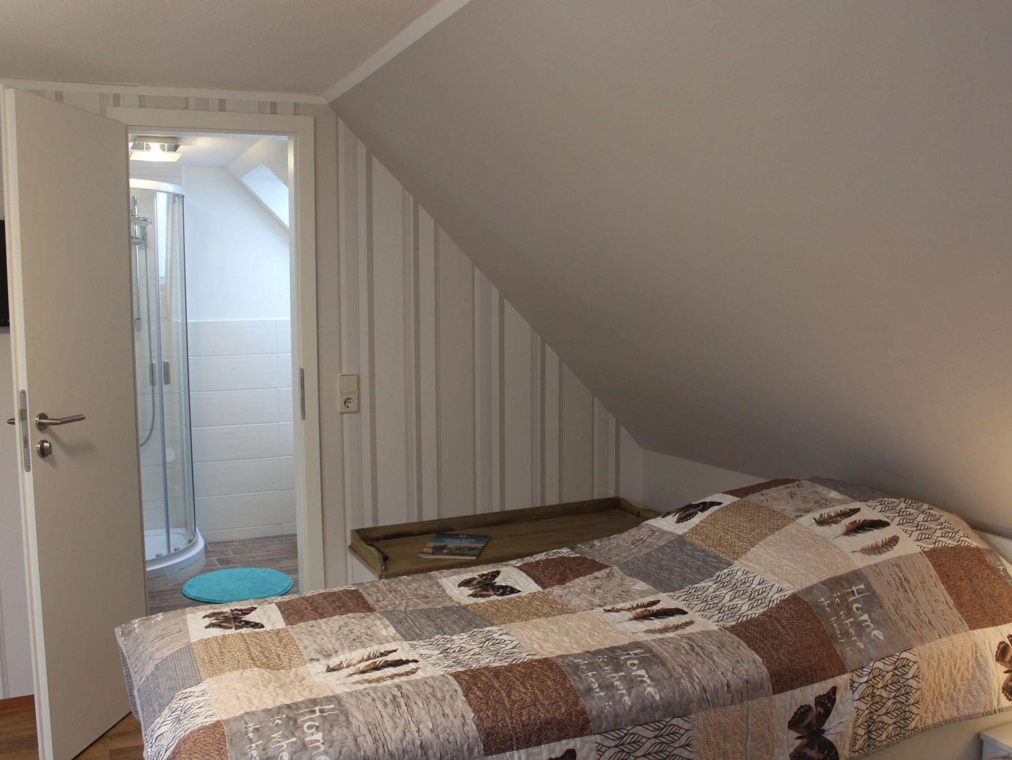 Ein separates Bad mit WC und Dusche sowie ein eigener TV stehen den Gästen ebenfalls zur Verfügung. Da das Zimmer über keinen eigenen Küchenbereich verfügt, besteht bei Einzelnutzung die Möglichkeit, nach Absprache mit dem Vermieter, gegen einen Aufpreis die Gemeinschaftsküche im Erdgeschoss zu nutzen.