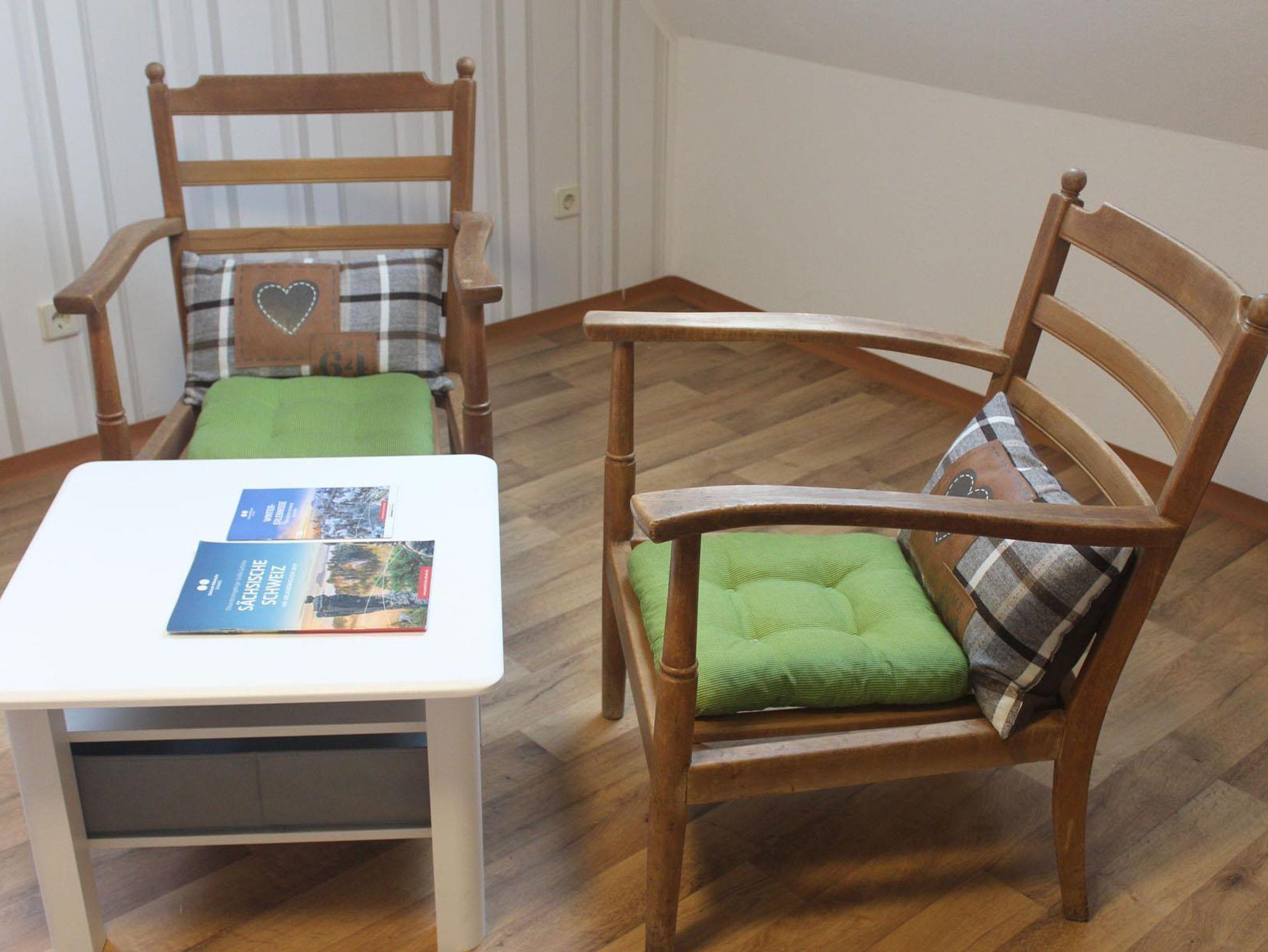 Das Zimmer befindet sich unter dem Dach. Von hier aus kann man in das Tal und auf den malerisch gelegenen Gegenhang schauen. Vom Dachfenster sieht man aber auch die Elbe.