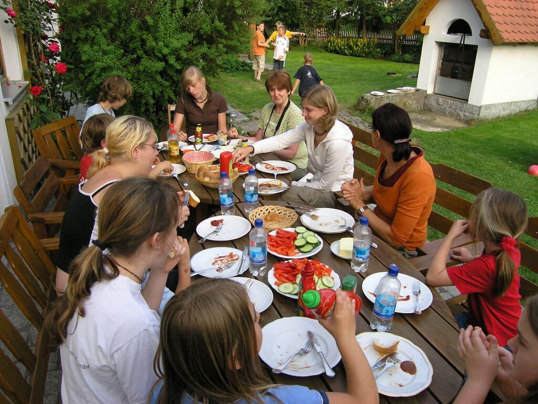 Freuen Sie sich auf gesellige Abende am Grillplatz oder bei selbst gemachter Pizza aus unserem hofeigenen Holzbackofen. Unser gemütlicher Aufenthaltsraum lädt zum gemeinsamen Feiern und Beisammensitzen ein.