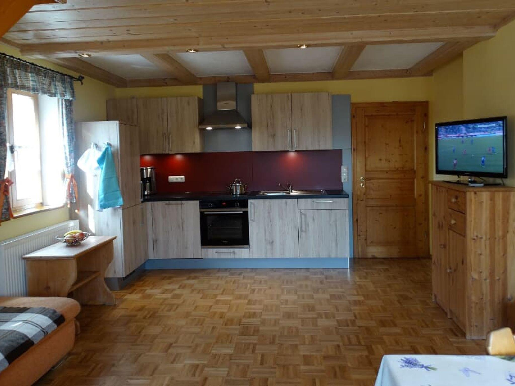 • Wohnküche mit komplett ausgestatteter Küche (Geschirrspüler, Induktionsherd, Backofen, Kühlschrank, Gefrierschrank, Kaffeemaschine, Toaster, Wasserkocher, Eierkocher, Geschirr, Besteck, Kochgeschirr; im Januar 2018 erfolgte der Einbau einer neuen Küche mit neuen Geräten!), gemütlicher Eckbank und Couch