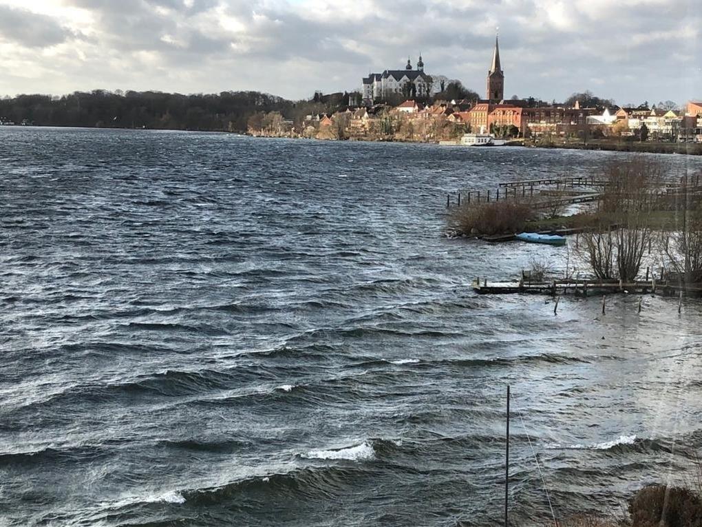 Einmalig schöner Panoramablick auf den 30qkm grossen See, die angrenzenden Wälder und das Plöner Schloss.