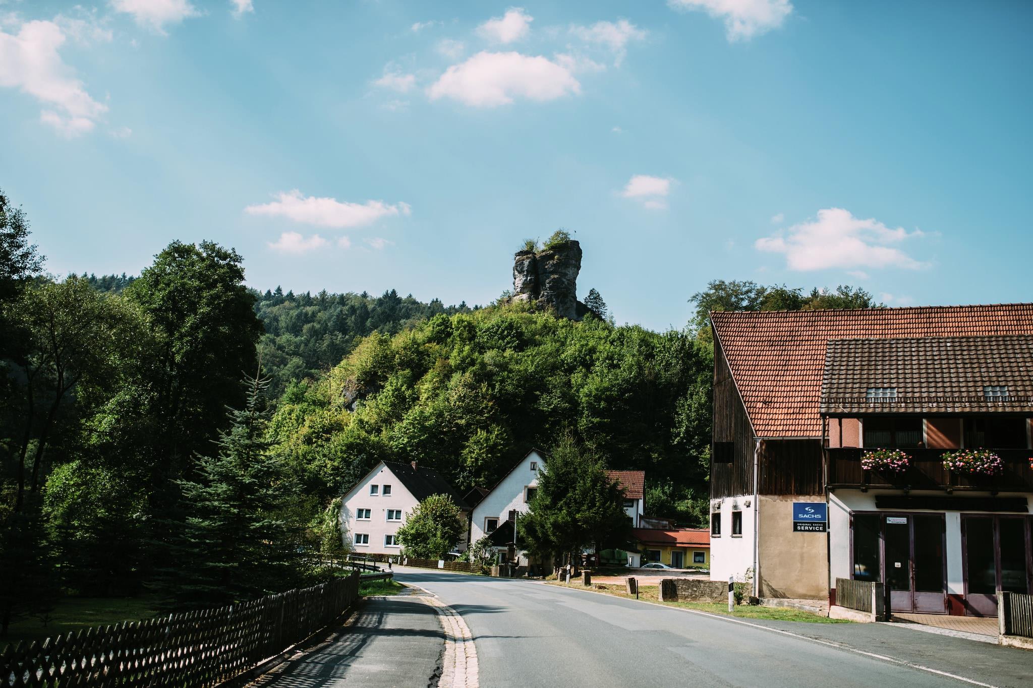 Velkommen til Plankenfels, porten til frankiske Schweizs fortryllende dale og floder. Denne hyggelige lejlighed i stueetagen er ideel til op til 3 gæster og tilbyder et fredeligt tilflugtssted med moderne bekvemmeligheder og naturskøn charme. Indenfor finder du et soveværelse med dobbeltseng, et enkeltværelse, et veludstyret køkken og en lys stue med satellit-tv og radio. Badeværelset indeholder bruseniche, håndvask og toilet, mens central oliefyring sikrer komfort året rundt. Træd udenfor til din private 20 m² overdækkede terrasse, komplet med el- og kulgrill, perfekt til udendørs spisning med panoramaudsigt. Den fælles have på 1000 m² inviterer til afslapning og tilbyder cykelopbevaring. En barneseng og betalt tørretumbler tilføjer bekvemmelighed ved længere ophold. Udforsk nærliggende Burg Rabenstein, Sophienhöhle drypstensgrotte og Wiesent-floden til kanosejlads og kajaksejlads. Vandre eller cykle gennem bizarre klippeformationer og frodige stier, eller slap af ved Obernsees termiske bade (3 km). Med offentlig transport (100 m) og togstationen (2,5 km) tæt på, er eventyr altid inden for rækkevidde.