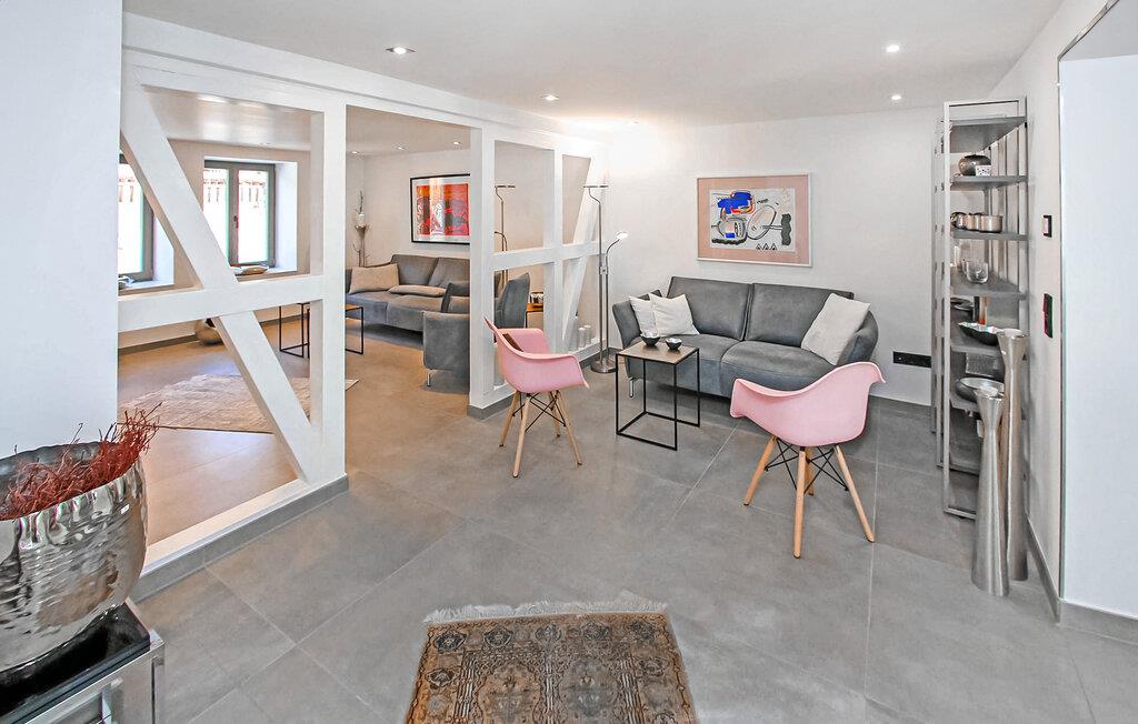 Den historiske bygning blev omfattende renoveret i 2021 og indrettet i en moderne, minimalistisk stil. Udstyret af høj kvalitet opfylder høje krav. Første indflytning i juli 2021. Stueetagen har åben planløsning. Der er to opholdsområder her (polstrede møbler, siddepladser, smart-tv), et topmoderne køkken (inklusive en elektrisk kogeplade med integreret Bora emhætte, ovn, internetaktiveret køleskab med isterningdispenser, stor spisestue bord, diverse køkkenmaskiner), et lille gæstetoilet, 1 soveværelse med dobbeltseng (gennemgangsværelse til badeværelset) og et badeværelse med åben bruseniche og vaskemaskine. På øverste etage er der yderligere to soveværelser (hver med dobbeltseng, fladskærms-tv) og et badeværelse med fritstående badekar, åben bruser og LED-spejl med integreret kosmetikspejl. En barneseng og en høj stol er til rådighed for små børn. Der kan tilføjes ekstra gæstesenge til større børn op til 10 år.