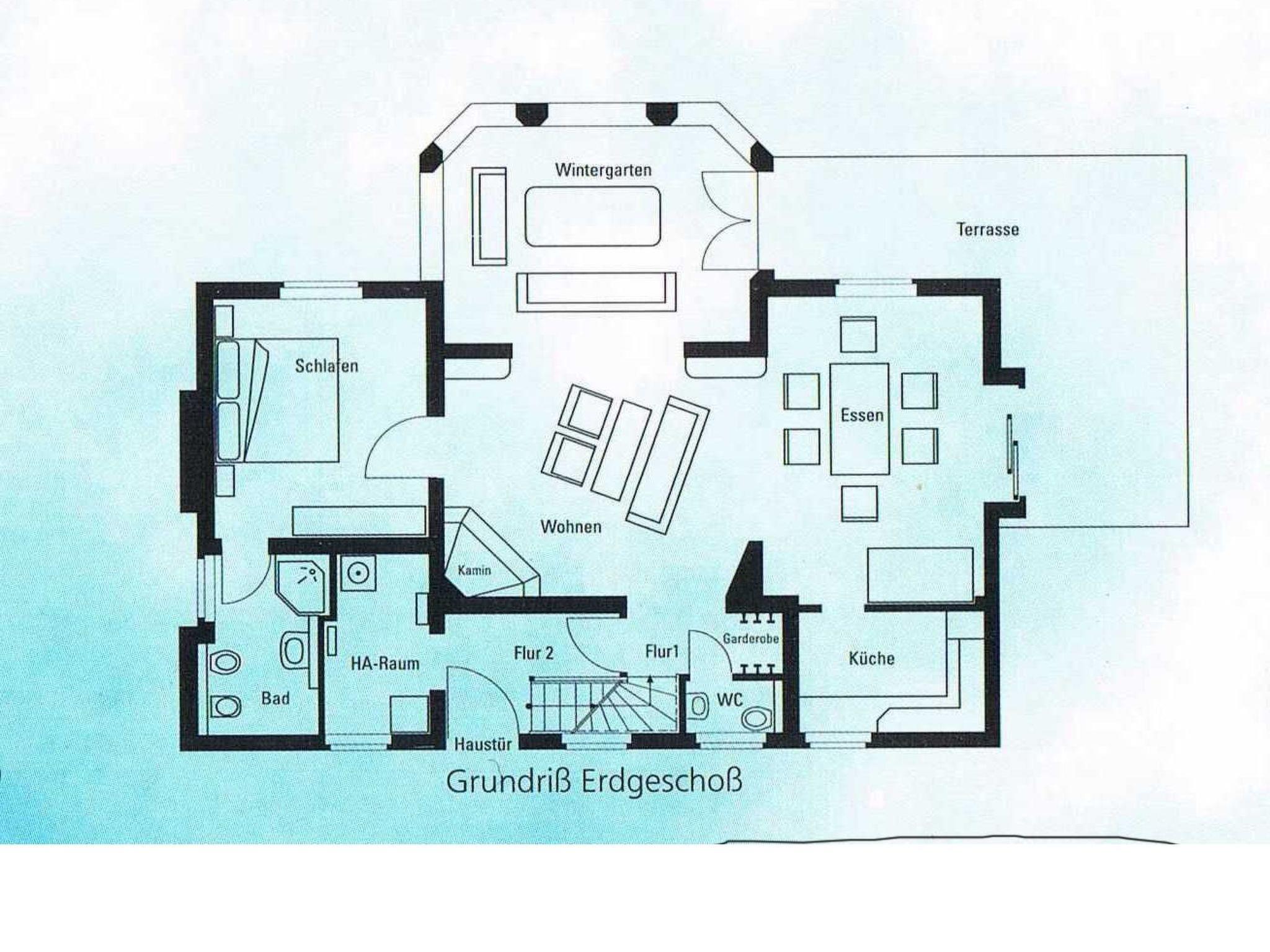 A cosy atmosphere awaits you inside the flat, which is further enhanced by a fireplace in the lounge. The underfloor heating provides additional comfort in places, and the conservatory offers a wonderful opportunity to enjoy the surrounding nature regardless of the weather. The holiday flat is equipped with a kitchen that leaves nothing to be desired: Ceramic hob, dishwasher, filter coffee machine and kettle are available for your sole use. You can also use the in-house washing machine in the utility room, which makes a long stay even more pleasant.