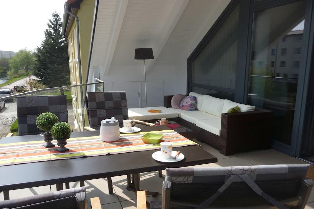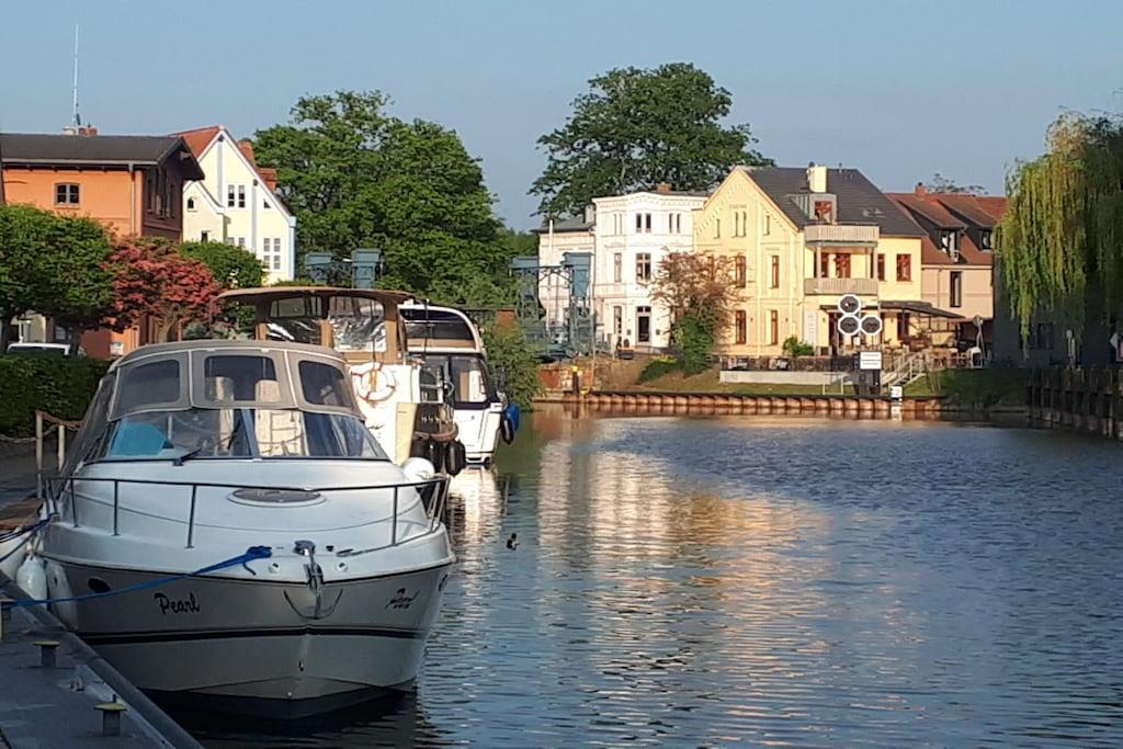 2023 met bootligplaats, dichtbij het centrum, rustig, hoogwaardig & charmant, 25 m² terras met uitzicht op het water, 2 slaapkamers, 3 TV's, kano, internet + parkeerplaats