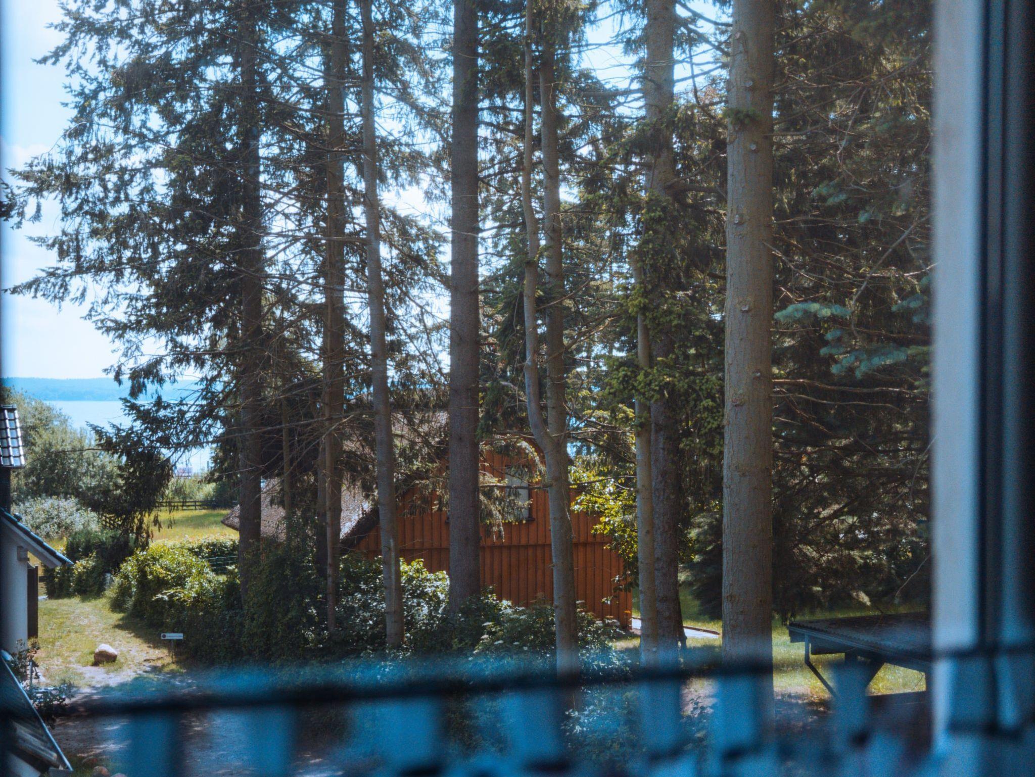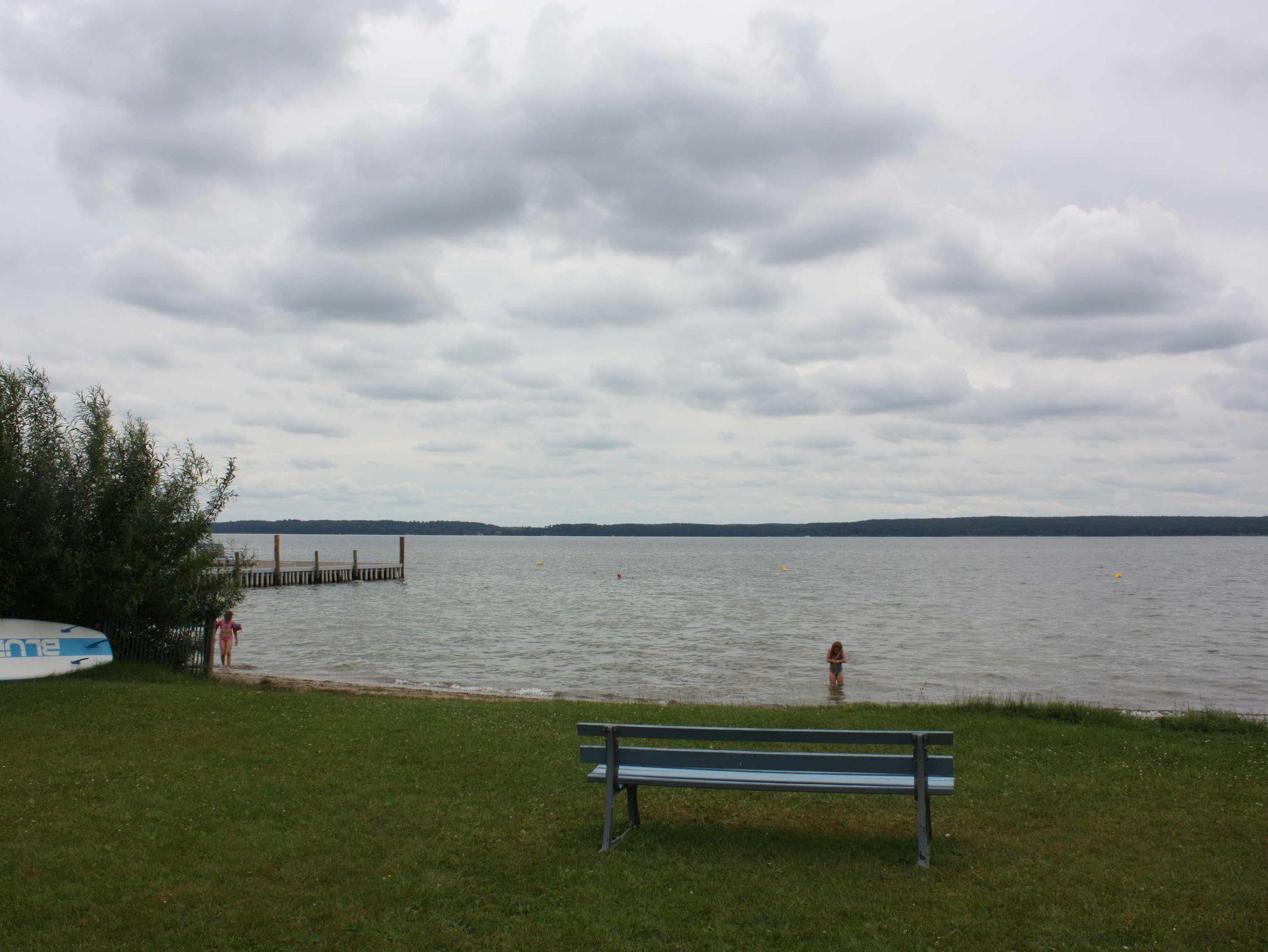 Das Ferienhaus besitzt eine Terrasse mit Seeblick, in der Nähe ist eine Badestelle.