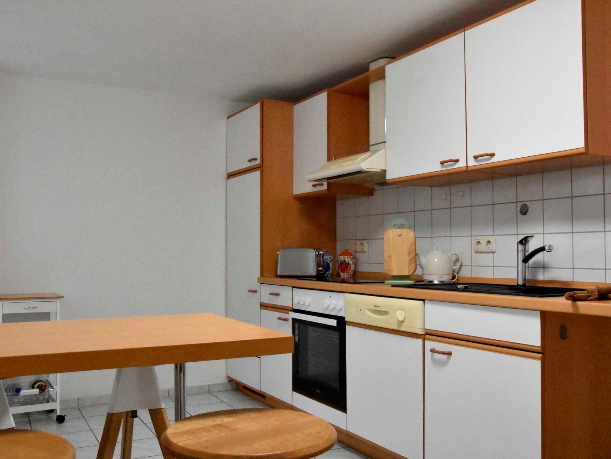 Die Wohnung liegt in der 1. Etage und besteht aus einem Wohn-/Essbereich, separatem Schlafzimmer mit Doppelbett und einer Aufbettungsmöglichkeit, voll eingerichtete Küche und Bad mit Dusche.