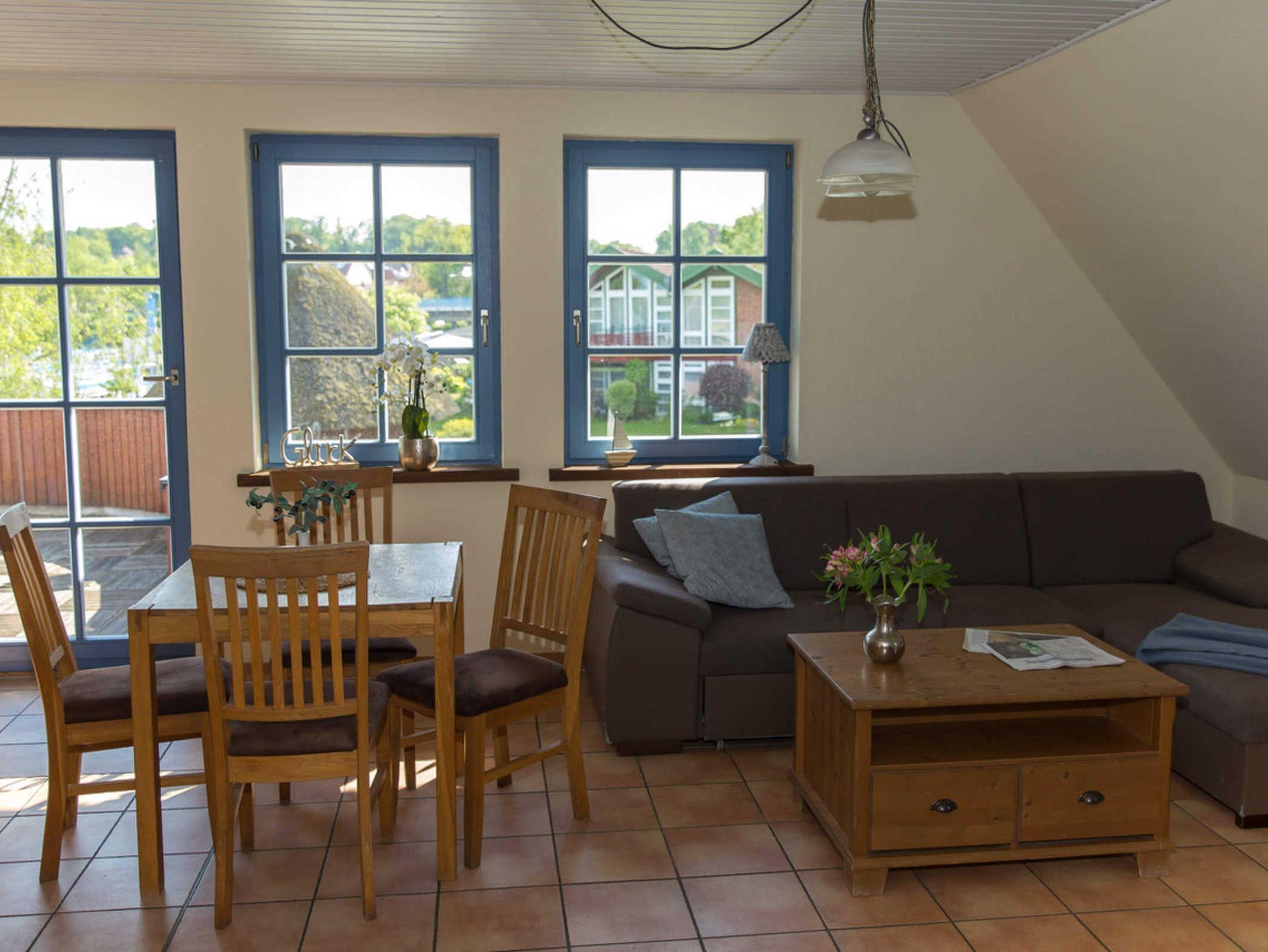 Die Appartementwohnungen befinden sich in architektonisch anspruchsvollen Rundbauten mit raffiniertem Zuschnitt, Sie öffnen sich zum Licht. Einige Appartements besitzen einen Balkon bzw. Terrasse oder Wasserblick. Weitere Annehmlichkeiten sind der Parkplatz direkt vor der Tür, die Sauna und das Solarium im Haus, für kalte Tage die behagliche Fußbodenheizung, der kostenlose Brötchenservice und nicht zu letzt die familiäre Betreuung.