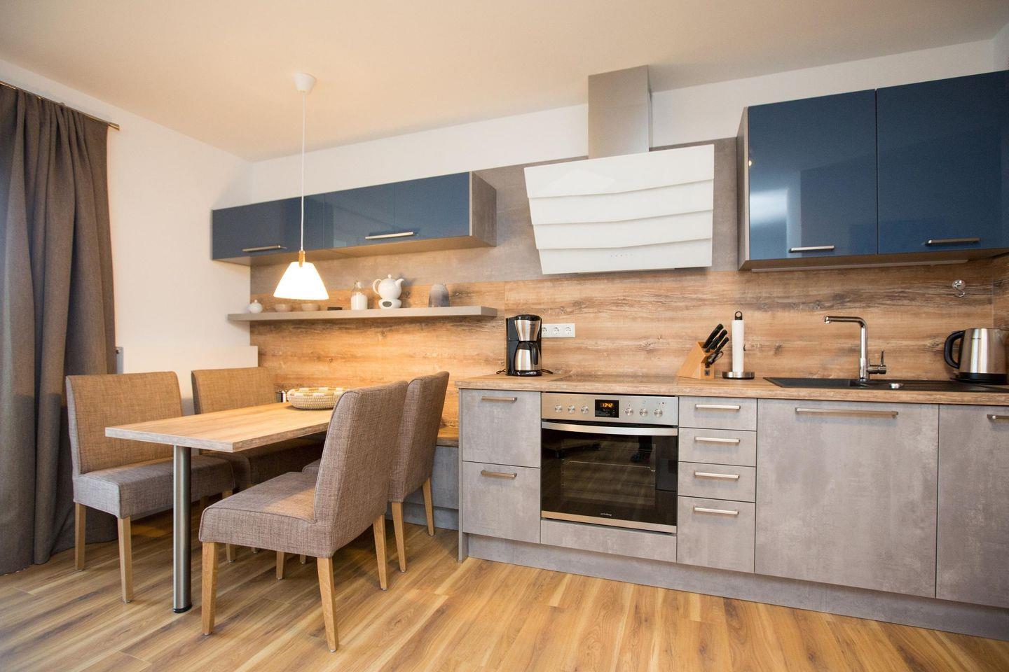 Die Wohnfläche von 56 m² teilt sich in einem Wohn-/Essbereich mit einer Küchenzeile die keine Wünsche offen lässt,
