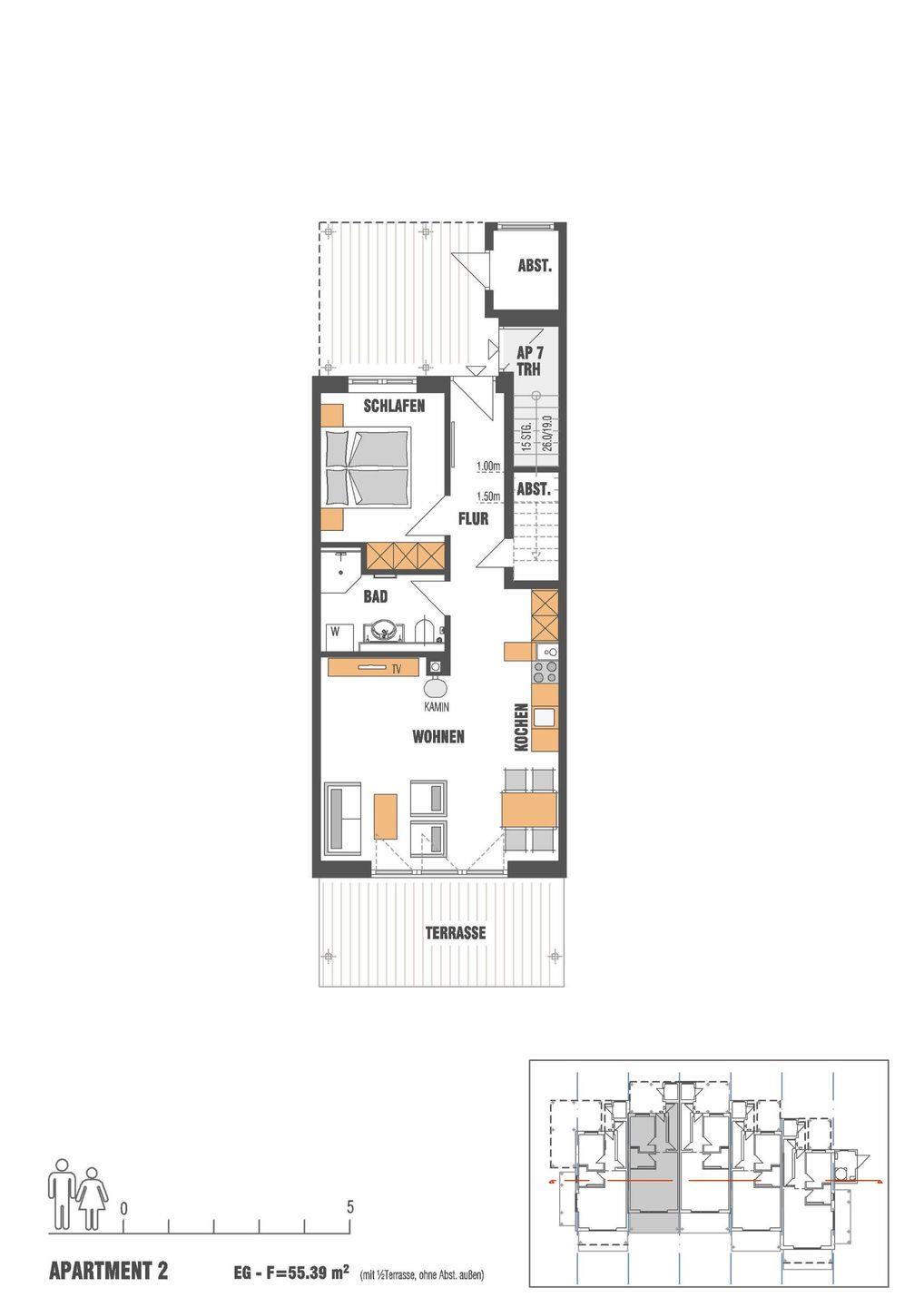 Das 2025 renovierte 2 Zimmer-Apartment ist liebevoll und modern ausgestattet. Es befindet sich im Haus 7 im Parterre.