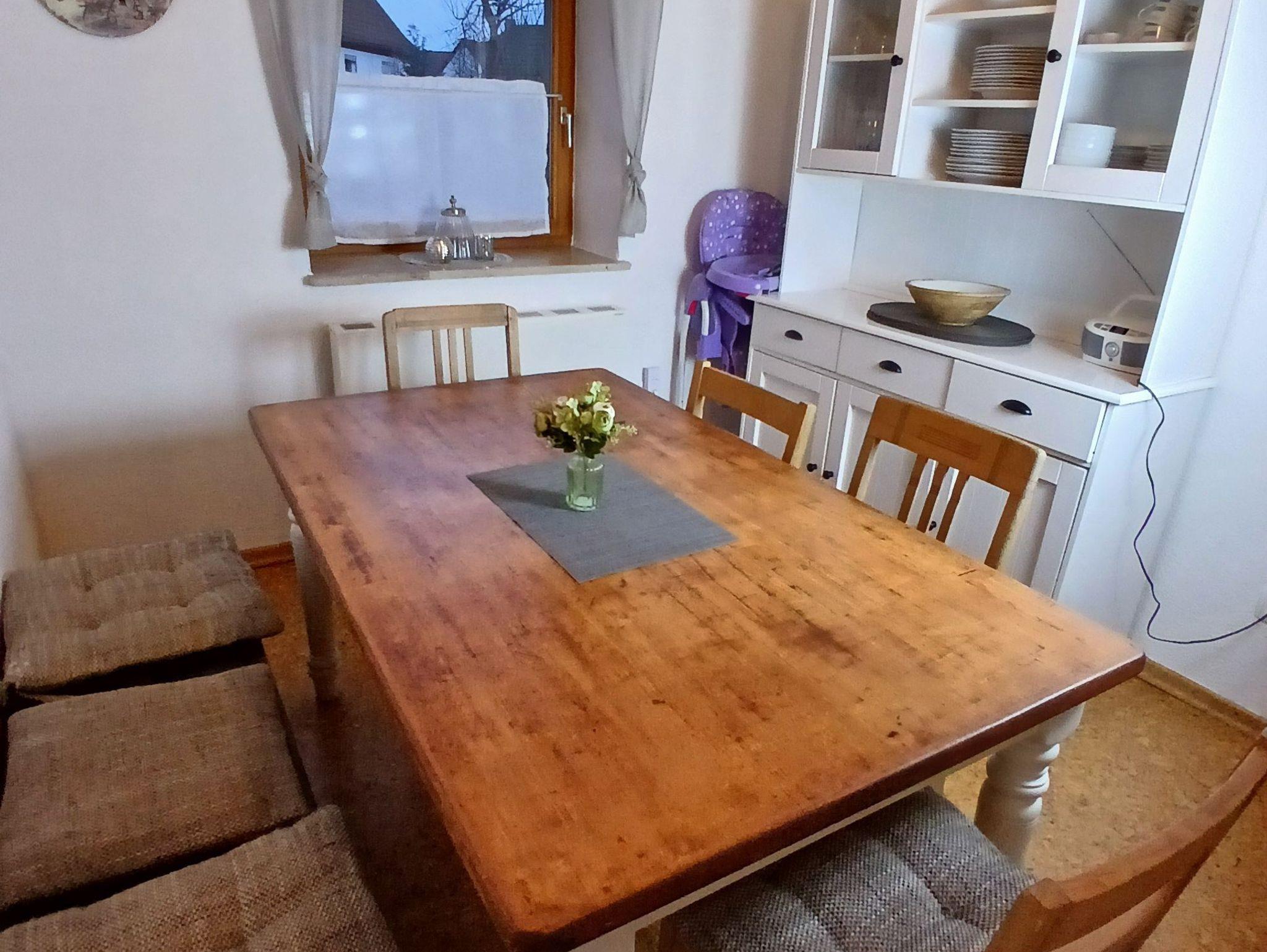Die gemütliche Wohnküche besteht aus Wohnzimmer und Küche in einem Raum und ist ausgestattet mit TV (Satellitenempfang), CD Player, 2 Sofa´s und Sessel. Der Kachelofen sorgt für behagliche Wärme.