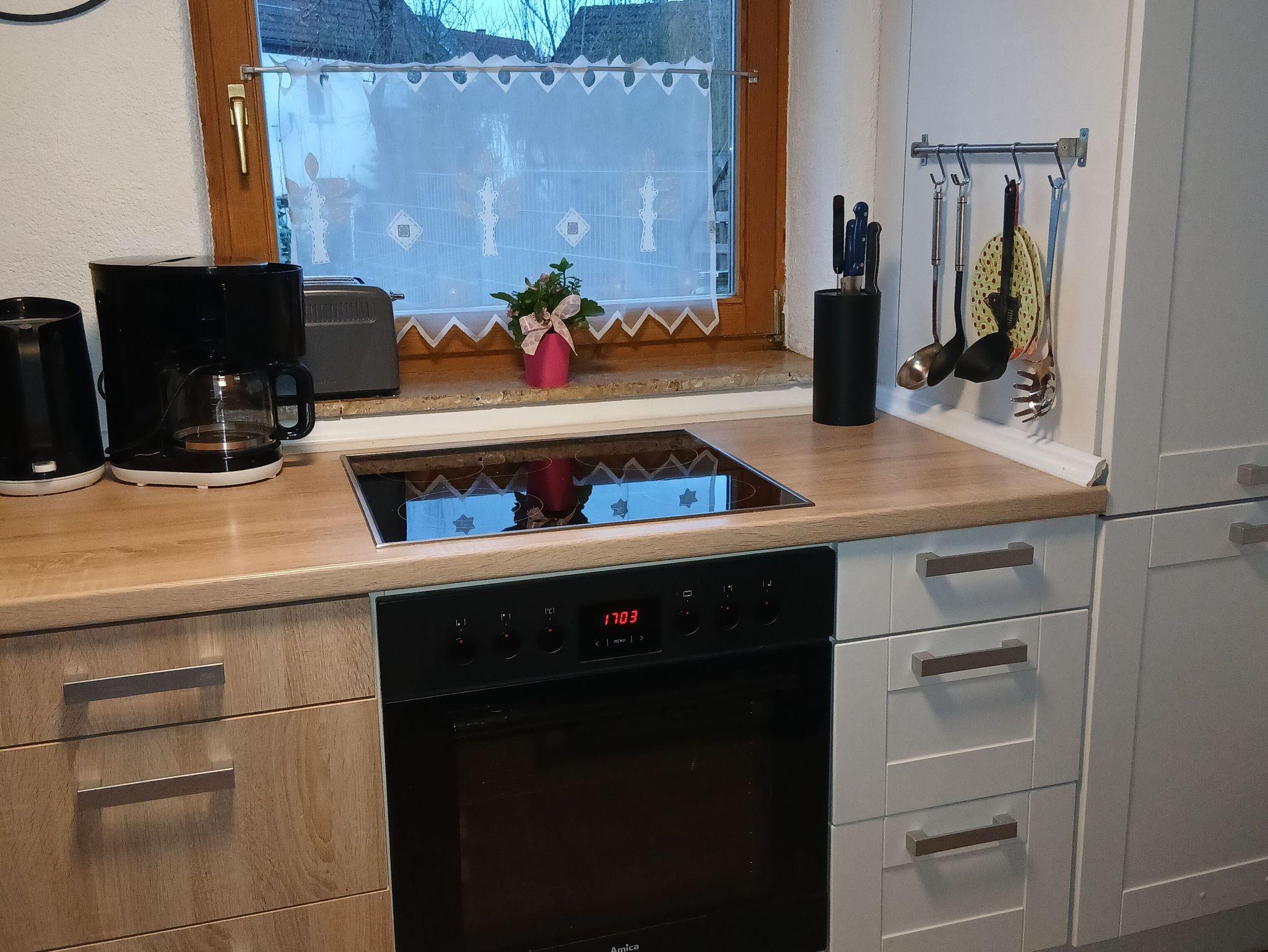 Die voll ausgestattete Küche verfügt über einen Ceran-Herd mit Backofen, Kühlschrank mit kleinem Gefrierfach, Spülmaschine, Toaster, Wasserkocher, Kaffeemaschine (Filter)