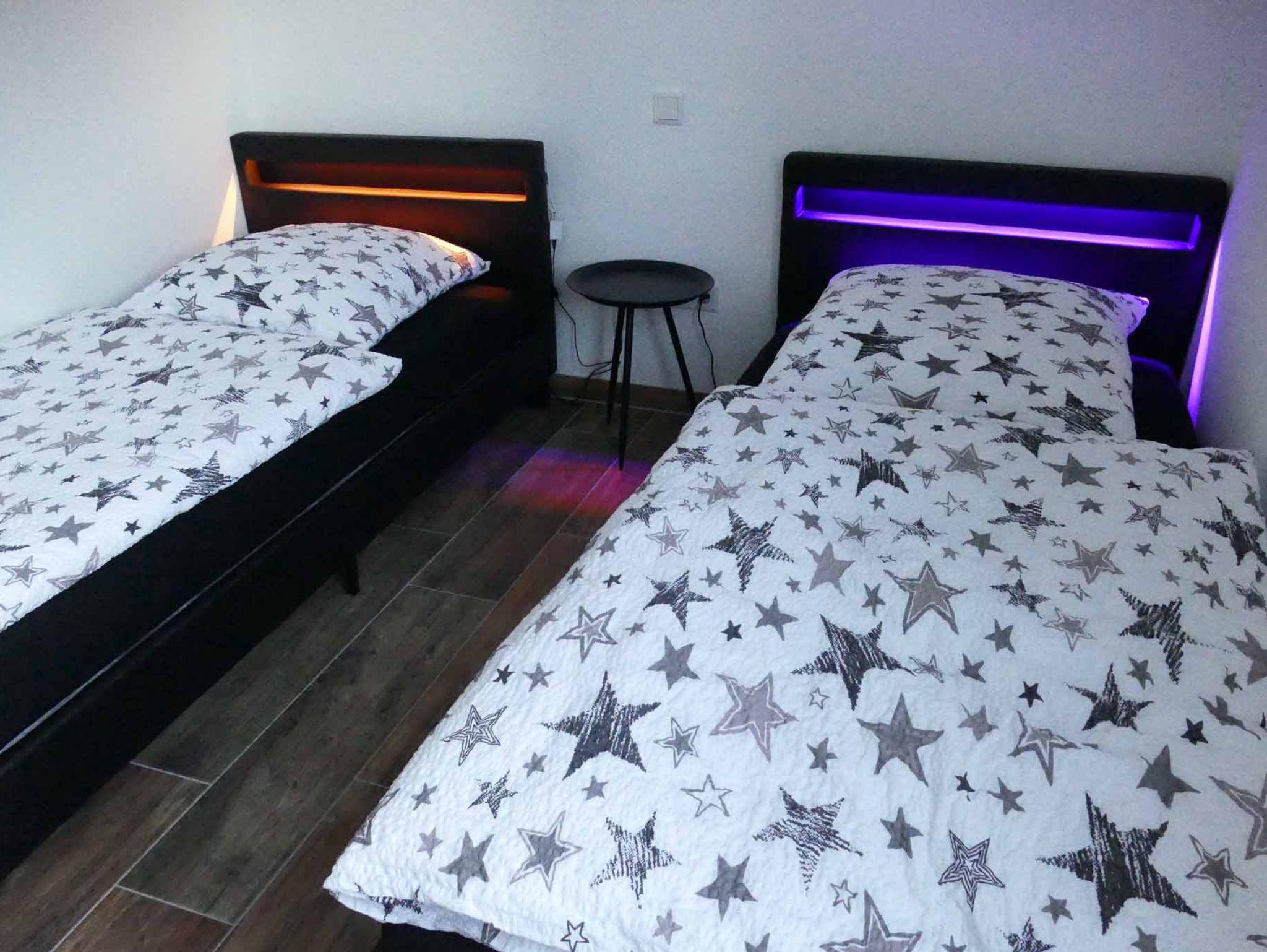 Herrlich ruhig direkt am Waldrand und nur 10 Gehminuten vom großen Badestrand und dem Yachthafen Ramsberg entfernt liegen unsere vier neuen, modern und geschmackvoll gestalteten Ferienwohnungen für vier (max. sechs) Personen. Die komplett mit Steinfliesen in Holzdielen-Optik gefliesten Wohnungen liegen im Erdgeschoss und 1. Stock. Alle Wohnungen sind mit einem Balkon ausgestattet. In der kühleren Jahreszeit schenkt Ihnen eine Fußbodenheizung wohlige Wärme.