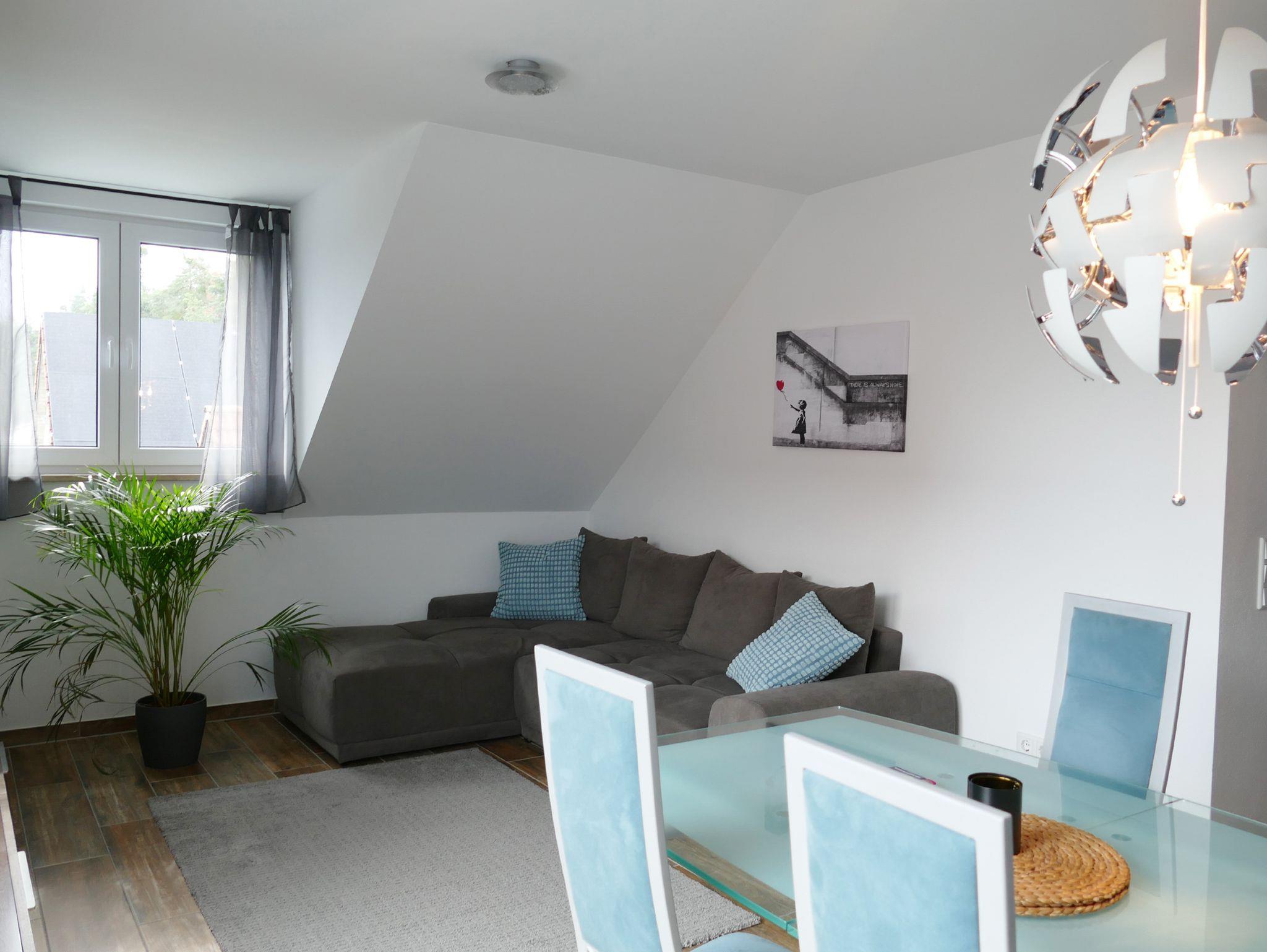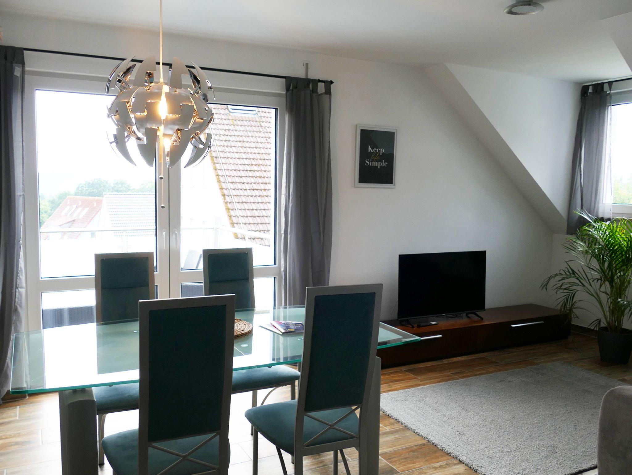 Genießen Sie entspannte Stunden in der gemütlichen Wohnküche, die perfekt ausgestattet ist und zum gemeinsamen Kochen und Verweilen einlädt. Oder Sie entspannen auf dem Balkon oder im Garten mit Blick auf die Natur. Unsere harmonische Ferienwohnung mit 65 Quadratmetern ist ideal für Familien oder Paare, die dem Alltag entfliehen möchten.