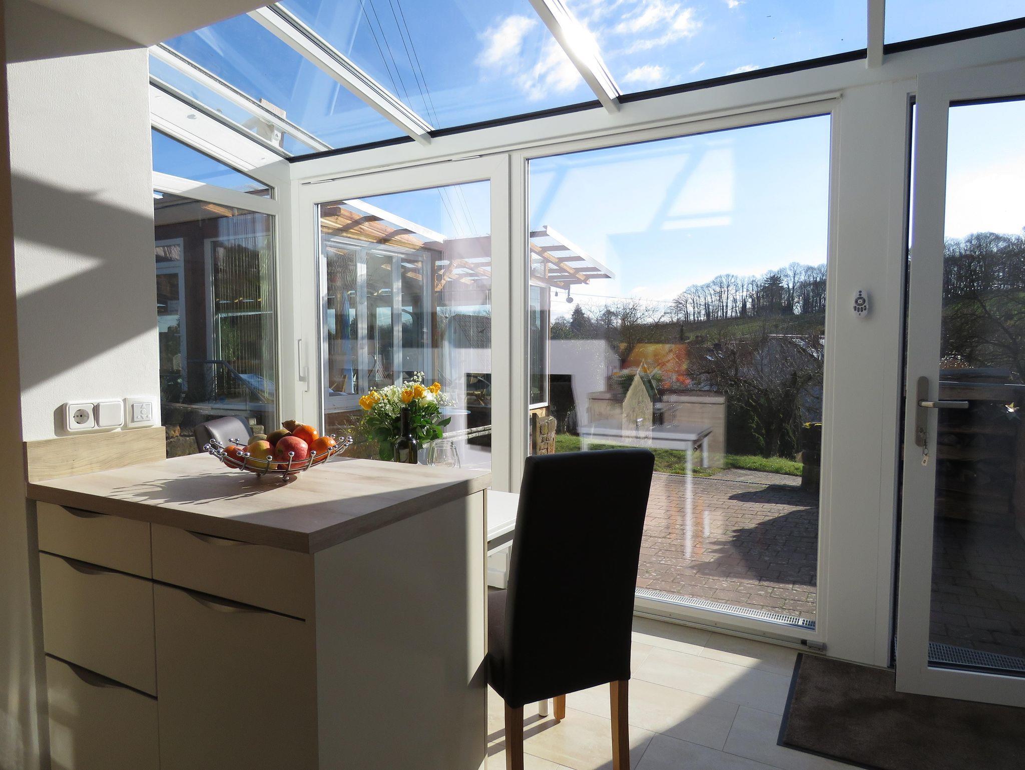Genießen Sie Ihr Frühstück im angebautem Wintergarten mit offen angrenzender Küche. Das moderne Bad ist mit ebenerdiger Dusche und einem Dusch-WC ausgestattet. Ein beleuchtetes Himmelbett aus Zirbenholz und ein elektrisch verstellbarer Lattenrost, garantieren Ihnen einen traumhaften Schlaf. Die Terrasse befindet sich direkt vor der Türe und in ein paar Schritten sind Sie im Poolhaus.