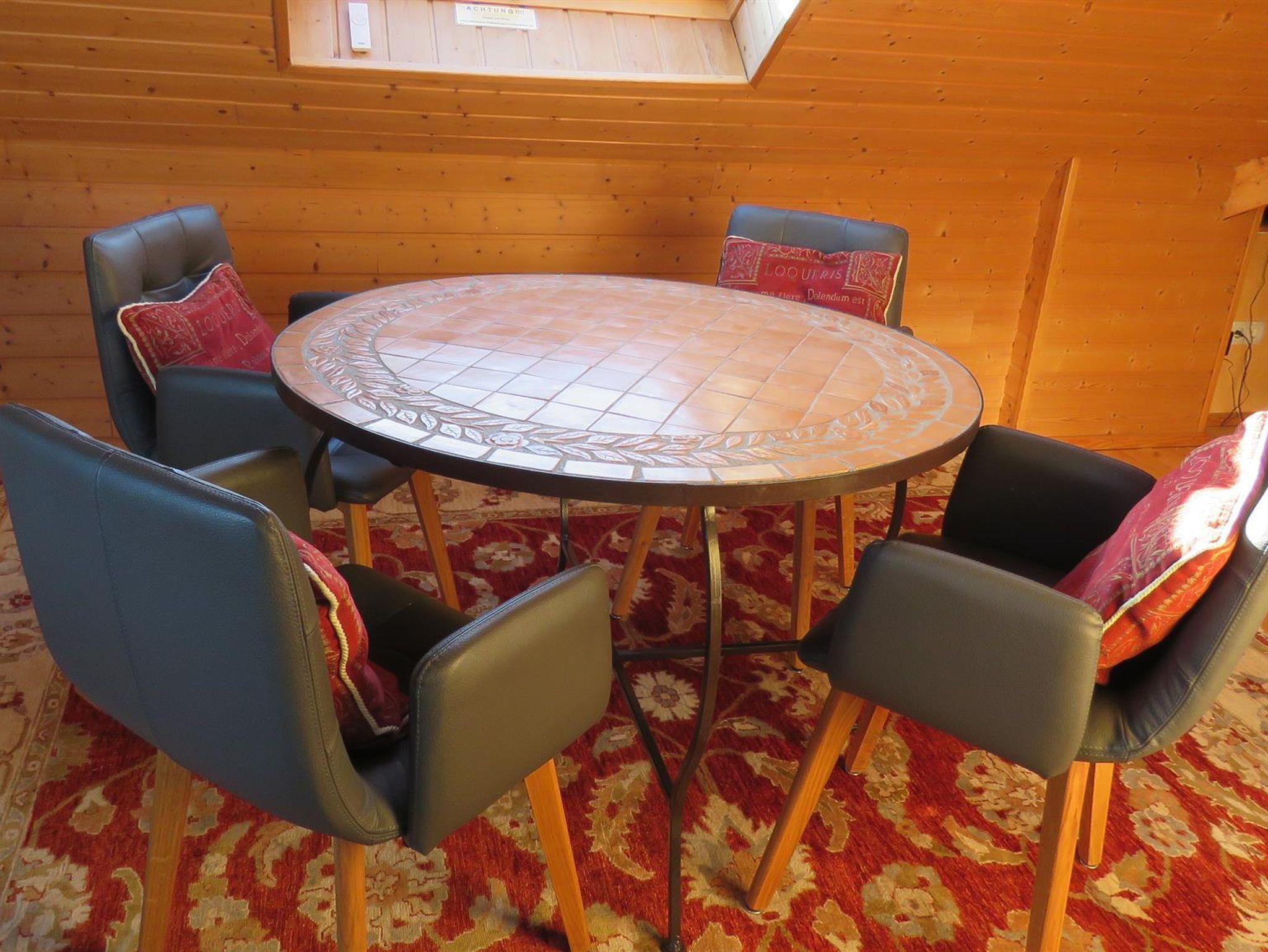 Der großzügige Wohnraum biete einen Eßbereich für 4 Personen, eine Sitzecke mit Ausziehsofa ,ein elektrisch,verstellbares ,beleuchtetes Himmelbett mit einer Luxusmatratze in 24 cm höhe.
