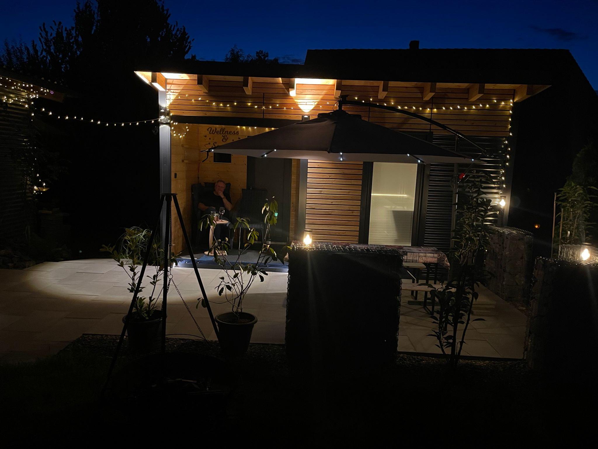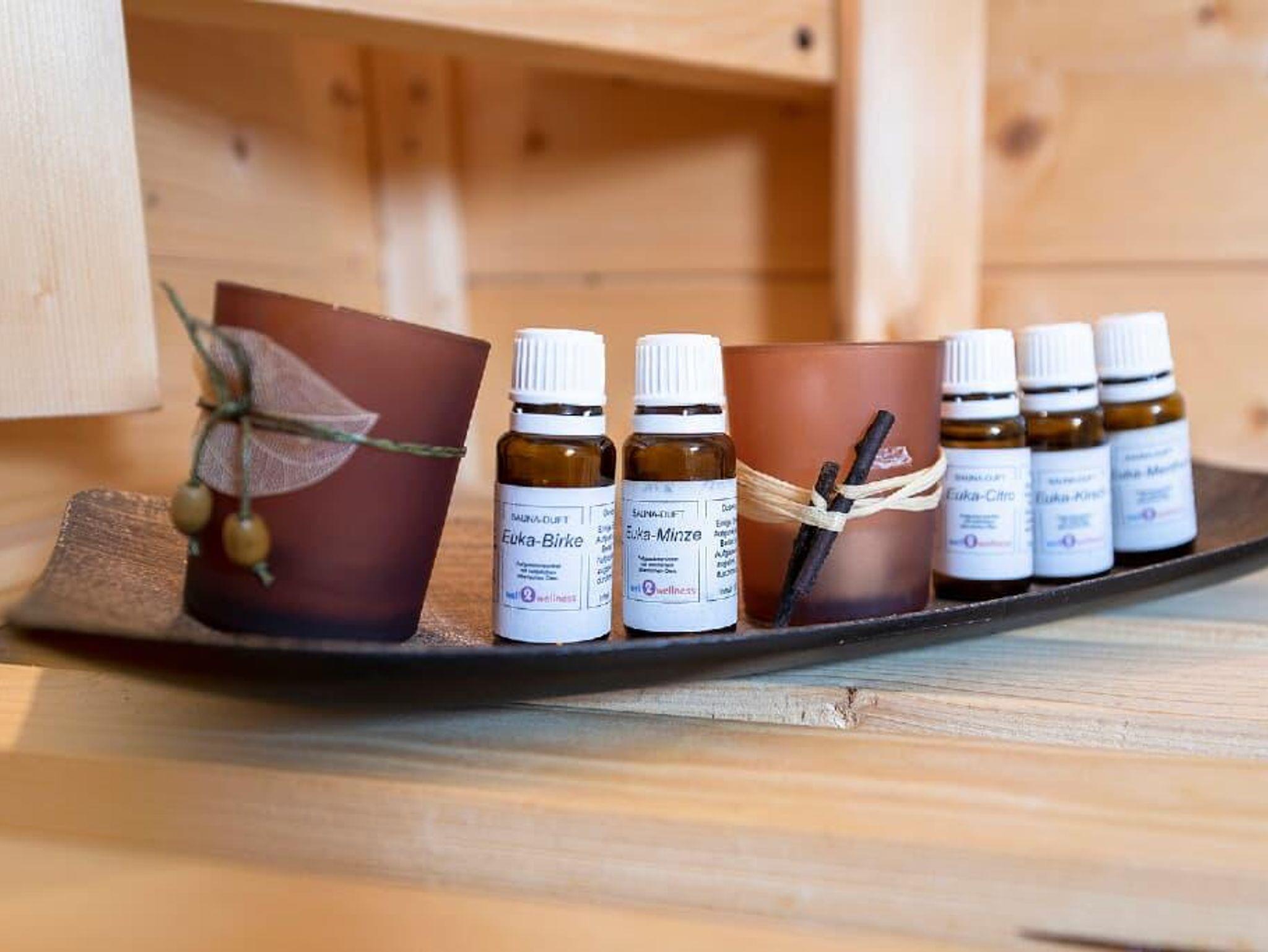 Ein kleines Wellness Programm starten Sie mit einen Aufguss in der eigenen Sauna des Ferienbungalows Rosenquarz...