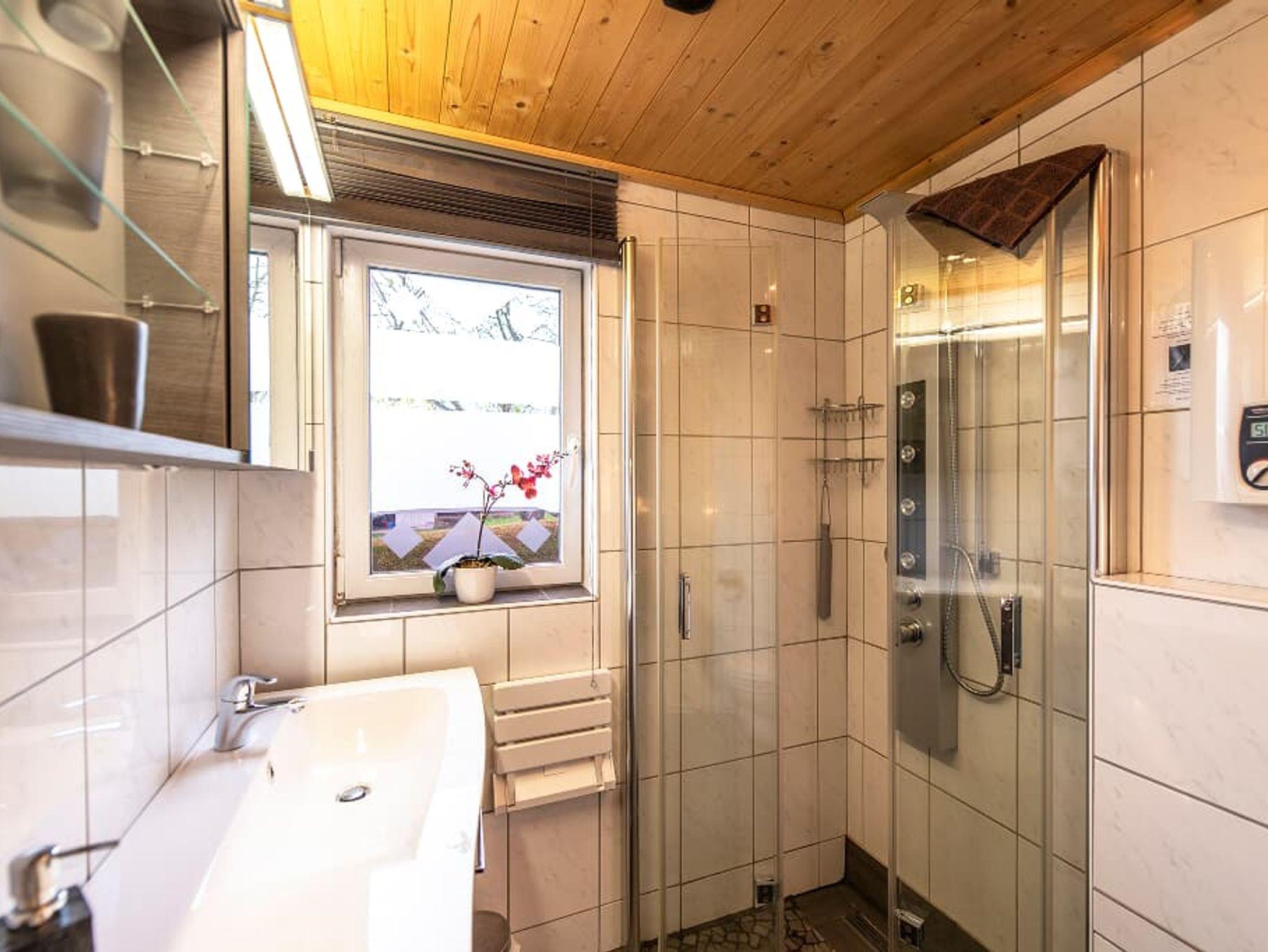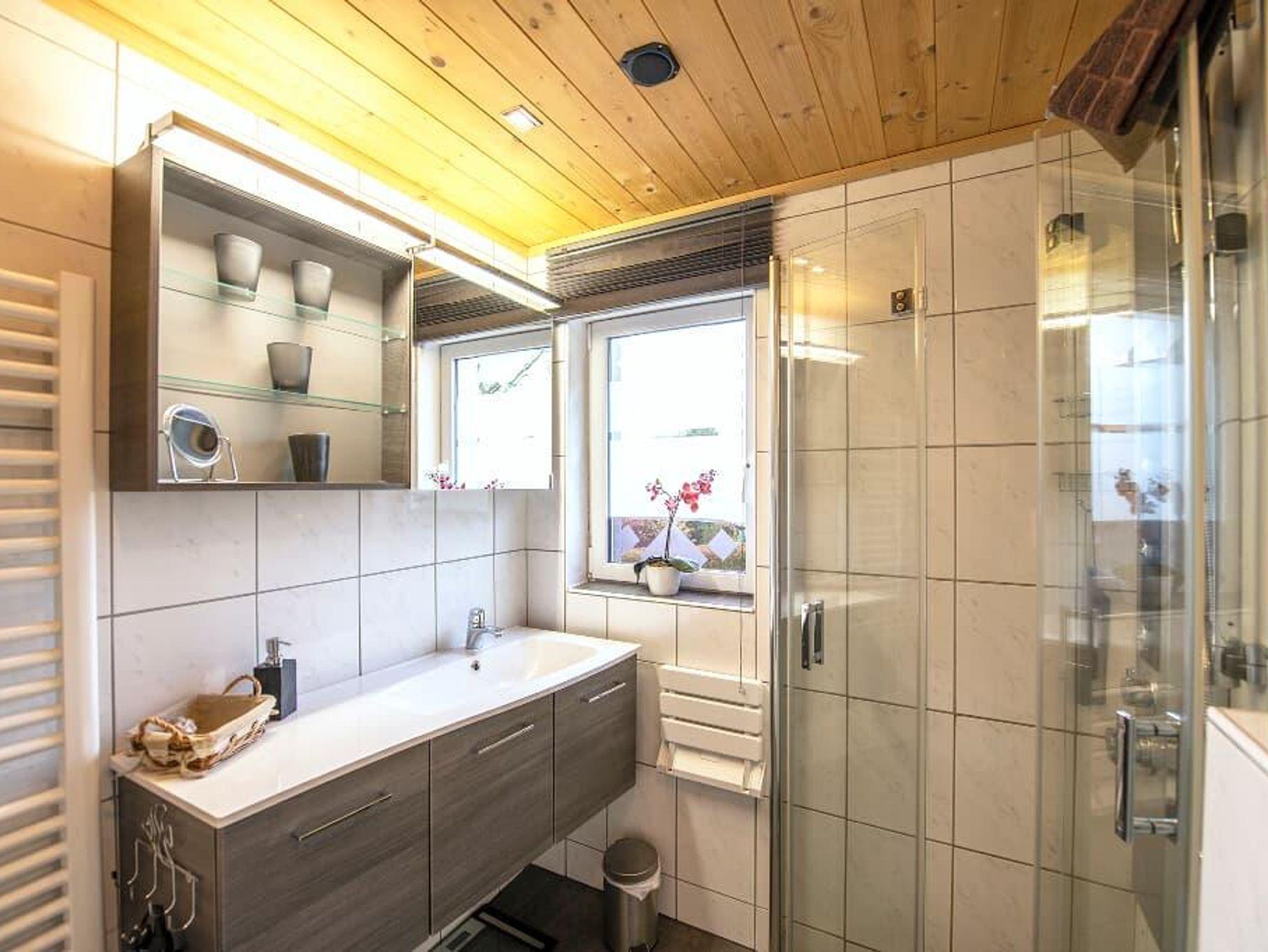 Musik aus der Stereoanlage begleitet Sie im Bad bei einer begehbaren, wohltuenden Dusche unter dem Massage-Panel. Den Tag beginnen Sie beim Frühstück auf unserer sonnigen Terrasse.