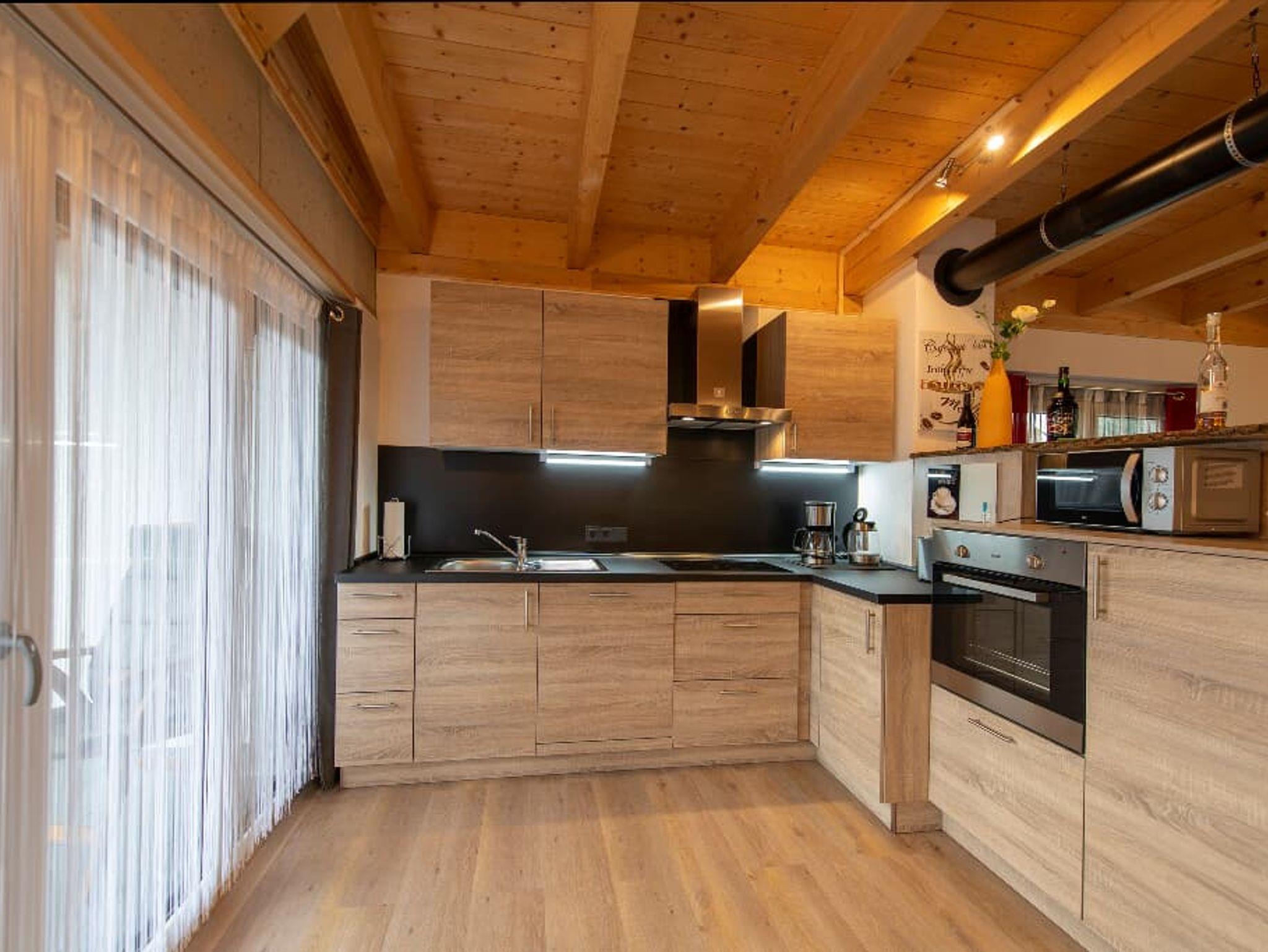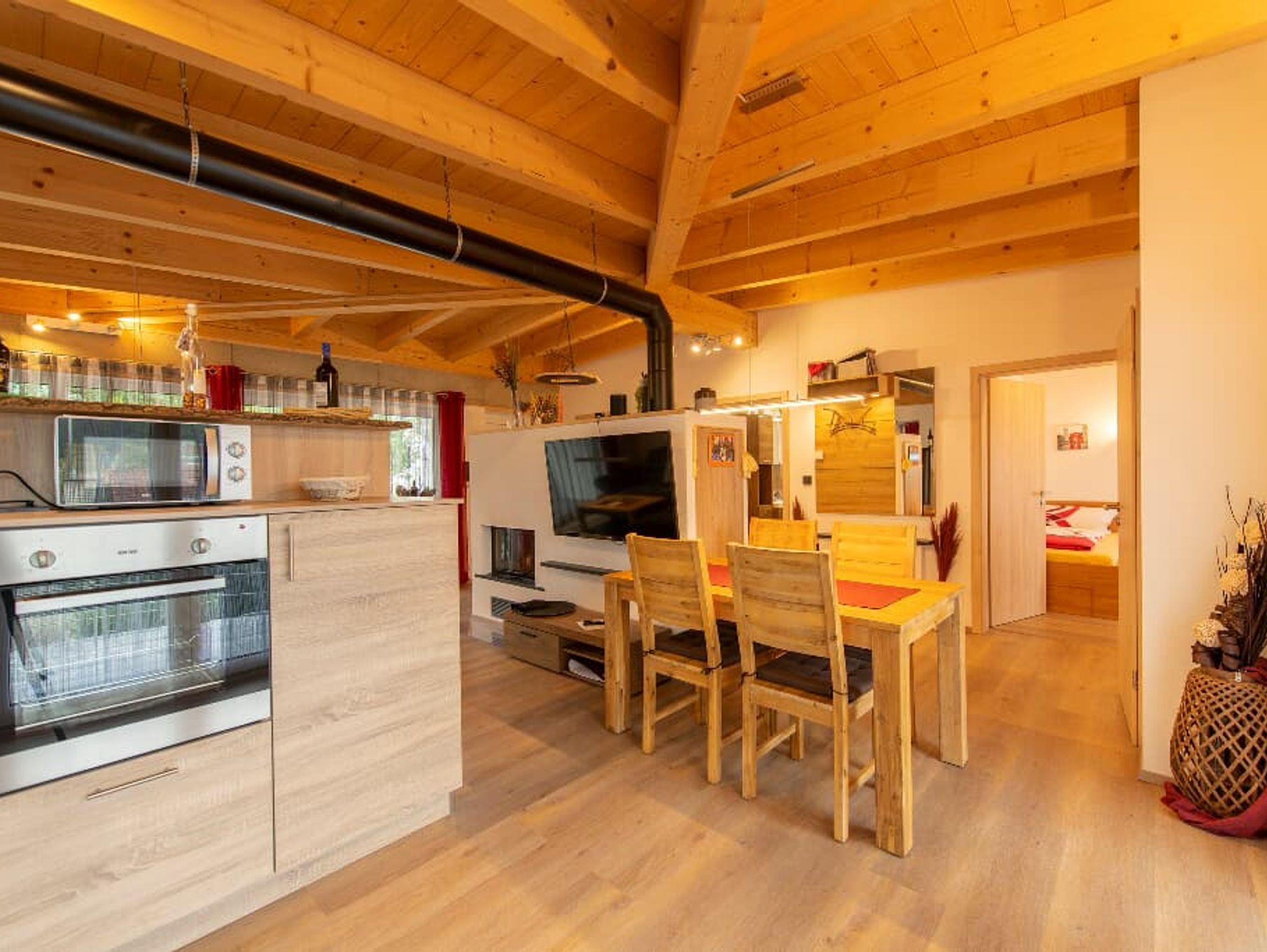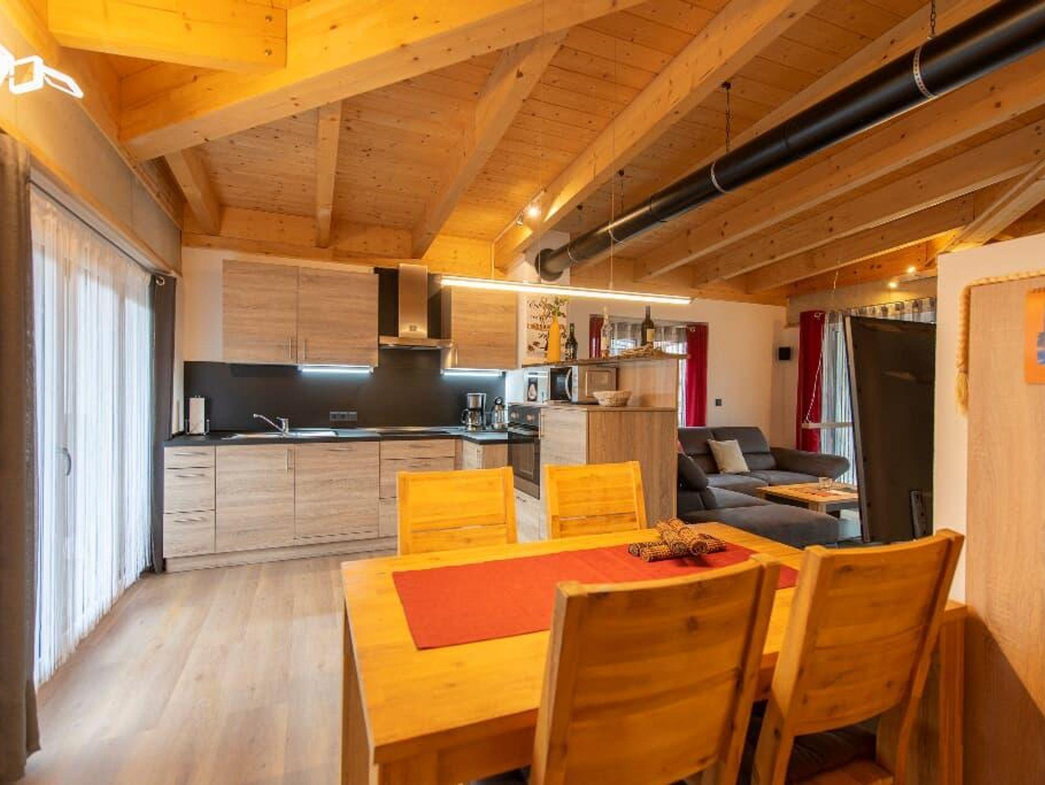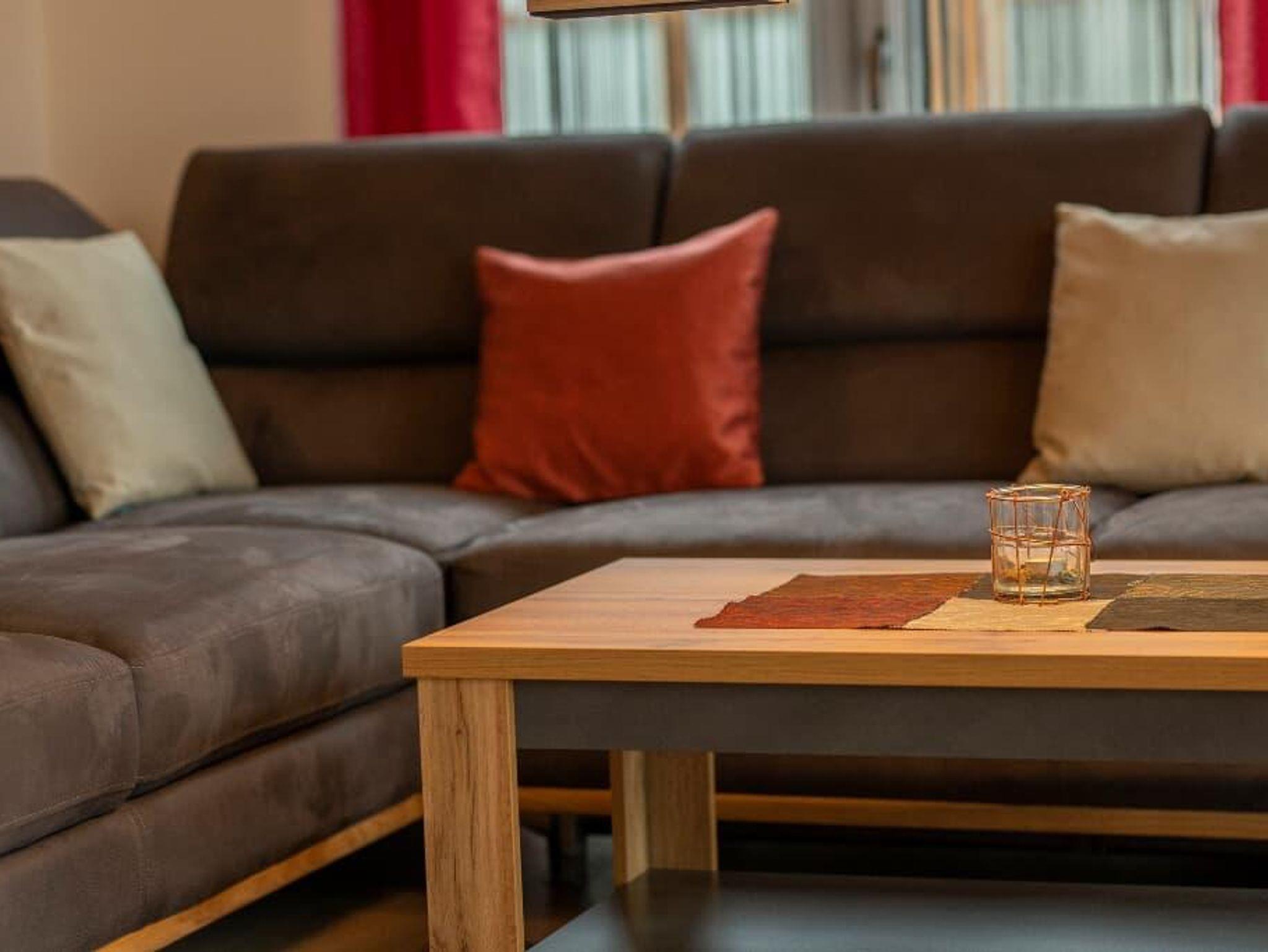 Der gemütliche Wohnbereich mit Kachelofen und „integrierten Weinregal“ mit edlen Weinen lassen so manchen Abend auf der Terrasse oder Balkon besinnlich ausklingen. Auch in der Küche wird es Ihnen an nichts fehlen, dafür sorgt am morgen ein Frühstückscenter mit Kaffeemaschine, Tee-Zubereiter und Doppeltoaster. Ein vierplatten-Cerankochfeld mit Backofen unterstützt Sie bei der Zubereitung Ihrer Speisen.