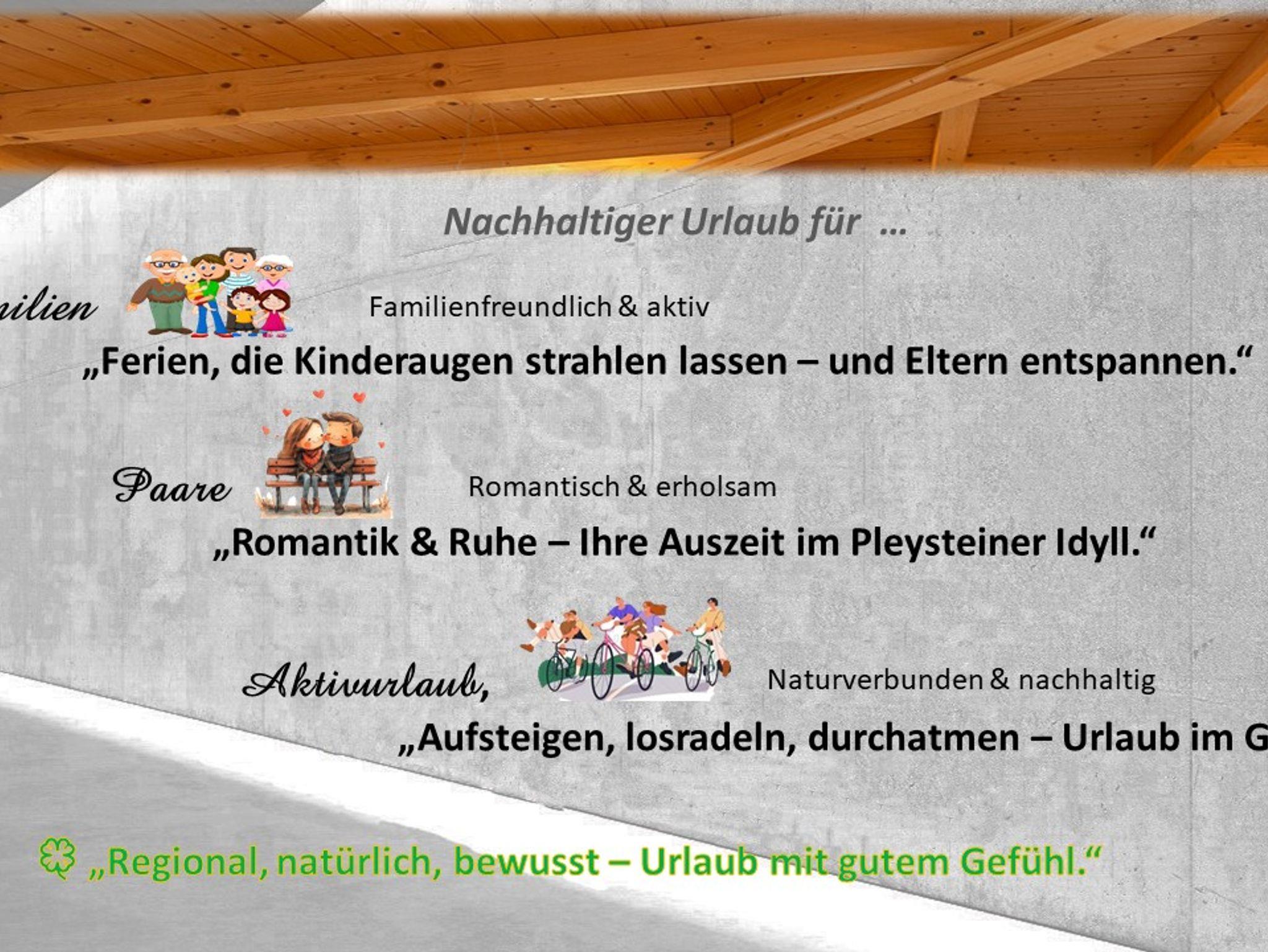 Ein herzliches Grüß Gott von Irene und Manfred im Pleysteiner Idyll. Der ideale Ort für Ihren Sommer- und Winterurlaub inmitten der phantastischen Landschaft rund um den Fahrenberg im Oberpfälzer Wald und dem Zottbachtal, an der Via Carolina, der Goldenen Straße gelegen. Genießen Sie die einmalig sonnige und ruhige Lage unserer Wohnungen, direkt gegenüber dem Freizeitzentrum. Die persönlich und familiär geführten Wohnungen präsentieren sich mit modernen komfortablen Einrichtungen, die zum Verweilen einladen und lassen Ihren Urlaub zum Erlebnis werden.