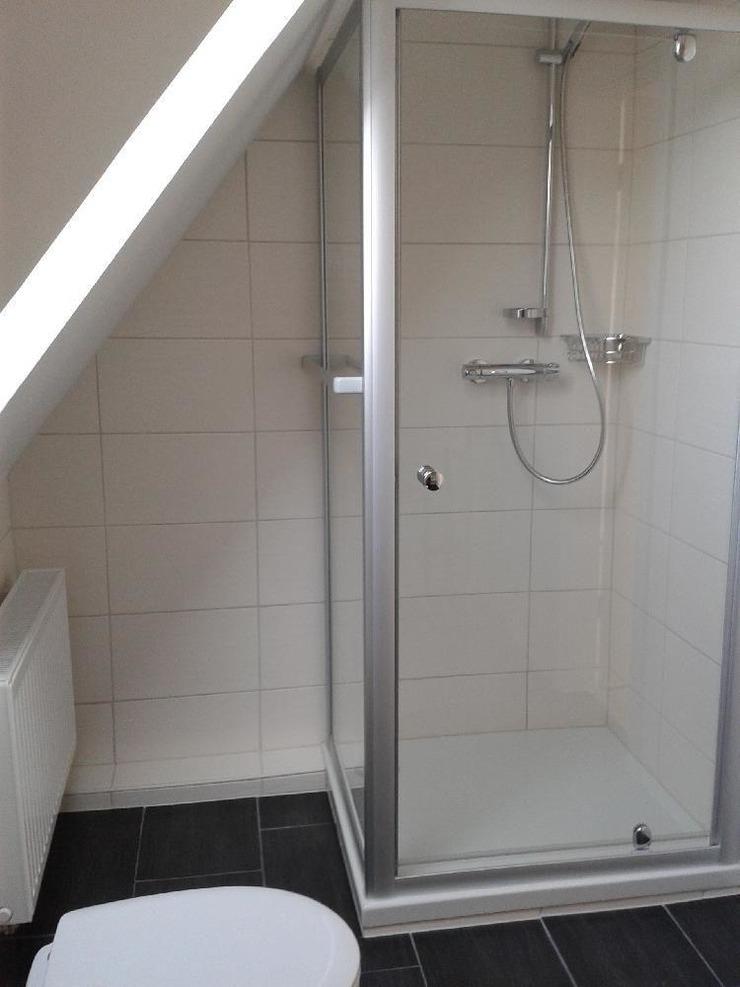 Im Erdgeschoß befindet sich eine Gäste-Toilette. Das neue Dusch-Badezimmer mit Toilette liegt im Obergeschoß bei den Schlafzimmern.