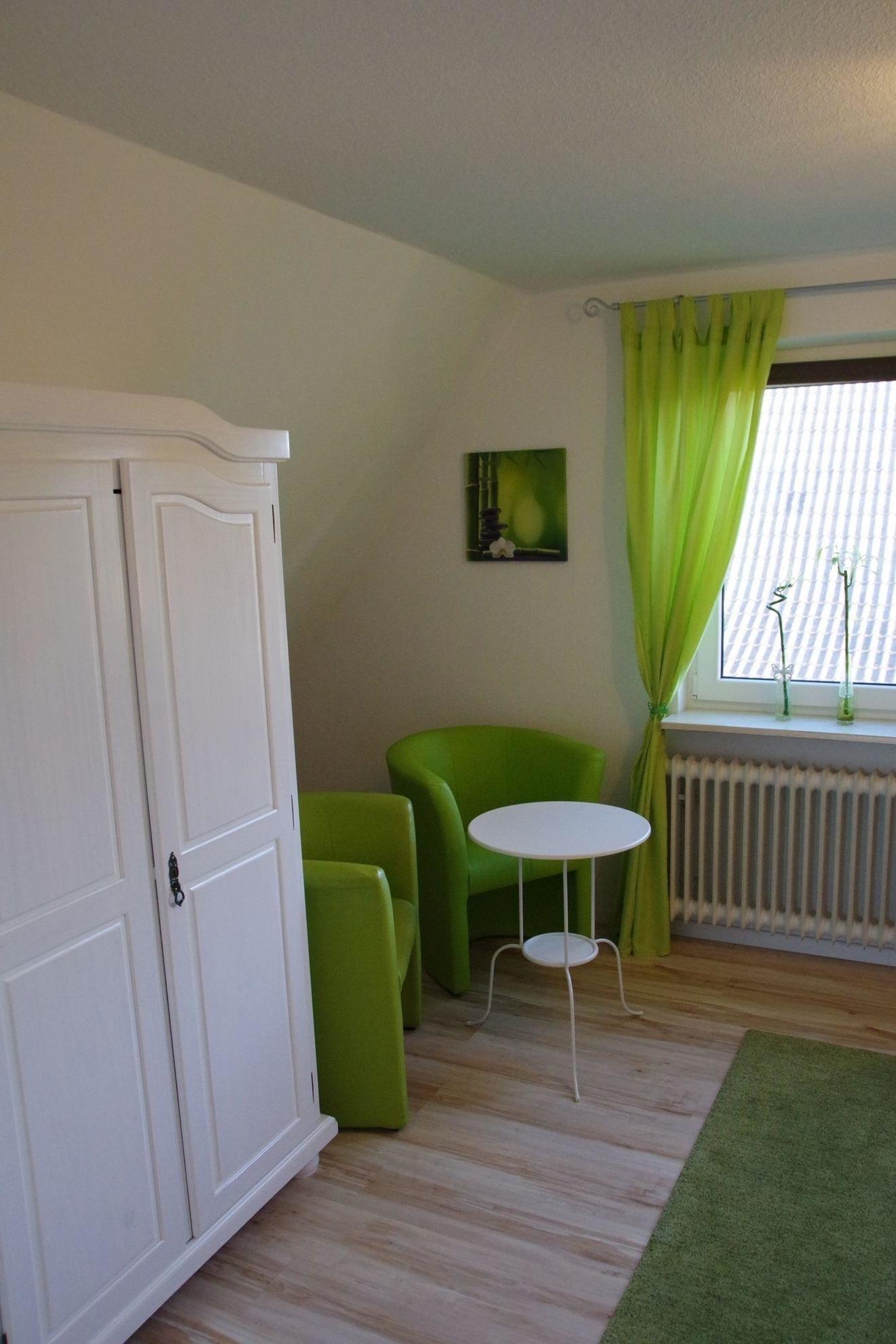 In dem zweiten Zimmer sind zwei einzelne Betten mit 80 cm Breite und für Kinder und Erwachsene geeignet. Auf Anfrage kann ein Bett zu einem 1,60 m Bett umgebaut werden. Somit können hier drei Personen schlafen.