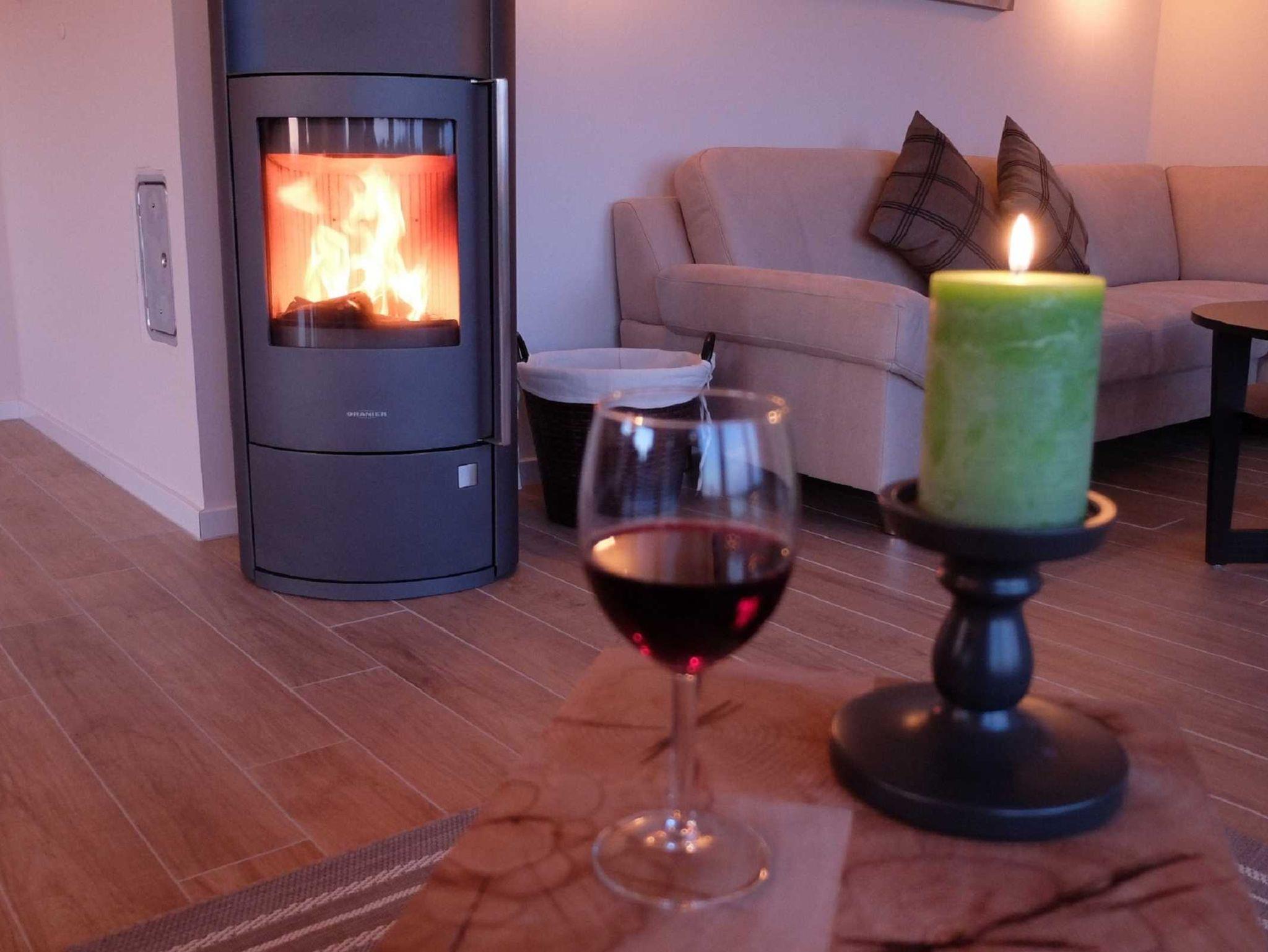 - großzügiger Wohn-/Essbereich mit Kaminofen und offener Küche; Feuerholz inklusive