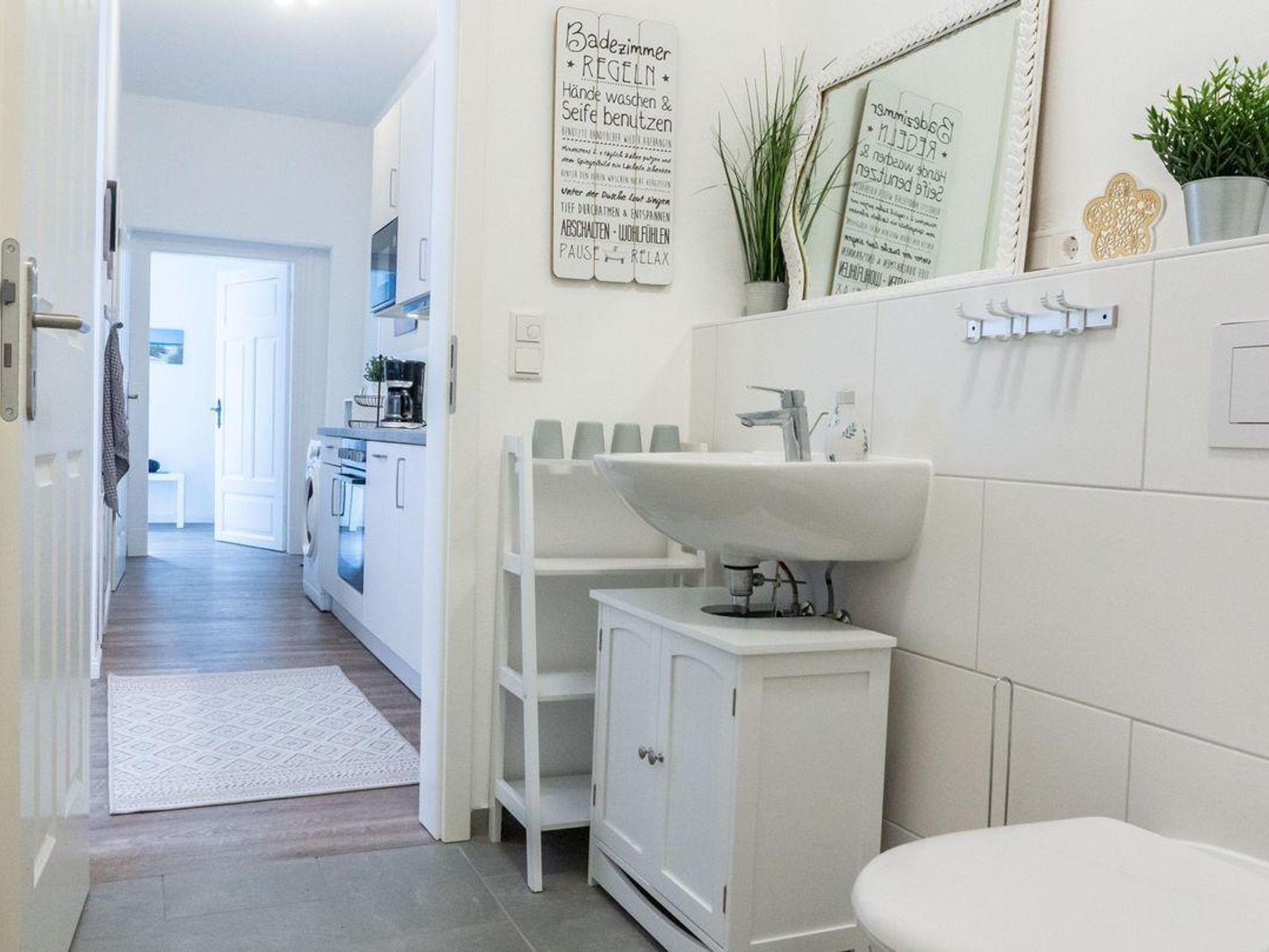 Waschmaschine (Eigennutzung), Trockner (gemeinschaftlich) und Wäscheständer bieten zusätzlichen Komfort für längere Aufenthalte.
