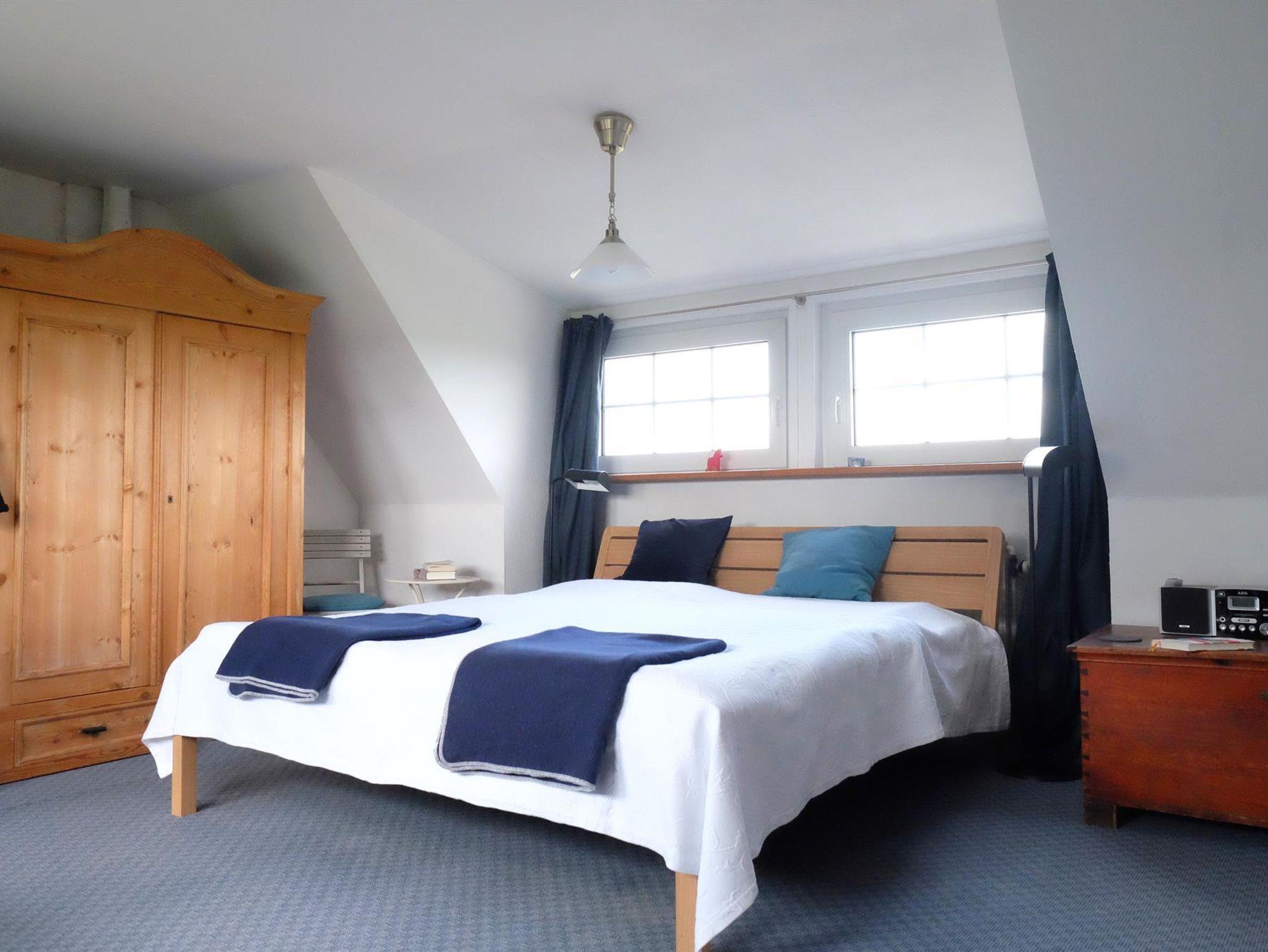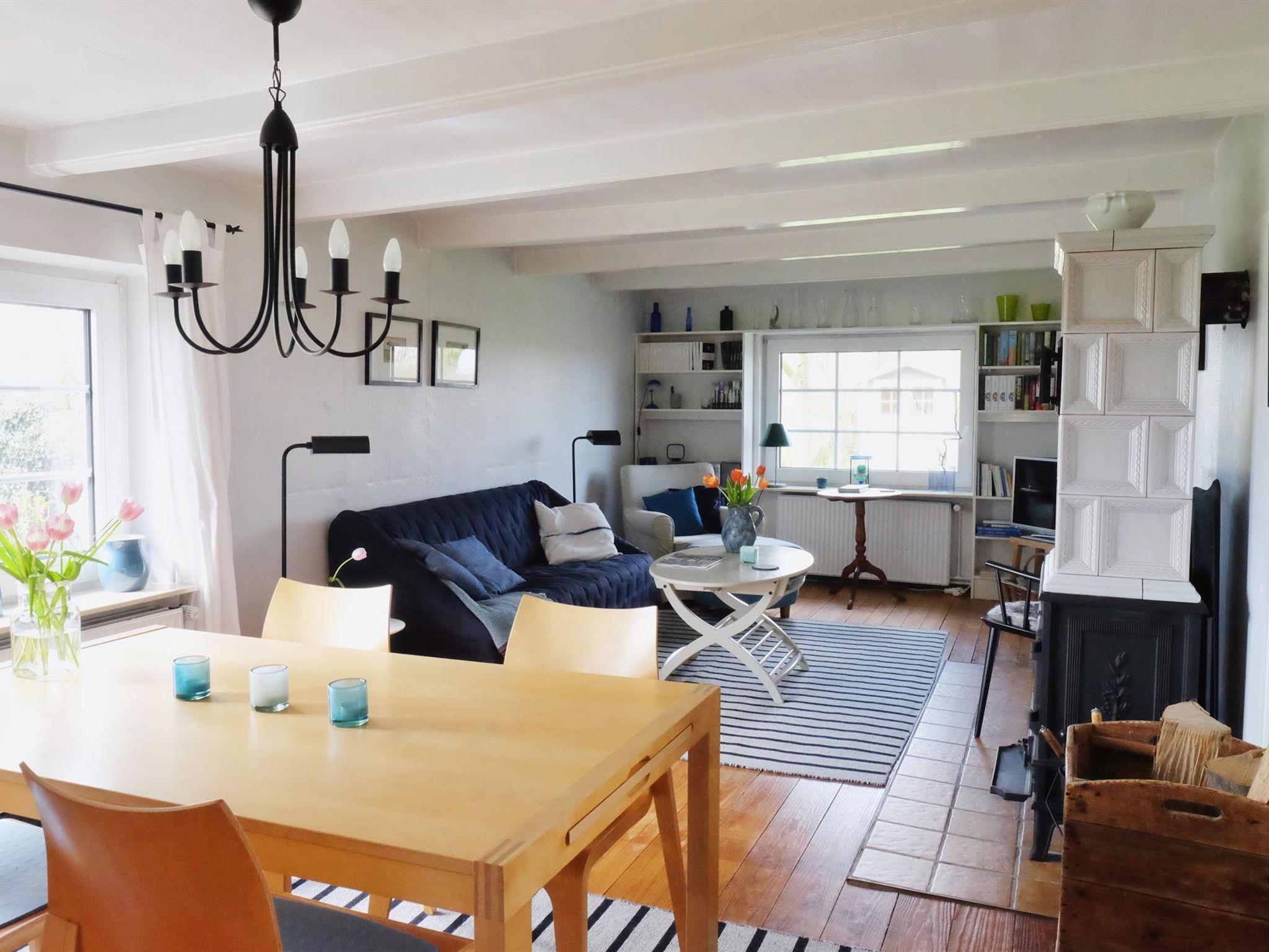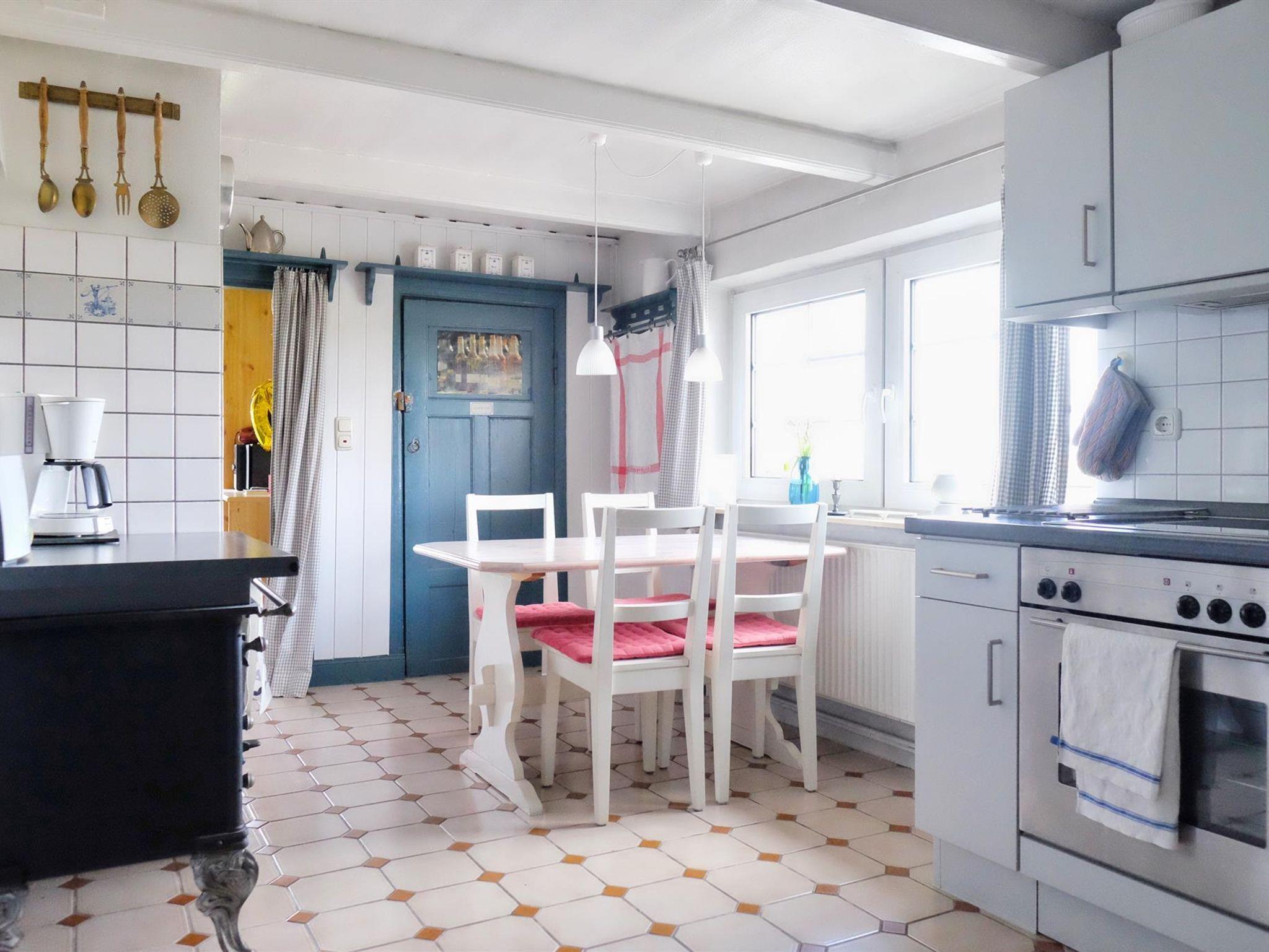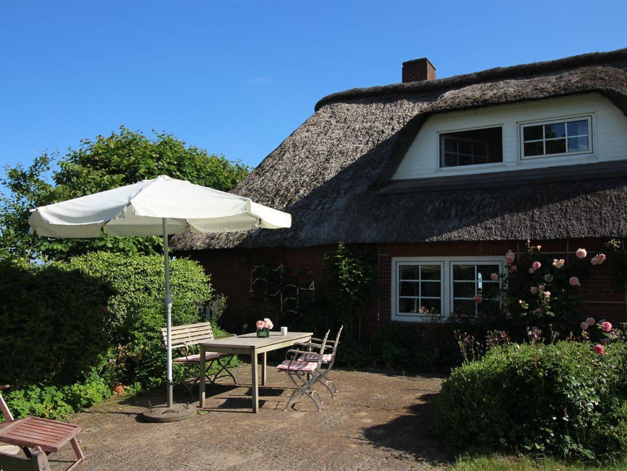 Die gemütliche, komfortable Reetdachkate bietet im Erdgeschoss und im ausgebauten Dachgeschoss auf 100qm reichlich Platz für 4 Personen.Der große Wohnbreich mit Essecke und behaglichem Kachelofen lädt zum Verweilen ein. Die komplett ausgestattete Küche mit Spülmaschine, Backofen, 4-Platten-Herd bietet alles, was Sie für den Urlaubshaushalt benötigen. Im Erdgeschoss befindet sich ein Schlafraum mit einem Doppelbett, den zweiten Schlafraum mit einem Doppelbett finden Sie im Obergeschoss. Ein Duschbad mit WC sowie ein Wannenbad mit WC liegen im Erdgeschoss. Zusätzlich gibt es im Obergeschoss ein zusätzliches WC. Auf Wunsch können Kinderbett und Hochstuhl bereit gestellt werden.