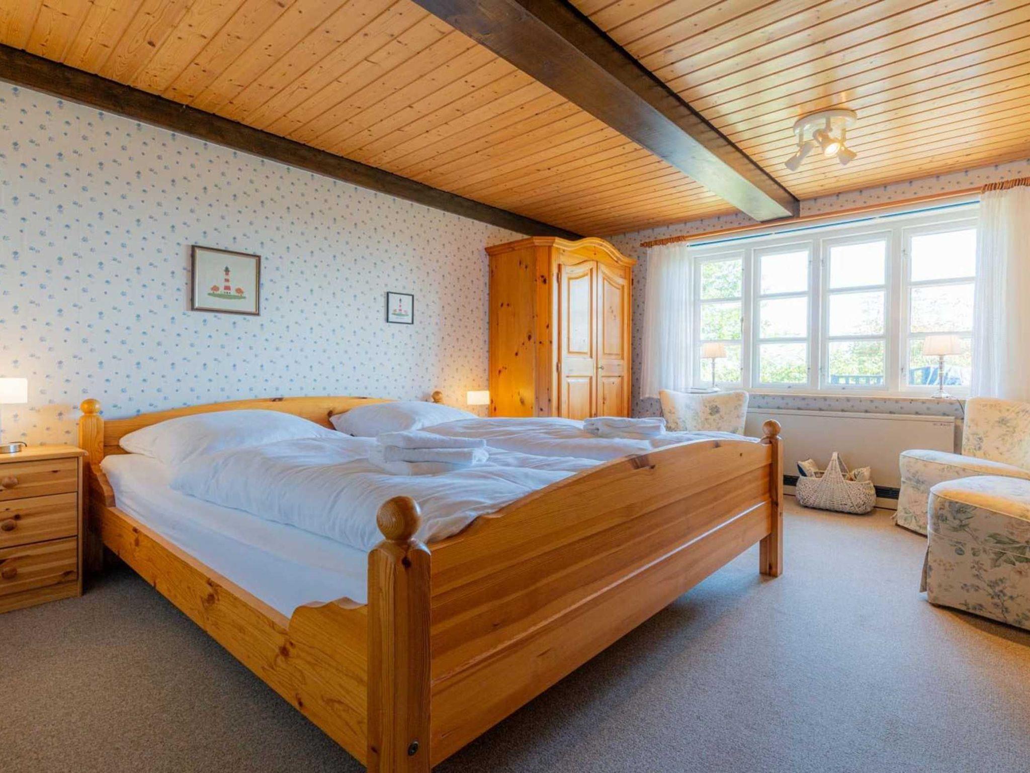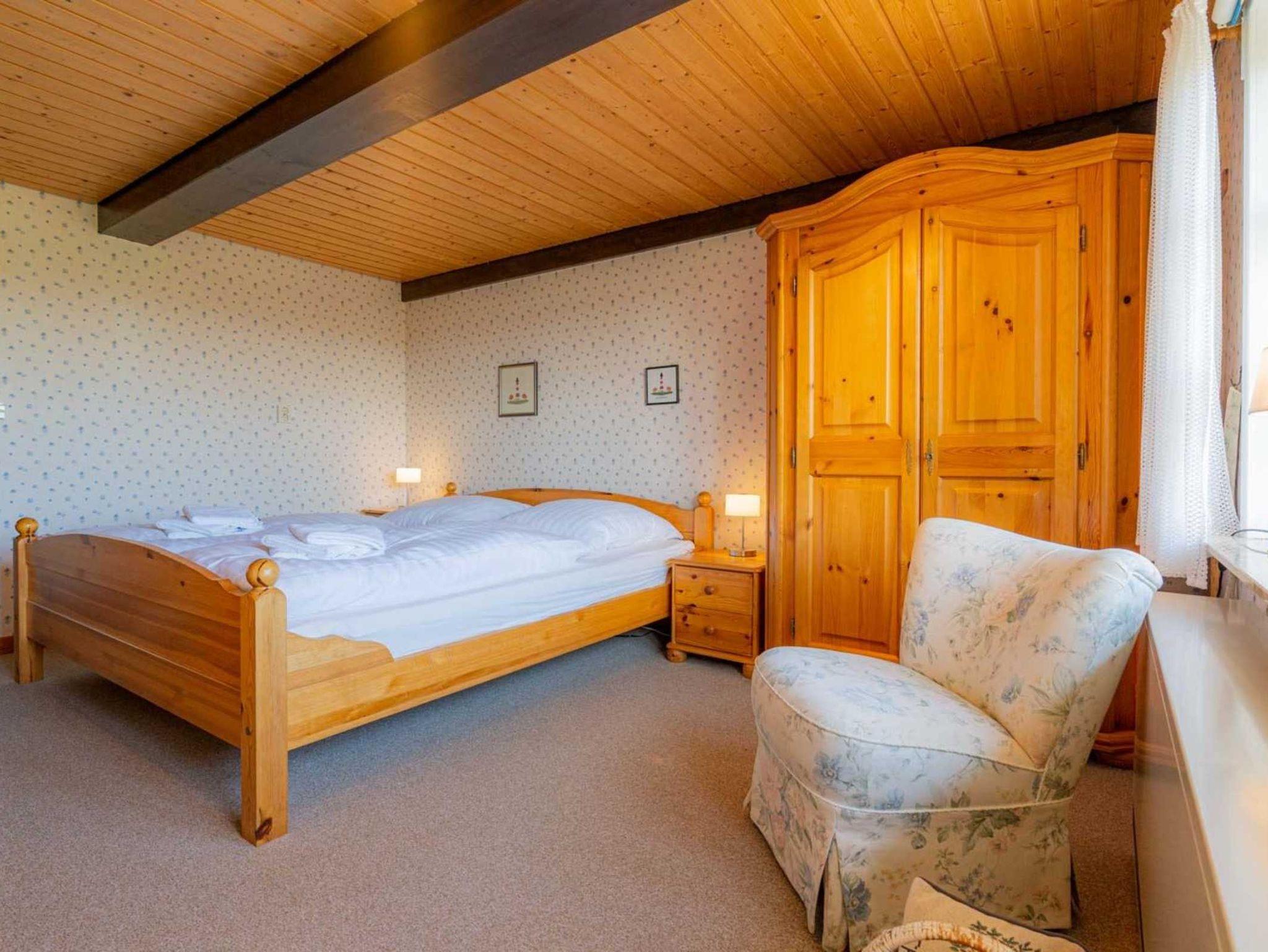 Schlafzimmer mit Doppelbett (2x 90x200cm), Kleiderschrank, Kommode und Sessel.