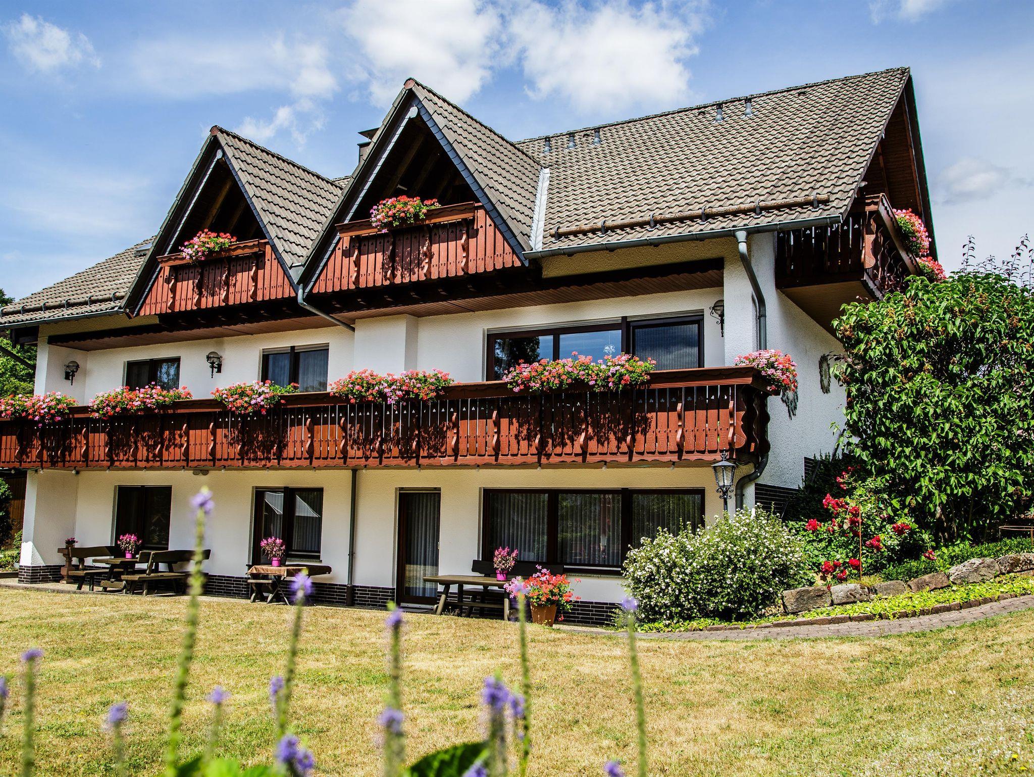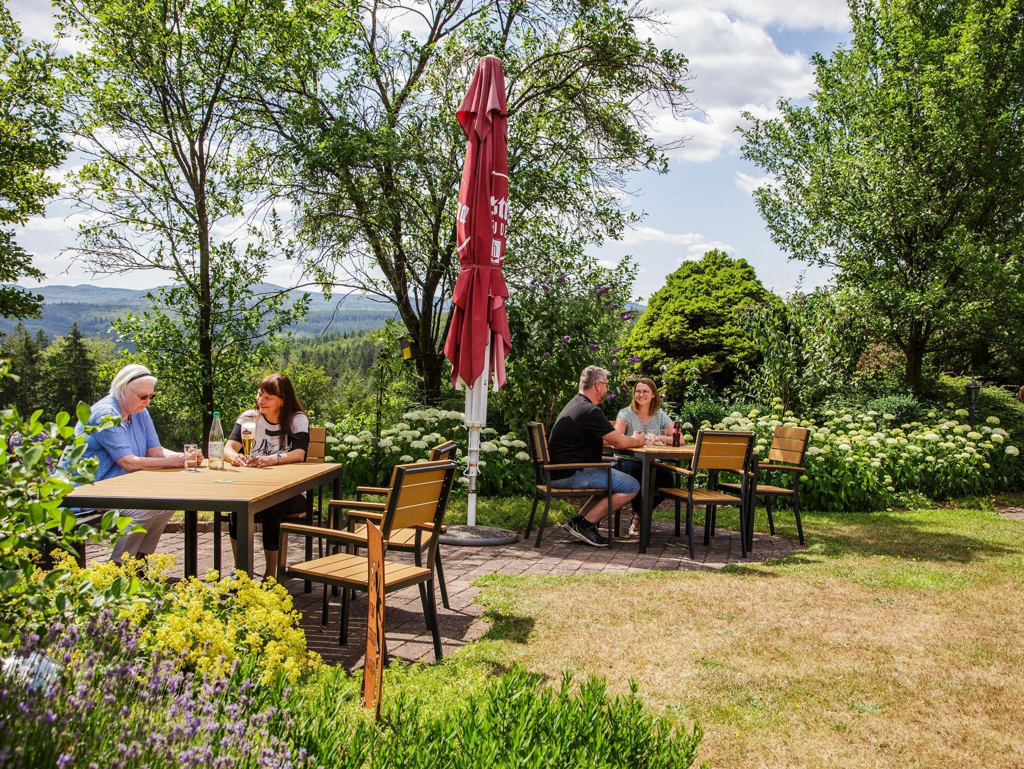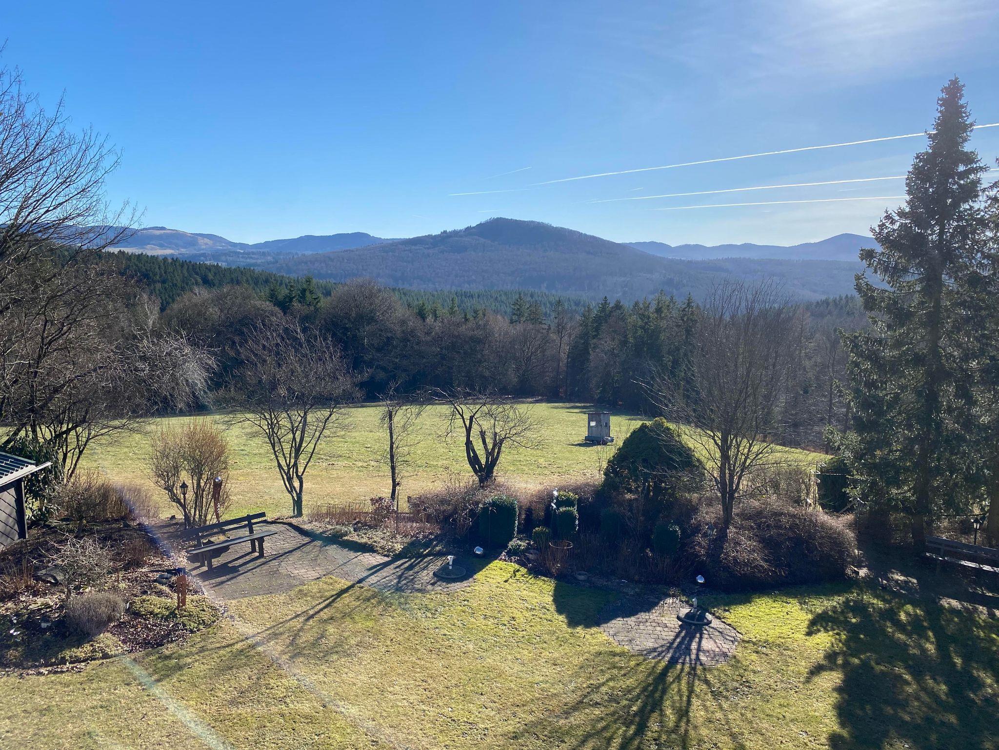 Unser Haus liegt auf ca. 600 Hm, in sehr ruhiger Lage. Das gesamte Anwesen erstreckt sich über eine Fläche von ca. 26000qm mit großem Garten, Damwildgehege Wiesen- und Weideflächen. Die meisten Appartements sind nach Süden, mit fantastischer, unverbauter Fernsicht zur Wasserkuppe und die Bayerische Rhön, ausgerichtet. Im Jahr 2024 wurden die Pensionszimmer zu den zeitgemäß, modernen und gemütlichen Appartements umgebaut.