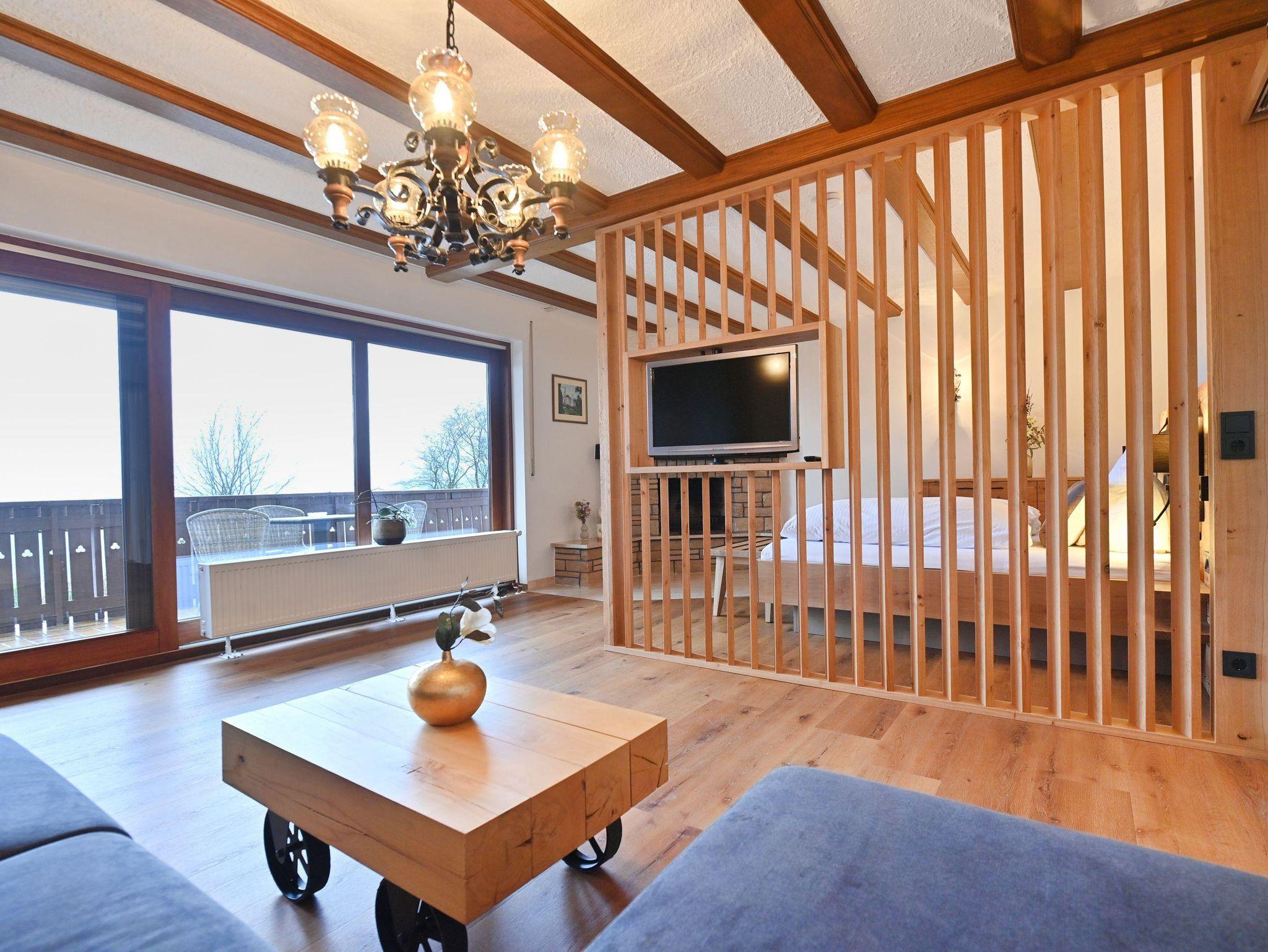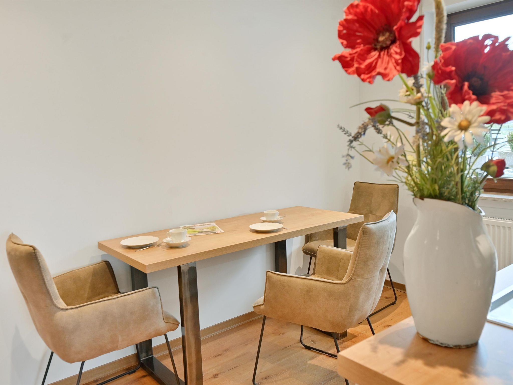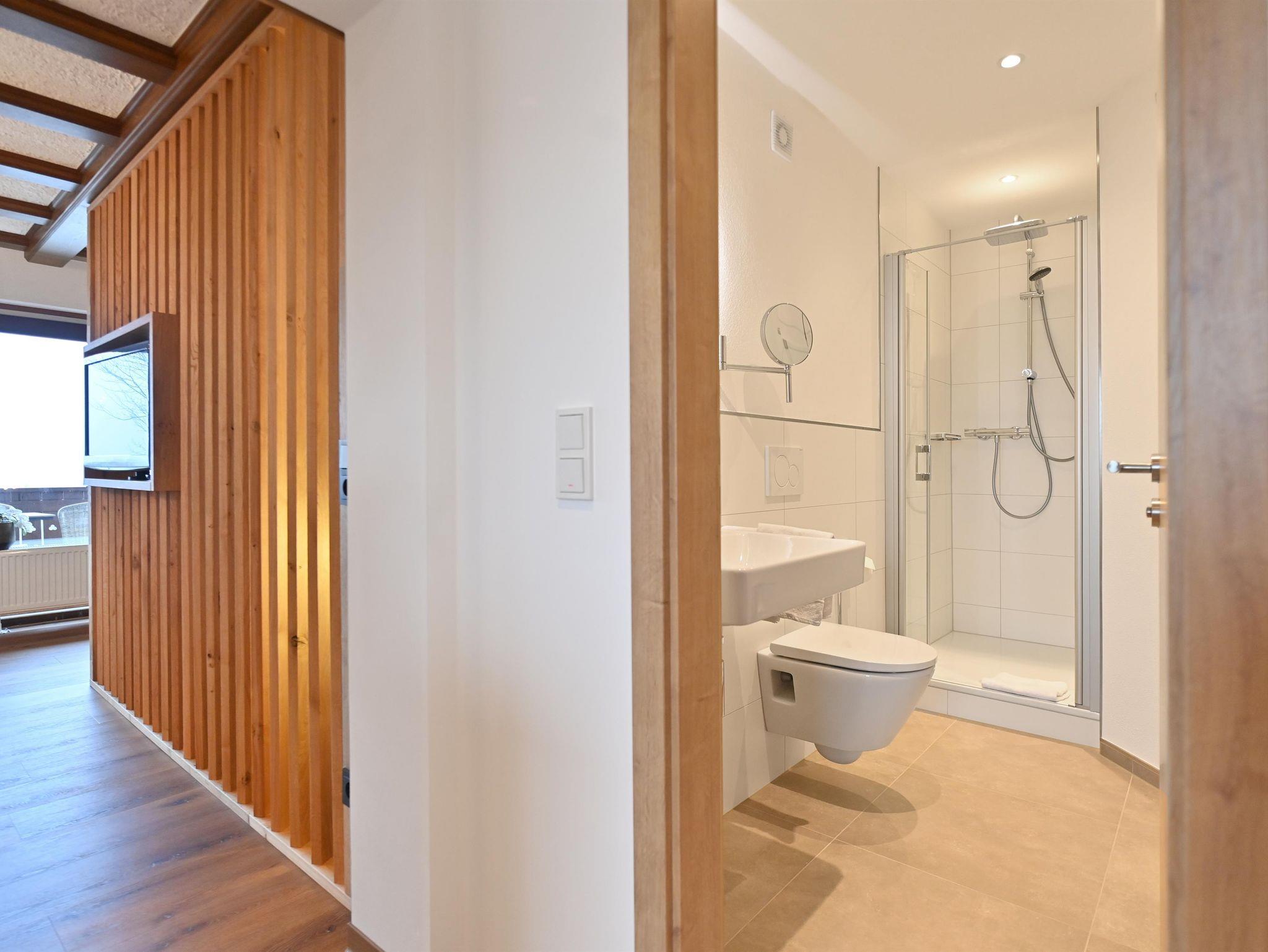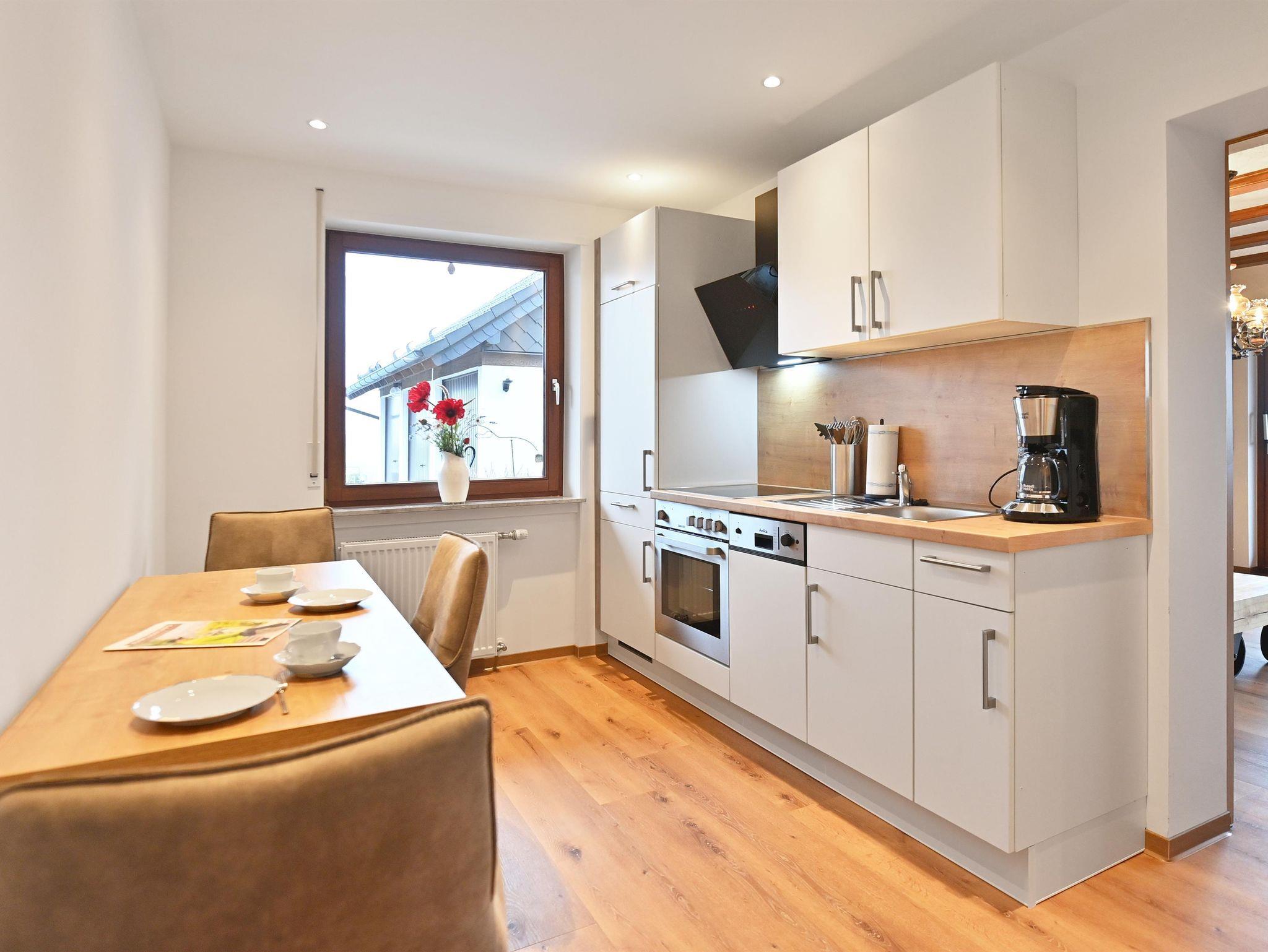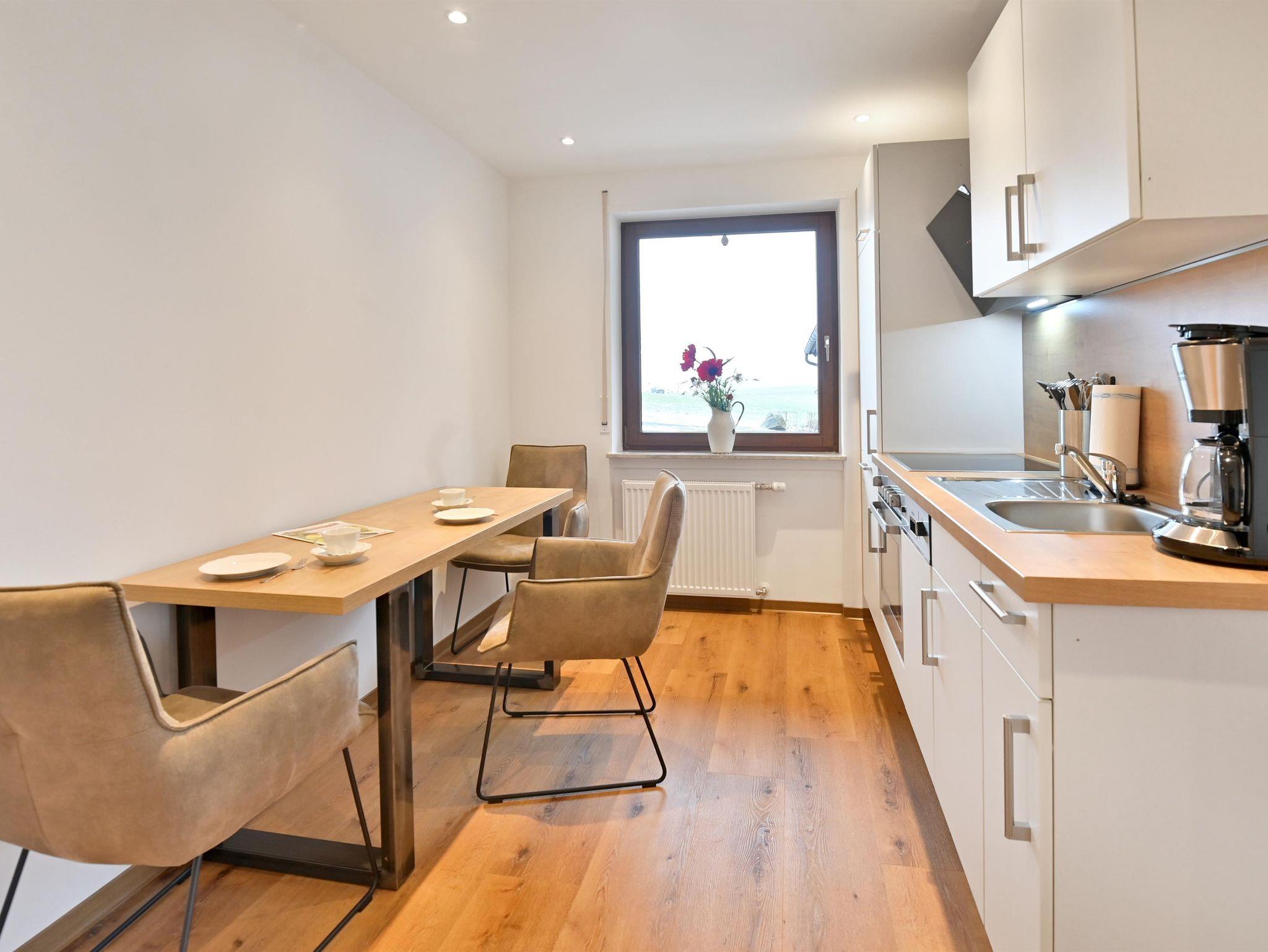Im modernen Landhausstil eingerichtete Ferienwohnung auf ca. 44qm mit großzügigem Balkon und Blick auf die Rhöner Berglandschaft und über den großzügigen Garten. Die Wohnung bietet Platz für 2 Personen. Vom Bett aus haben sie durch das große, bodentiefe Fenster einen wundervollen Ausblick. Vom Wohnbereich haben sie Zugang zum großen Balkon. Der Fernseher kann gedreht werden somit können sie sowohl vom Bett als auch vom Sofa aus schauen. Die Küche ist komplett ausgestattet mit Geschirrspüler, Kühlschrank inkl. Gefrierfach, Herd, Backofen, Wasserkocher sowie Kaffeemaschine und ist durch eine Schiebetür abgetrennt. Badezimmer mit Dusche/WC, großem beleuchtetem Spiegel, Kosmetikspiegel. WLAN und Parkplatz kostenfrei. Frühstück und Brötchenservice buchbar. Alle Wohnungen verfügen über Brandschutztüren und Rauchmeldeanlage. Ski- und Fahrradraum. Poppenhausen ist 4km, Gersfeld 6km entfernt. Bushaltestelle in 3 Gehminuten vom Haus. Shuttleservice buchbar.