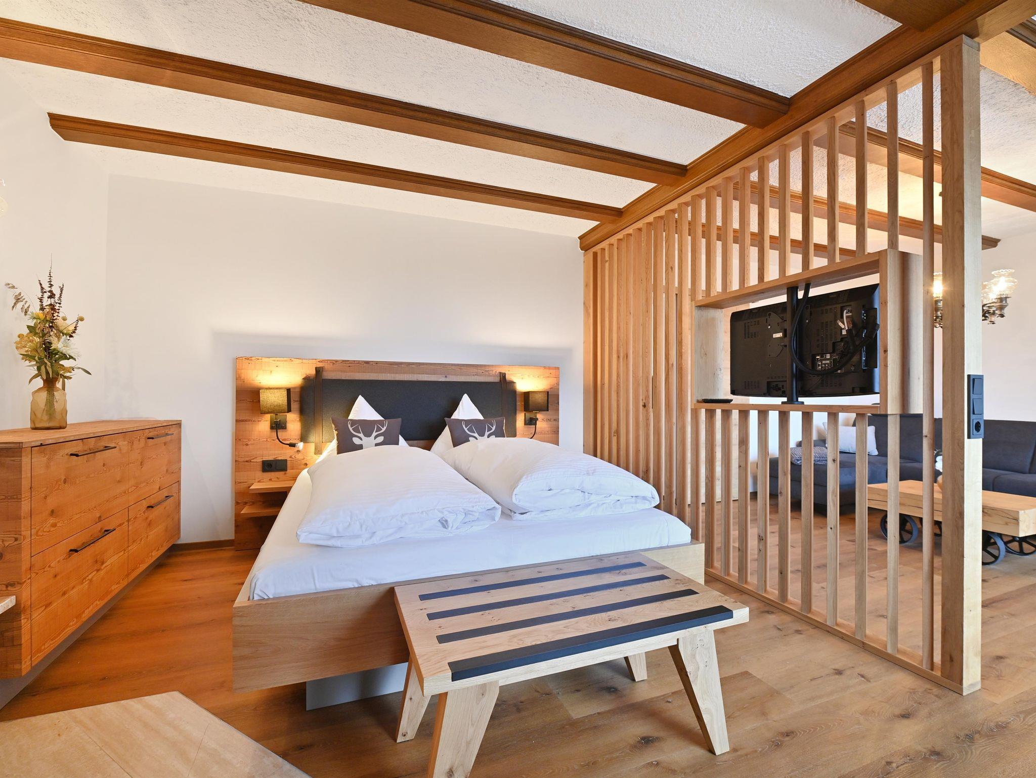 Vom restlichen Garten getrennt, liegt die Panoramasauna, mit Duschen, Ruhehütte und der dazu gehörigen Liegewiese. Diese steht ab der Wintersaison 2025/26 zur Verfügung. Aktuell können unsere Gäste unsere Sauna ca.200m von der Unterkunft entfernt nutzen.