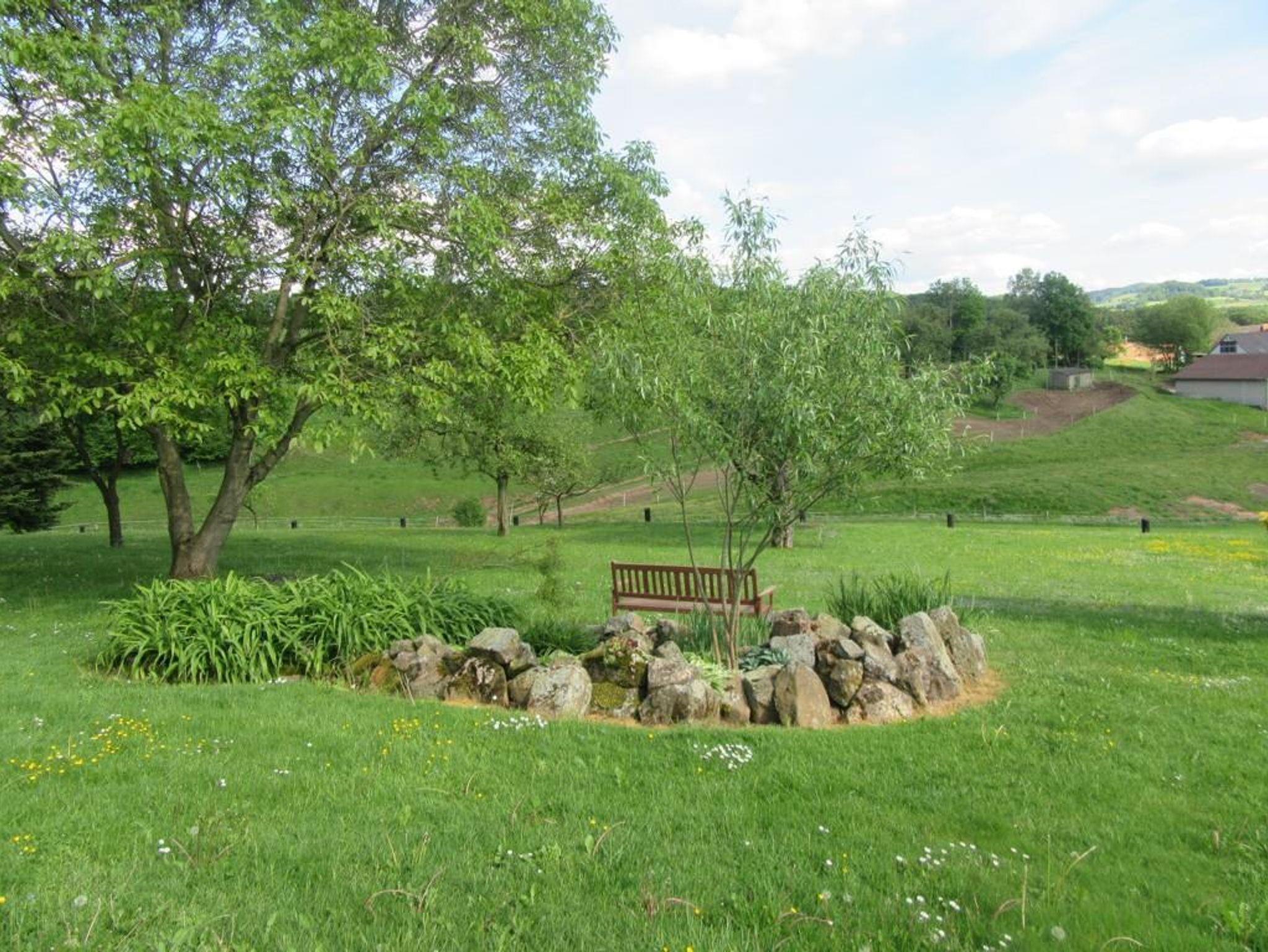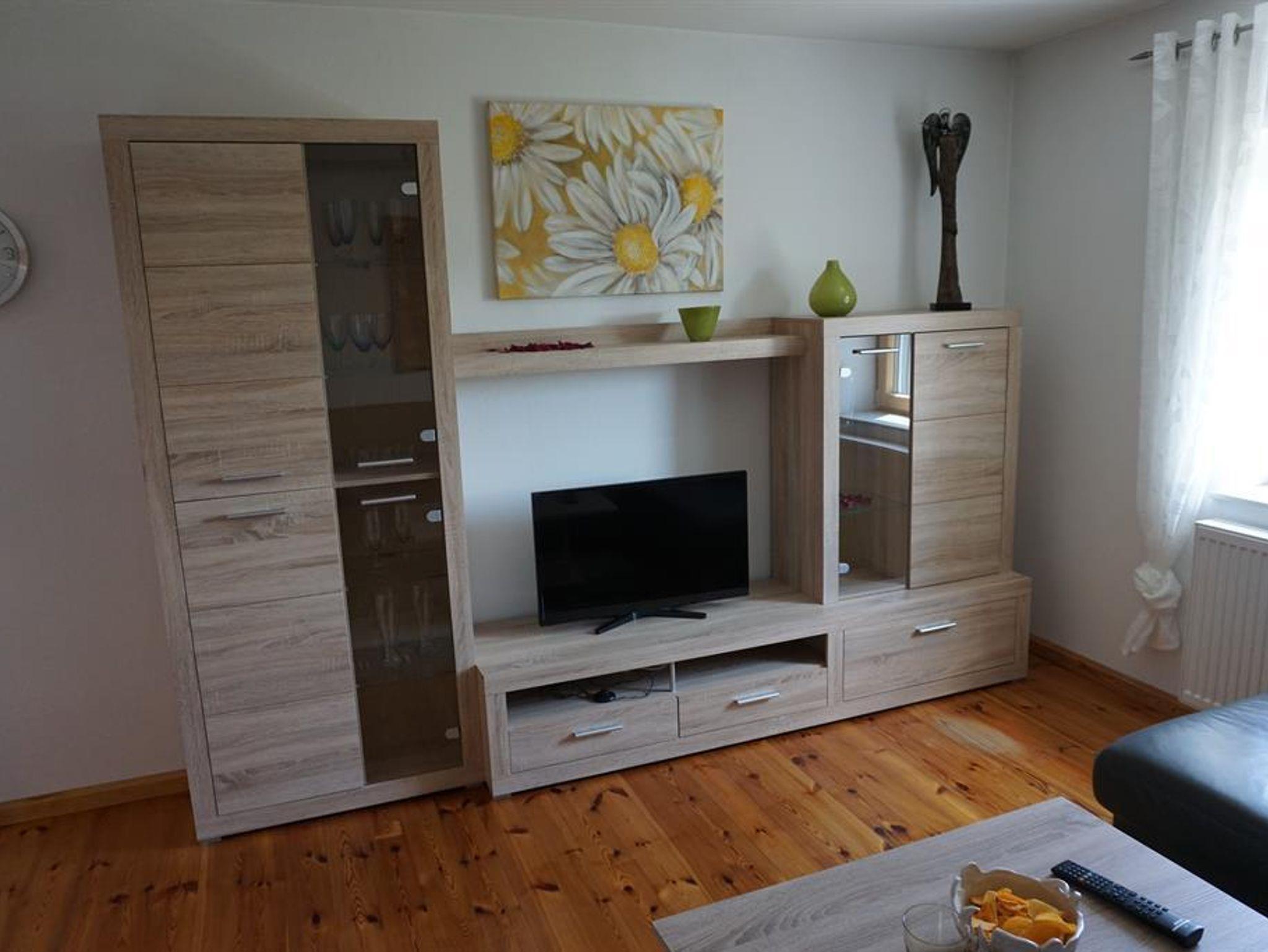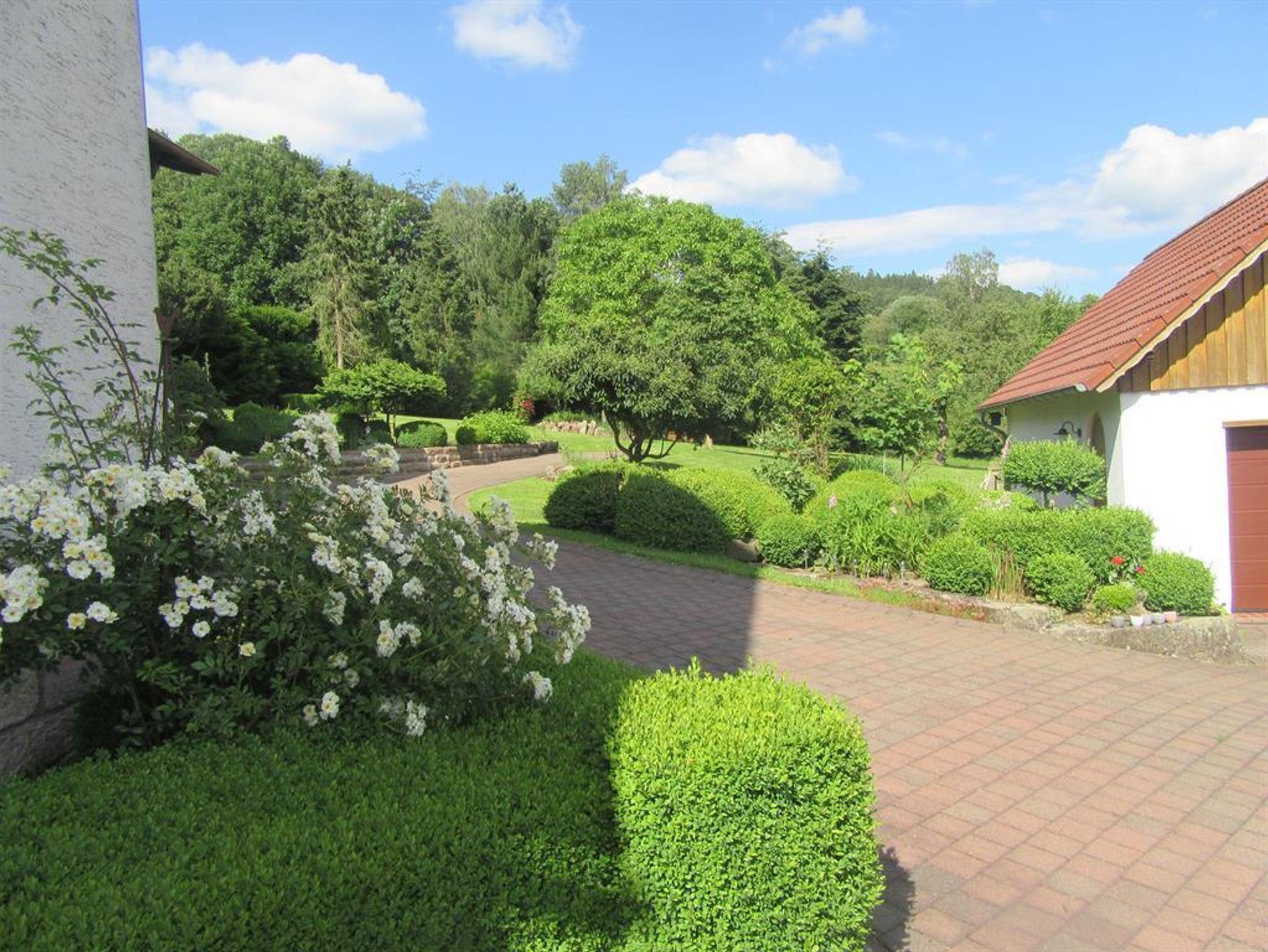 Vom Wohnzimmer und auch vom Schlafzimmer haben Sie einen herrlichen Blick auf unsere Gartenanlage und die Ebersburg.