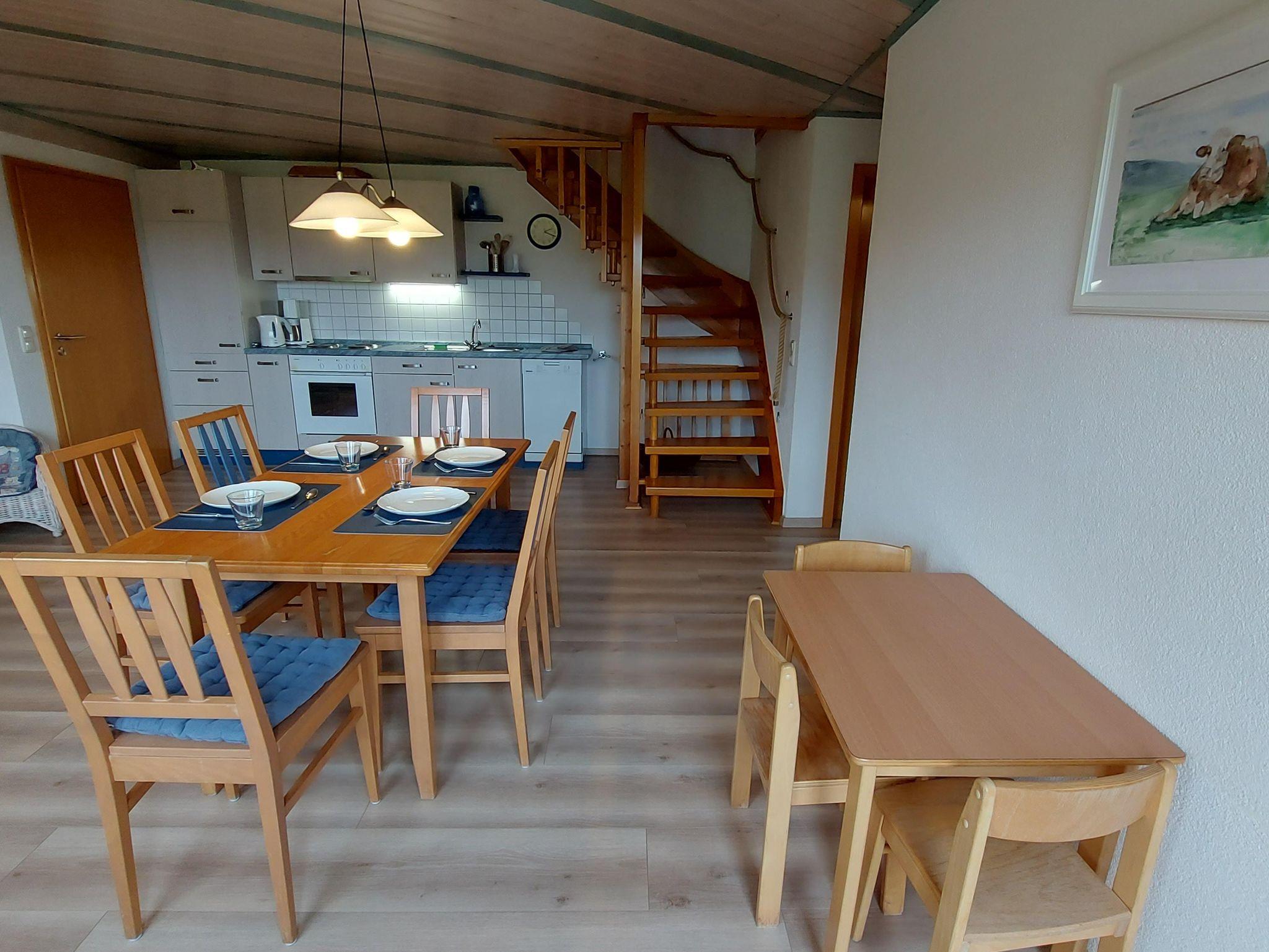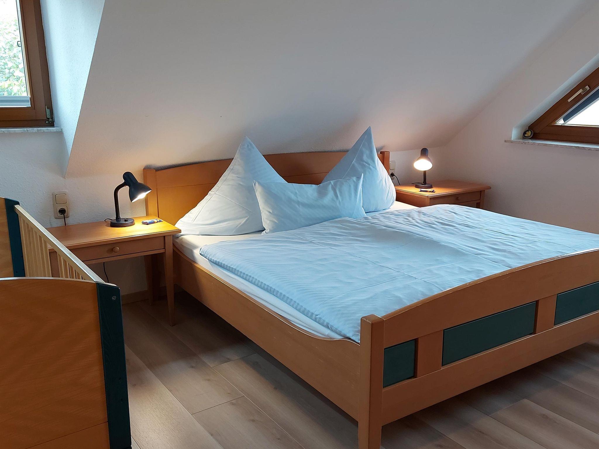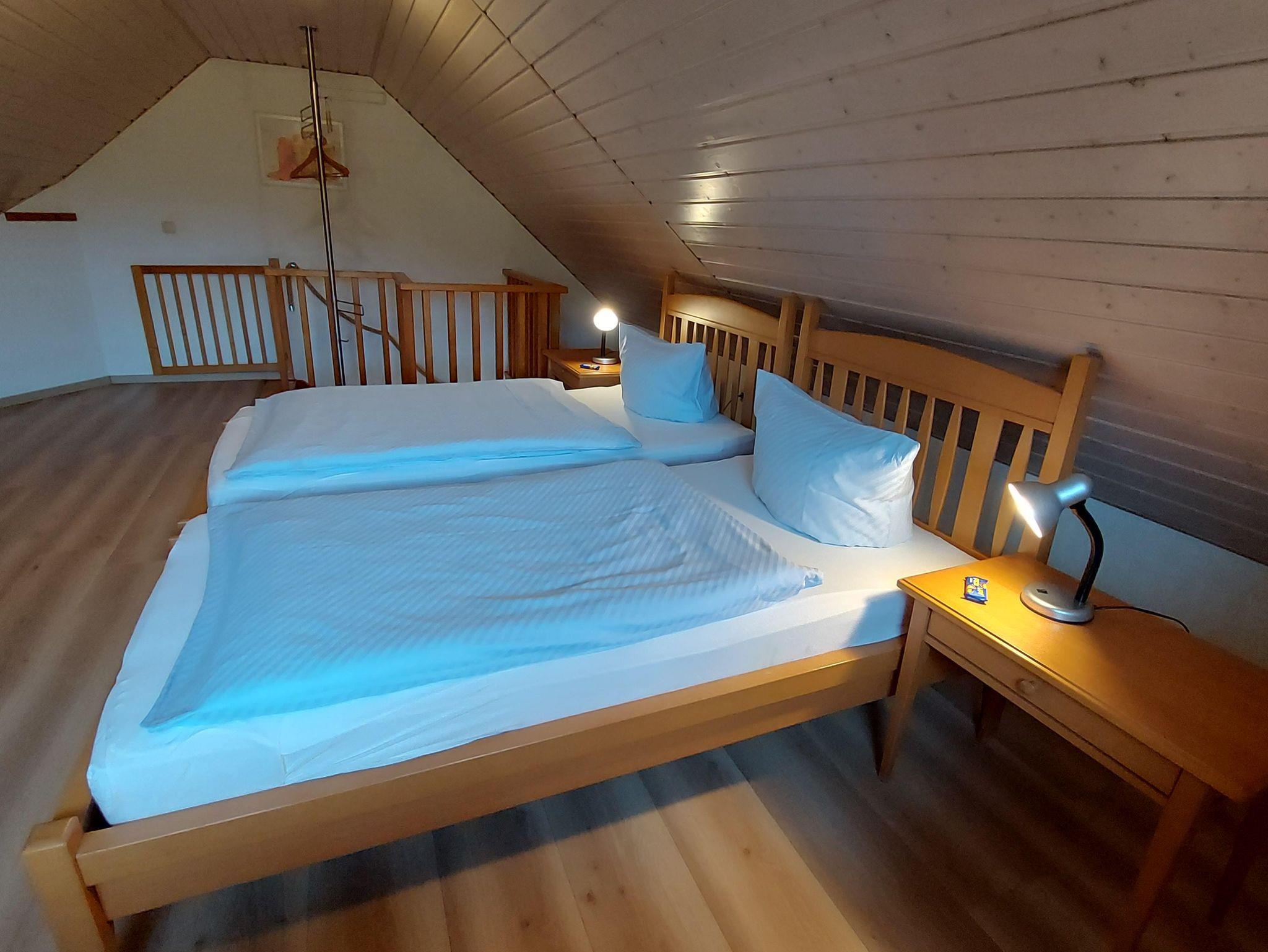 Unsere Ferienwohnung Pferdkopfmit 80 Quadratmetern Wohnfläche über 2 Etagen bietet Platz für 2-5 Personen. Die Ferienwohnung ist mit Balkon, einem Wohn-Eßbereich, einem Schlafzimmer, einem Bad und einer offenen Schlafgalerie ausgestattet. Das Schlafzimmer verfügt über ein Doppelbett und ein Kinderbett, die Schlafgalerie über 3 Einzelbetten. Die Küche ist komplett eingerichtet und mit Spülmaschine, Backofen, Kühlschrank, Kaffeemaschine, Toaster u.v.m. ausgestattet. WLAN und Parkplatz am Hof ??können Sie kostenfrei nutzen.