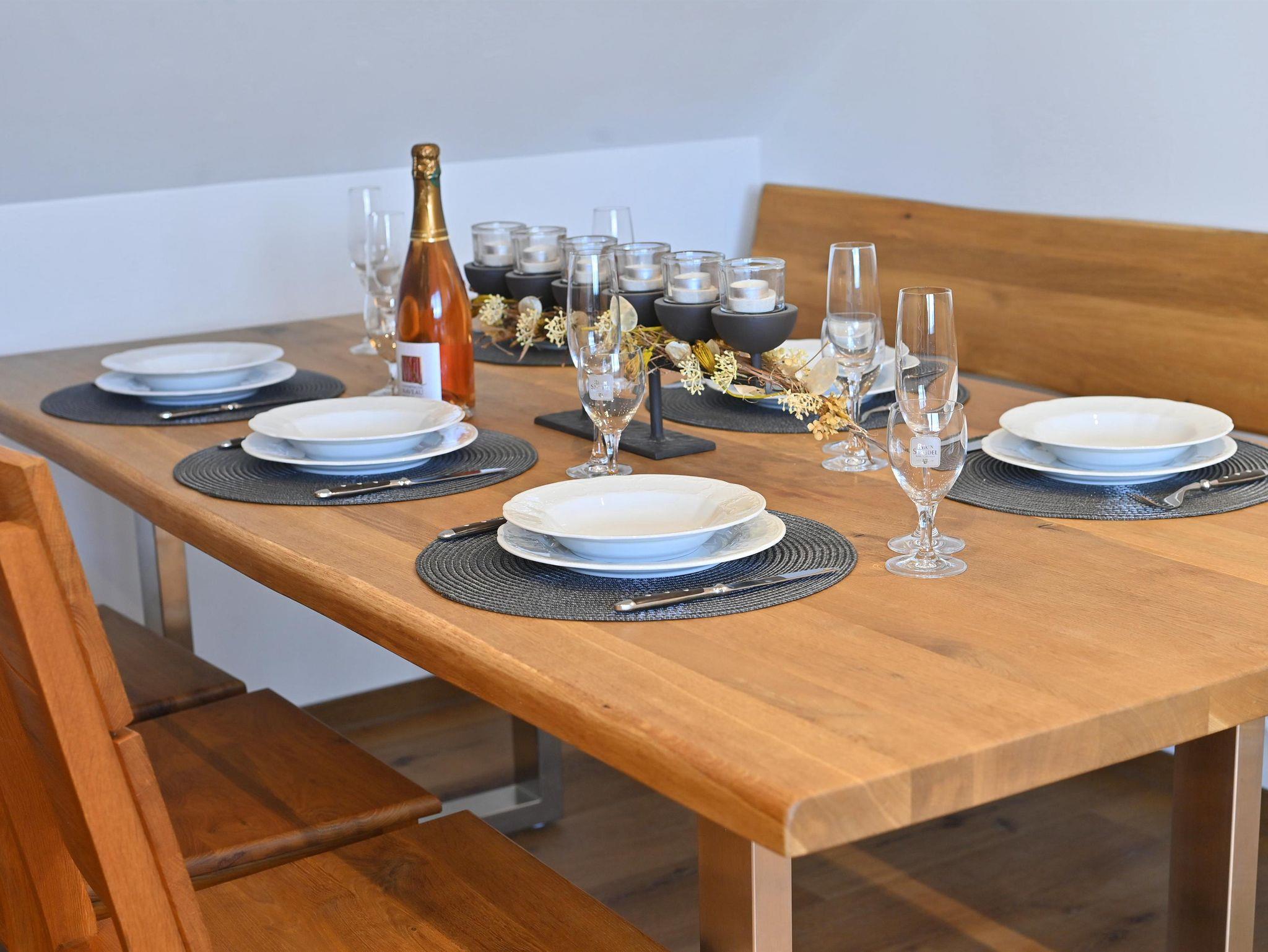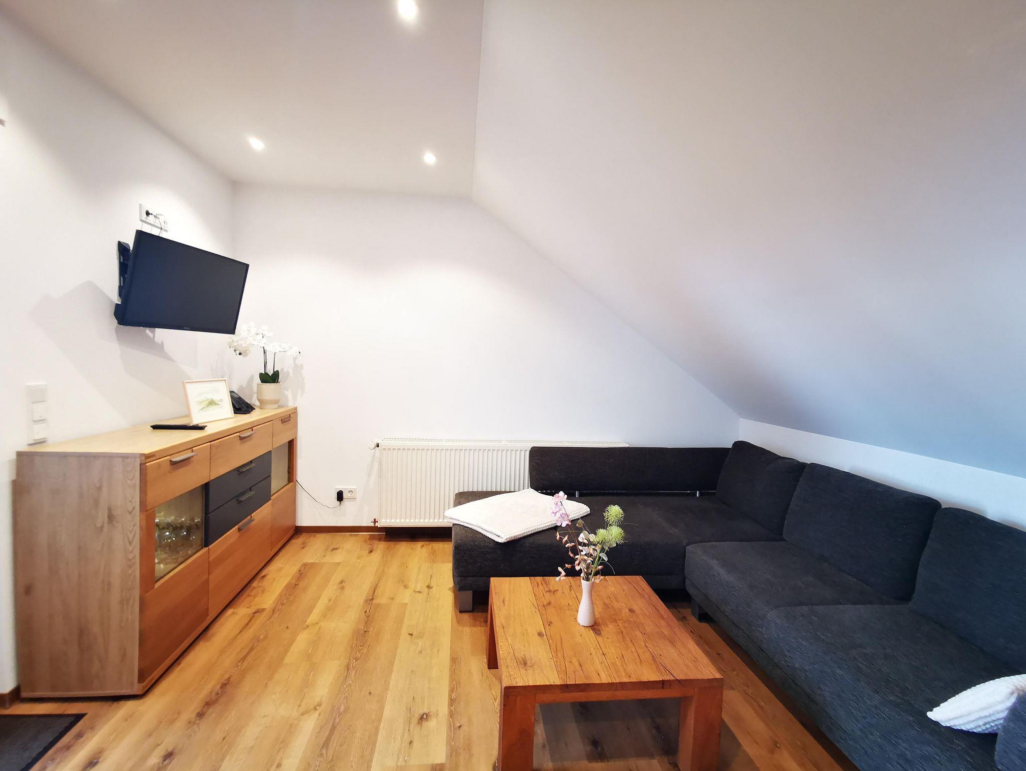 Vom restlichen Garten getrennt, liegt die Panoramasauna, mit Duschen, Ruhehütte und der dazu gehörigen Liegewiese. Diese steht ab der Wintersaison 2025/26 zur Verfügung. Aktuell können unsere Gäste unsere Sauna ca.200m von der Unterkunft entfernt nutzen.