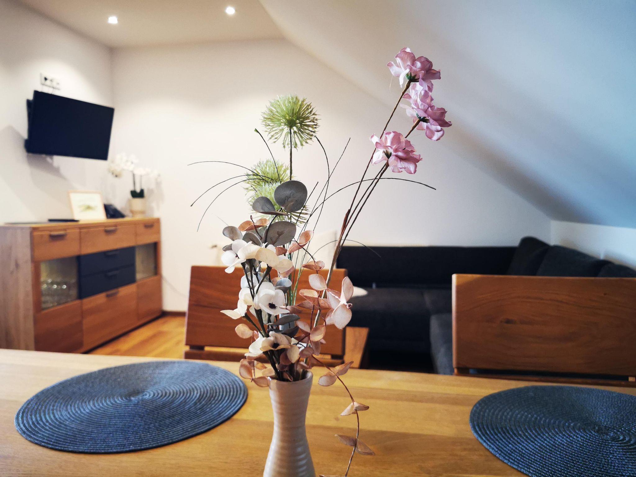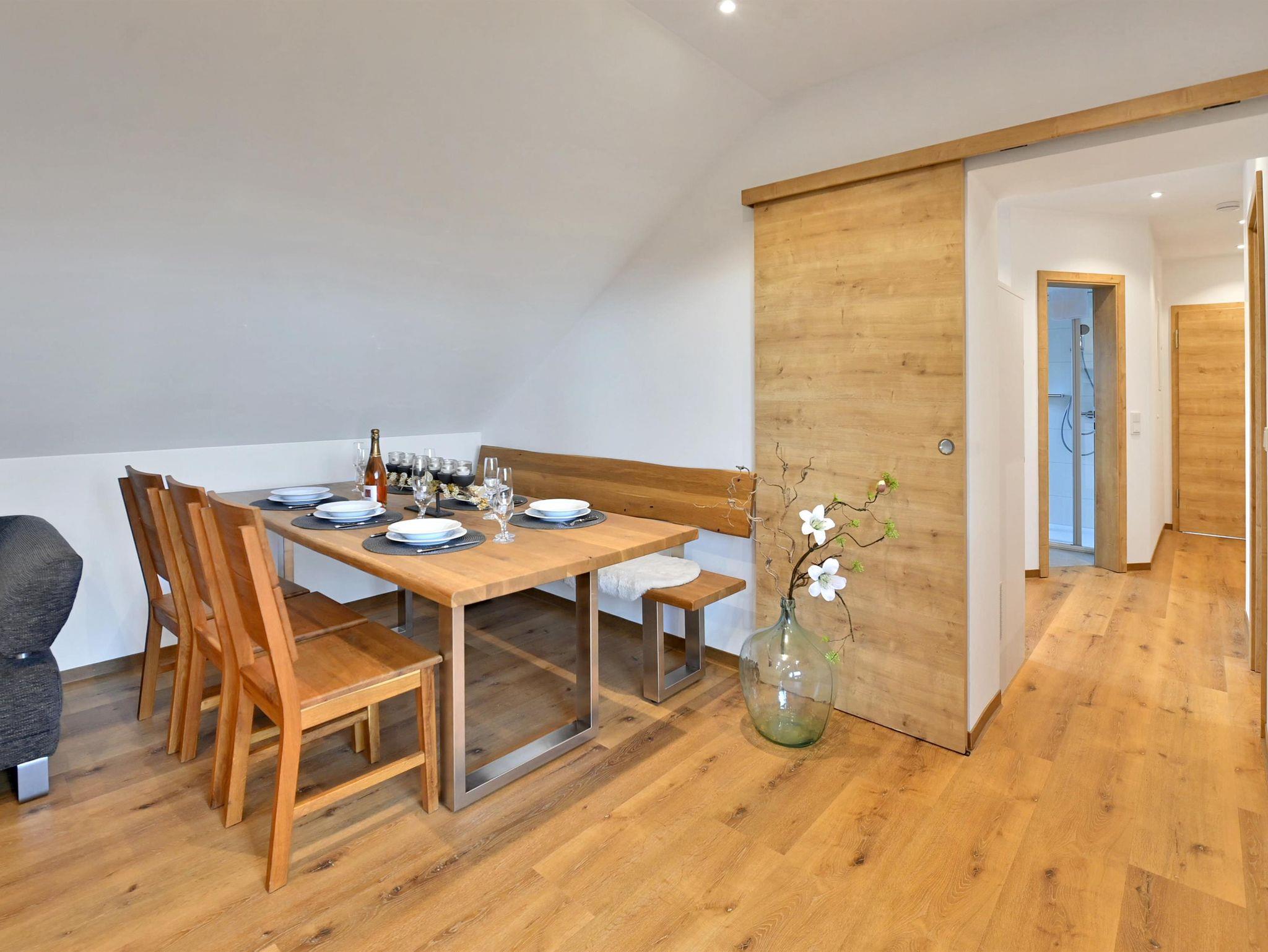 Im modernen Landhausstil eingerichtete Ferienwohnung auf ca. 50qm mit großzügigem Balkon mit Blick auf die Rhöner Berglandschaft insbesondere den Kreuzberg. Platz für 1-5 Personen. Gemütliches Wohn- Esszimmer mit TV. Komplett ausgestattete Küche mit Geschirrspüler, Kühlschrank inkl. Gefrierfach, Herd, Backofen, Wasserkocher und Kaffeemaschine. Schlafzimmer mit Doppelbett und einem zusätzlichen Einzelbett. Sep. Schlafzimmer mit einem Doppelstockbett (je 90x200cm). Badezimmer mit Dusche/WC, großem beleuchtetem Spiegel, Kosmetikspiegel. WLAN und Parkplatz kostenfrei. Frühstück und Brötchenservice buchbar. Alle Wohnungen verfügen über Brandschutztüren und Rauchmeldeanlage. Ski- und Fahrradraum. Poppenhausen ist 4km, Gersfeld 6km entfernt. Bushaltestelle in 3 Gehminuten vom Haus. Shuttleservice buchbar.