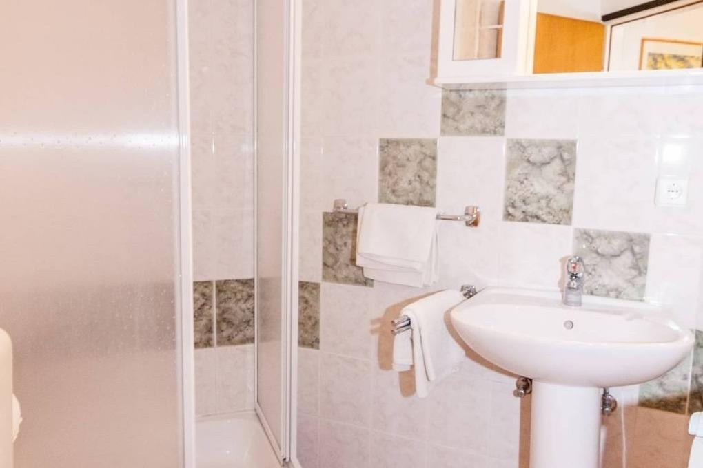 In den Schränken der Küche finden Sie ausreichend Platz für Stauraum und die Küchenkomplettausstattung. Ein 4-Platten-Herd und Backofen, Dunstabzugshaube, Kühlschrank mit Eisfach, Kaffeemaschine, Mikrowelle, Spülmaschine, Elektrogrill, Wasserkocher sowie Staubsauger runden das Angebot ab.