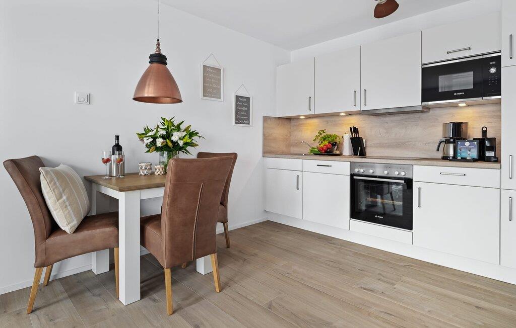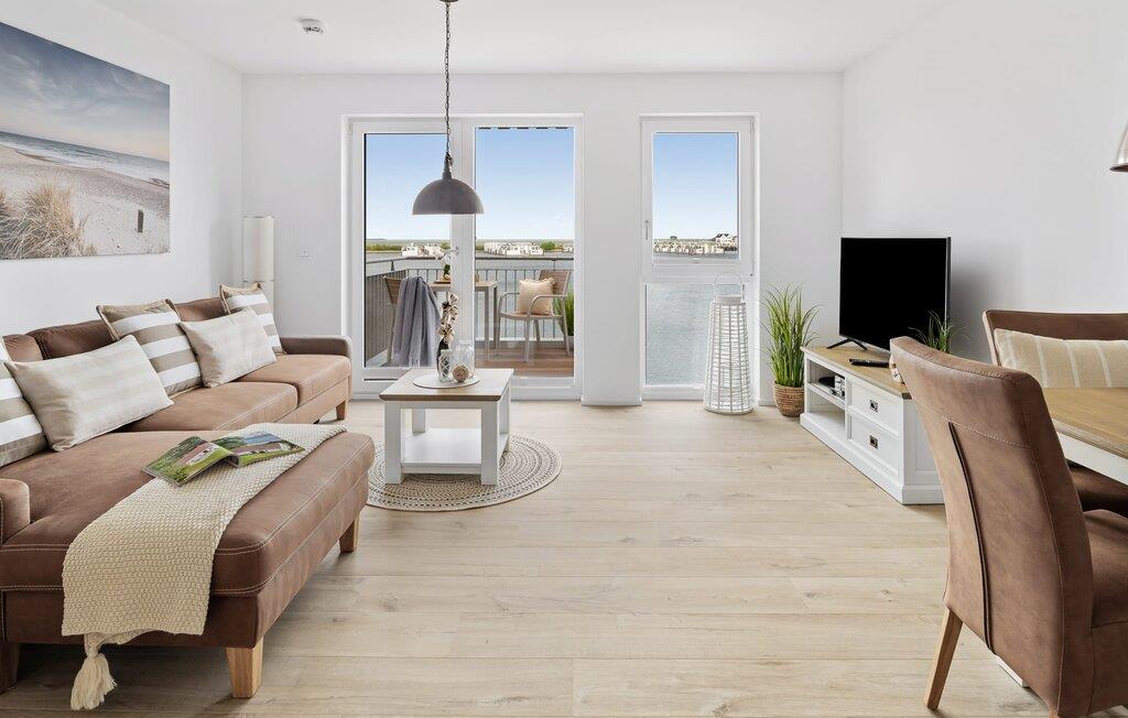 Ferielejligheden PORT OLPENITZ ligger direkte på havnepromenaden i feriestedet Olpenitz ved Østersøen og byder på alt, hvad I kan forestille jer til en afslappende ferie ved vandet. Promenaden med sine små fristende butikker og et velassorteret EDEKA-marked med bageri ligger bogstaveligt talt for gæstens fødder og indbyder til slentretur og indkøb. Sandstranden Weidefelder ligger i umiddelbar nærhed og er et MUST! Her er smukt på alle tider af året, ikke kun når strandstolene kalder om sommeren. I kan tage endeløse gåture her på den åbne Østersø og lade hverdagen bag jer. Mens I laver mad, spiser, læser avis eller bare hygger jer i det kombinerede, åbne køkken-alrum-alrum, følger udsigten over det brede vand jer konstant. I kan se gennem gulv til loft-vinduerne ud over altanen til sejlsportsbådshavnen, de flydende huse, østersøfjorden Slien og Slimünde fyrtårn. Et fænomenalt syn, der hele tiden er i bevægelse. Denne særlige atmosfære inviterer til en hyggelig grillaften på altanen. Faktisk behøver I slet ikke et tv, men PORT OLPENITZ tilbyder jer to: en i stue/spisestue og en i soveværelset. Den moderne, højkvalitets og smagfulde indretning samt det veludstyrede køkken bidrager til afslapning, ligesom den komfortable dobbeltseng, der forudsiger afslappende nætter. Der er en sofa i stuen til en ekstra person, som nemt kan omdannes. Og I behøver ikke bekymre jer om opbevaringsplads – der er masser af skabsplads. Badeværelset med bruser på gulvniveau kan nemt rumme tre personer. jeres pakke inkluderer en parkeringsplads ved huset og en elevator, der bringer jer komfortabelt til lejligheden på anden sal. Vores foretrukne sted: Bestem selv, når I udforsker Port Olpenitz... Bemærk venligst: OstseeResort Olpenitz er meget populært, og der bygges fortsat i parken. Ikke desto mindre kan I se frem til en 5-stjernet standard og et førsteklasses ophold. Byggeaktiviteterne kommer ikke til at forstyrre jer på ferien, og derfor gives der ikke yderligere afslag i prisen.