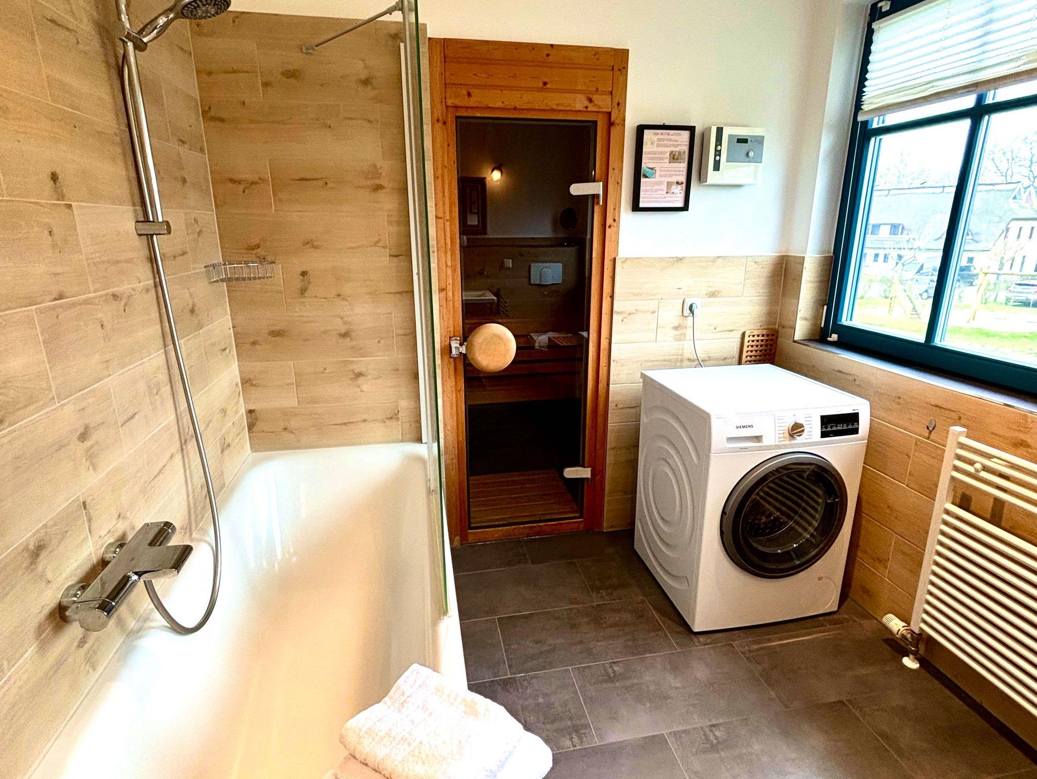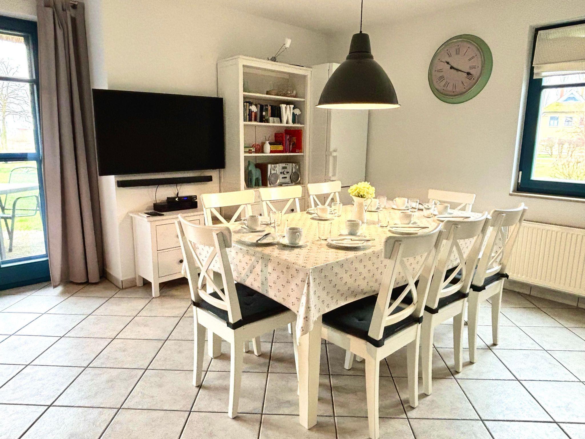 Auf 104 qm ist eine kleine Wohlfühloase entstanden, in der bis zu 8 Personen den Alltag hinter sich lassen können. Nach einem langen Tag mit unzähligen Impressionen der Insel können Sie im großen Wohnzimmer in unserer gemütlichen Sitzgruppe bei einem Roman aus unserer kleinen Bibliothek oder einem guten Film entspannen (Smart-TV vorhanden). Selbstverständlich verfügt das Ferienhaus über Internet (WLAN). Im Winter lassen Sie doch den Abend bei einem Glas Wein am Kamin ausklingen oder relaxen Sie in unserer Sauna. Wenn Sie gerne kochen, wird dies in unserer komplett ausgestatteten Küche zum Kinderspiel. Von Ceranherd bis zur Kaffeemaschine ist alles vorhanden, um im Essbereich des Wohnzimmers ein leckeres Frühstück, Mittag- oder Abendessen zu servieren und zu genießen.