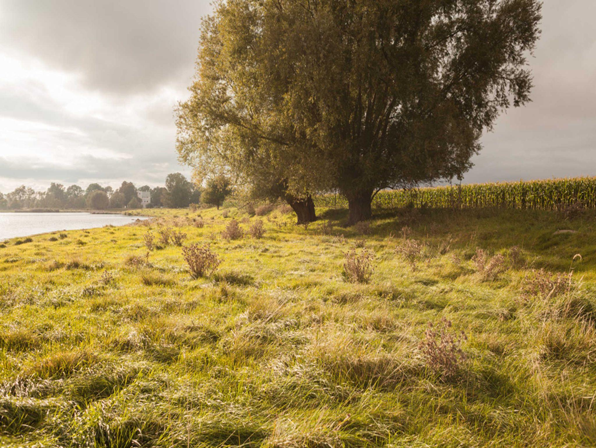 Die Grundmauern der alten Scheunenflächen des ehemaligen landwirtschaftlichen Guts sind wieder sichtbar gemacht worden. Der Ausblick von Haus und Park ist zu allen Seiten geprägt durch die Lage direkt am Wasser.