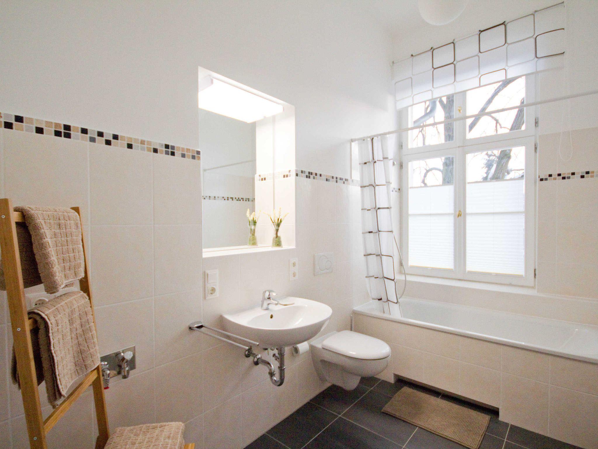Das moderne Bad bietet Ihnen eine Badewanne inkl. Duschmöglichkeit und ein WC. Der gemeinsame Fahrradkeller kann mitbenutzt werden. Eine Waschmaschine können Sie gerne auf Anfrage nutzen.