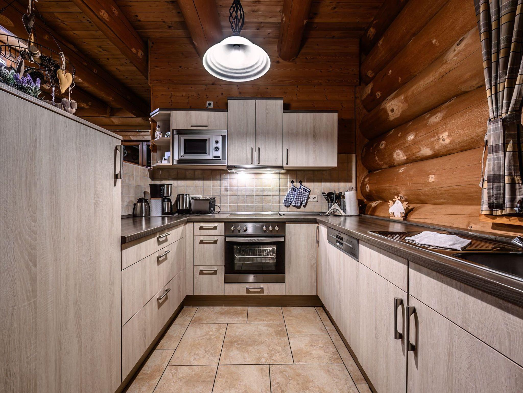 Die vollausgestattete Küche mit Spülmaschine, Backofen, Mikrowelle, Kühlschrank mit Gefrierfach, Kaffeemaschine, Toaster und Wasserkocher lässt es an nichts fehlen.