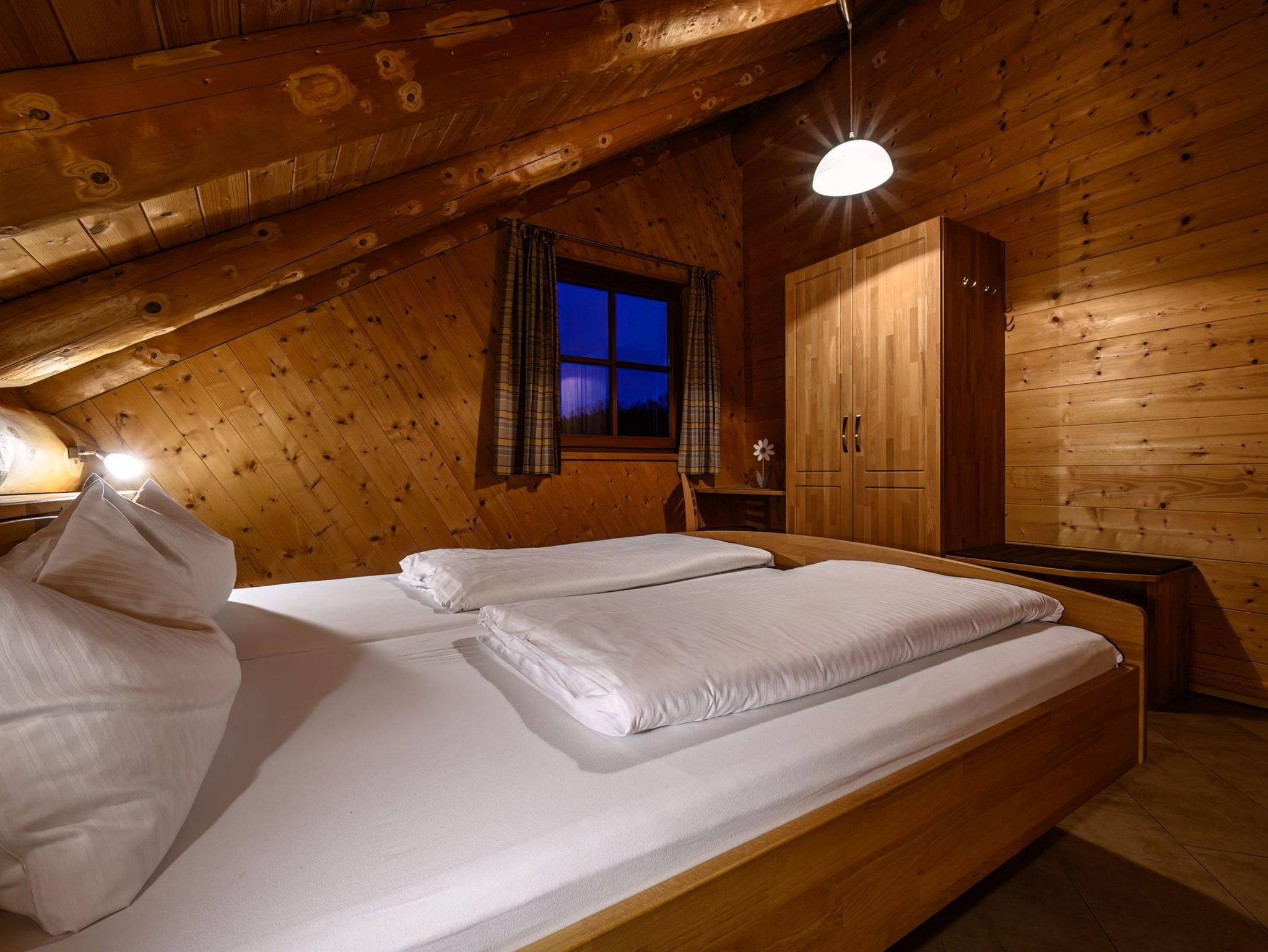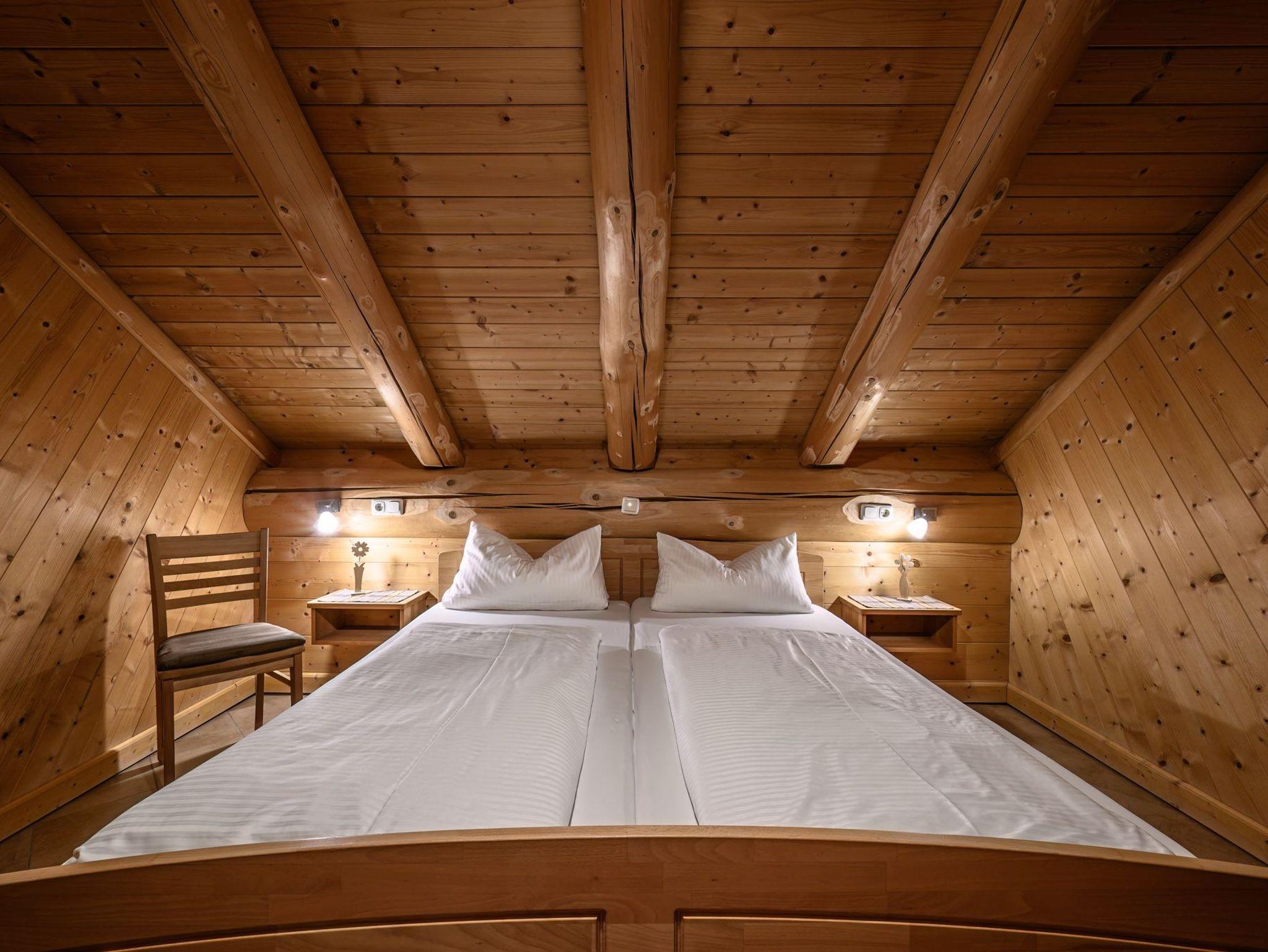 Im OG – 3 Schlafzimmer mit vom Schreiner gefertigten Massivholz-Doppelbetten tragen einen Teil zu erholsamen Schlaf und gelungenen Urlaub für unsere Gäste bei.