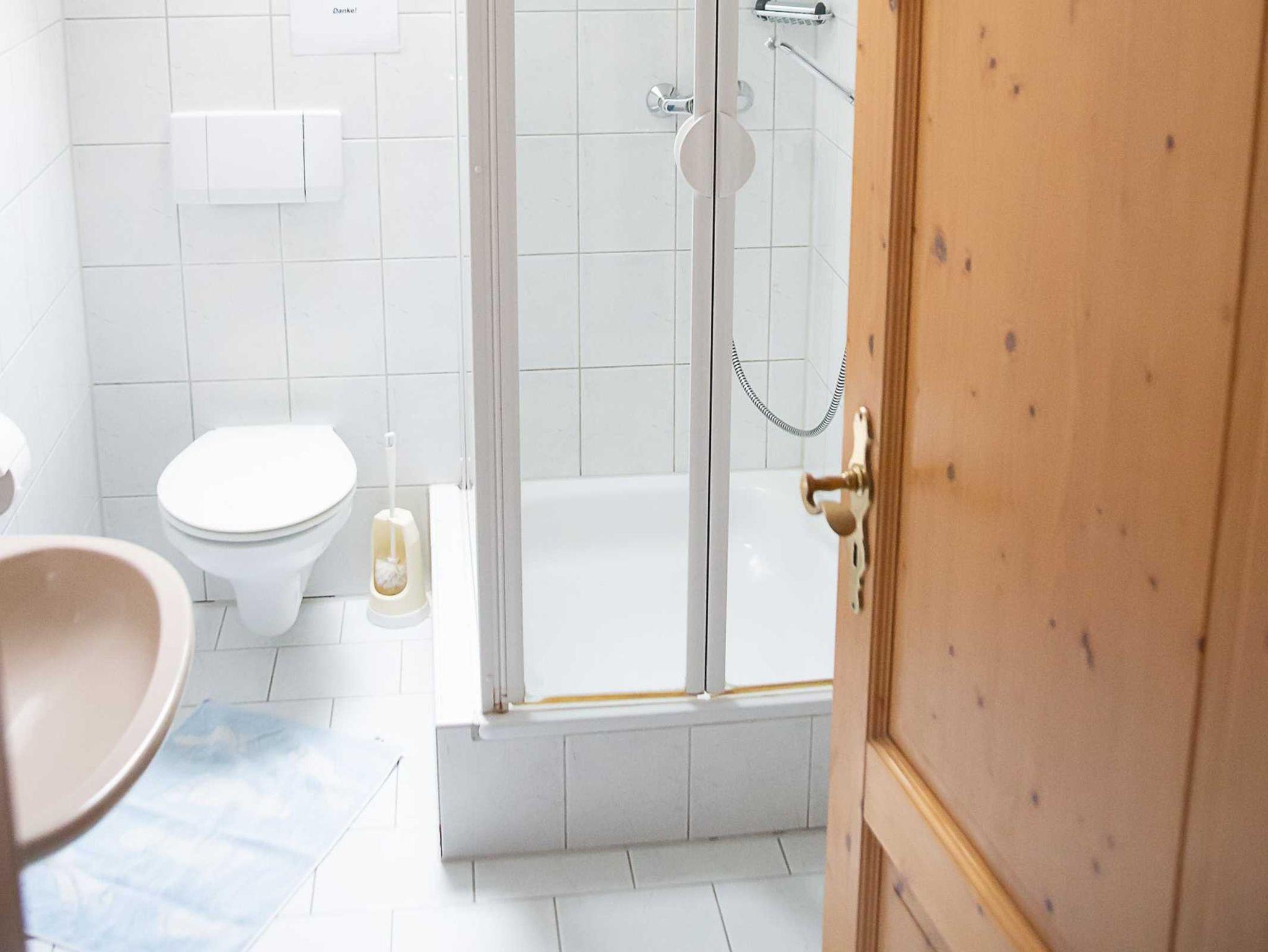 Unsere Ferienwohnung Hofblick ist ca. 65 qm groß und bietet Platz für bis zu 4 Personen. Babybett kann zusätzlich noch aufgestellt werden. Ausgestattet ist diese Wohnung mit einer kompletten Wohnküche (mit Backofen, Cerankochfeld, Kaffeemaschine, Toaster, Wasserkocher, Kühlschrank mit Gefrierfach, Spüle, Geschirr und Besteck für mindestens 6 Personen und außreichend Kochutensilien), 2 separaten Schlafräumen, 1 Wohnzimmer mit SAT-TV sowie einem Bad mit Dusche und WC. Auch hier befindet sich noch ein separates WC in der Nähe. Diese Ferienwohnung ist zusätzlich noch mit einem Balkon ausgestattet, mit Blick direkt auf unseren Hof.