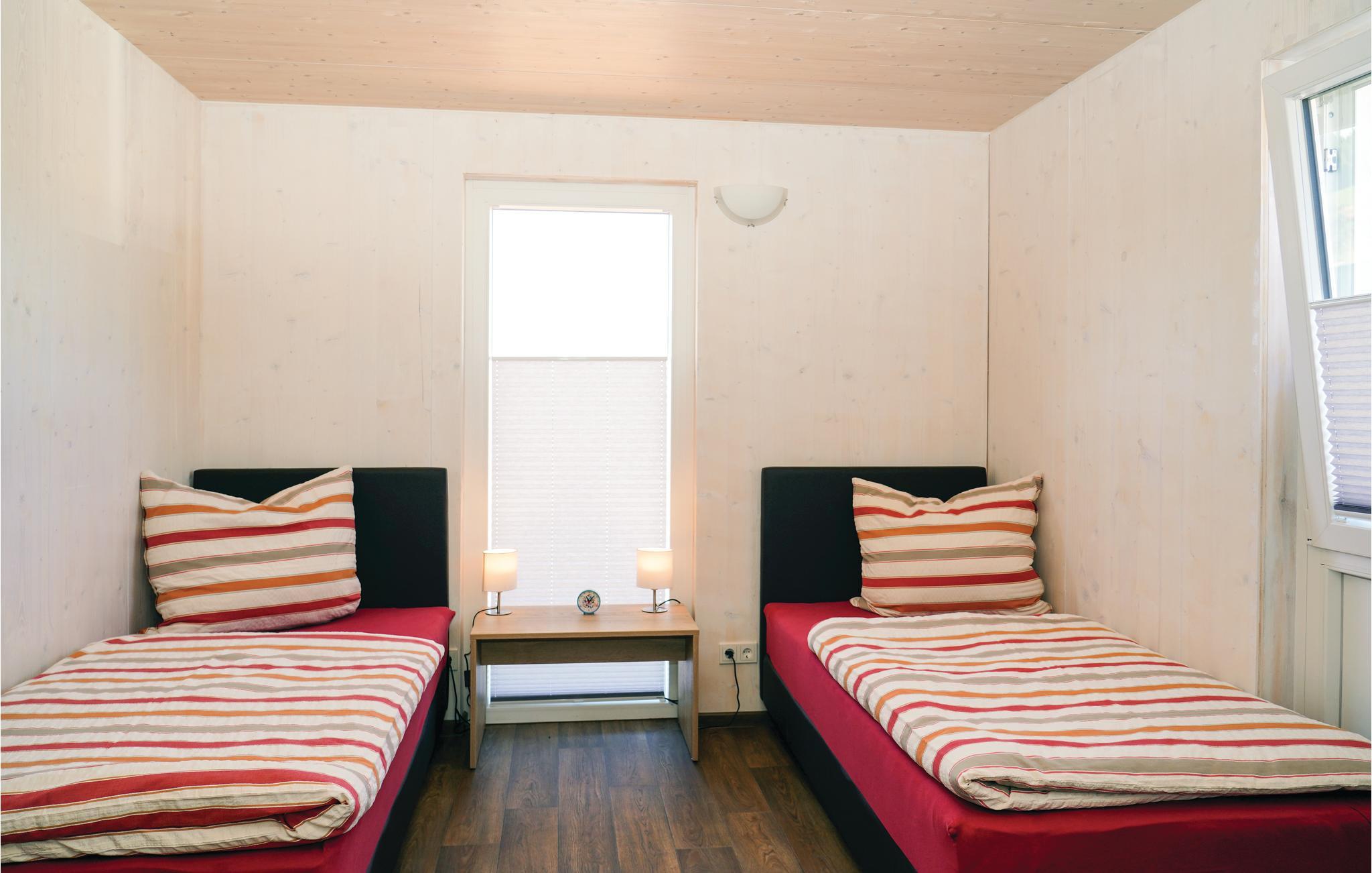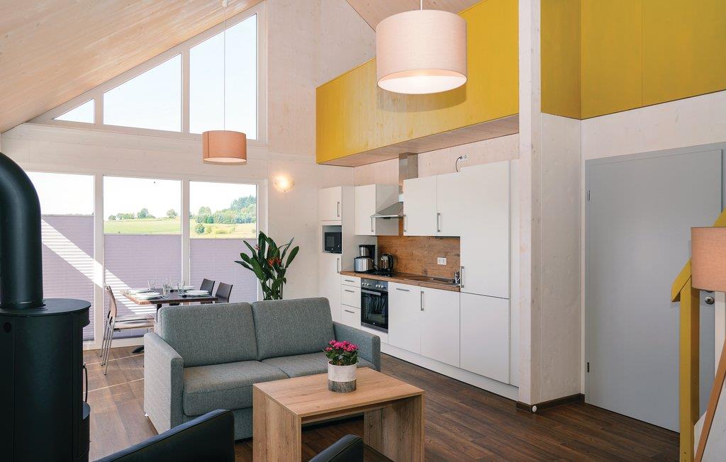 Her har du muligheden for at leje et energioptimeret sommerhus. Her får du moderne design med komfortabelt udstyr af høj kvalitet. Indgangen er let tilgængelig fra parkeringspladsen foran huset. Huset er således velegnet til handicappede. Badeværelse og toilet kan også bruges med rollator eller kørestol. Derudover er der på første sal et soveværelse med to enkeltsenge til rådighed.