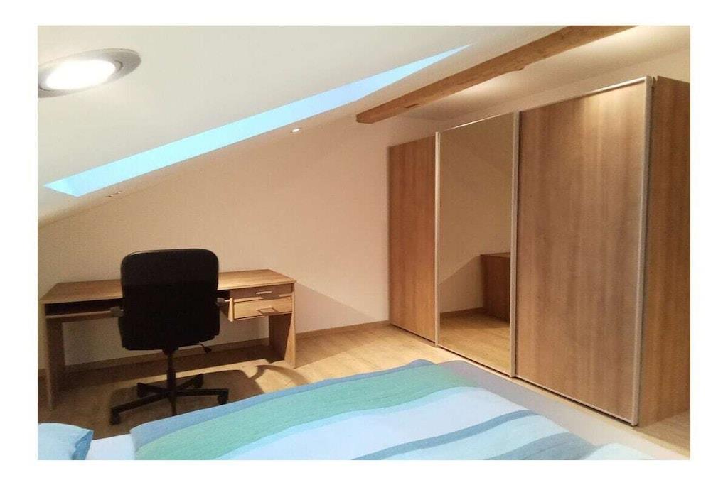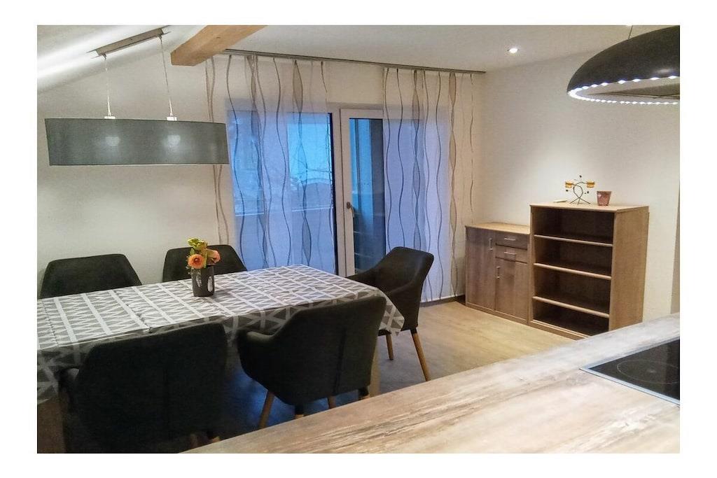 En hyggelig lejlighed på 95 kvadratmeter venter dig med to soveværelser og en stue (plads til seks personer). Nyrenoveret, et dejligt køkken, separat spiseplads og stue. To soveværelser, et badeværelse med badekar, bruser og toilet, et separat gæstetoilet, en balkon, adgang til haven med terrasse, tæt på skoven og en rolig beliggenhed.