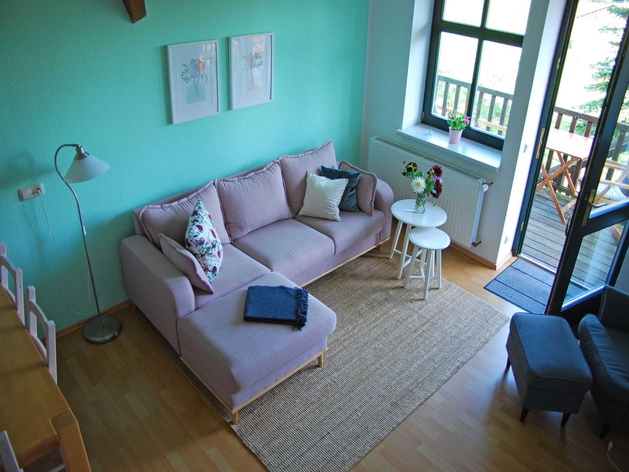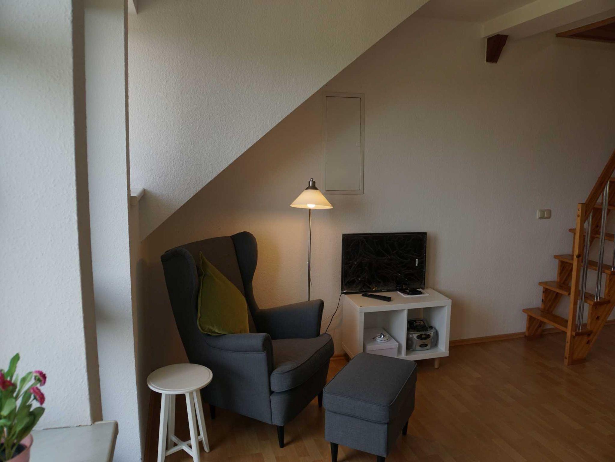 Eine großzügige Ferienwohnung für 2 – 5 Personen auf 2 Etagen mit Dachschrägen (daher größere Grundfläche als angegeben) im Obergeschoss bestehend aus: